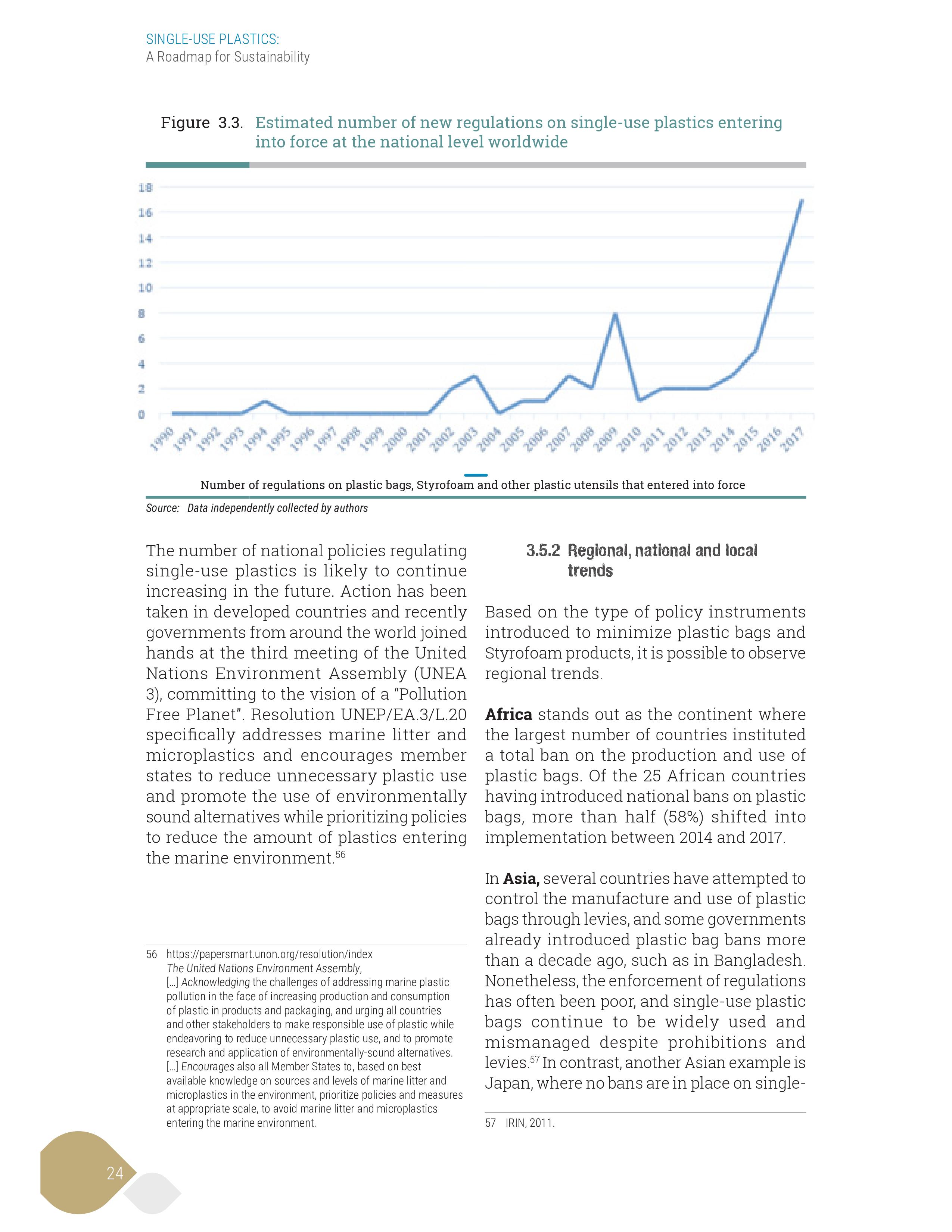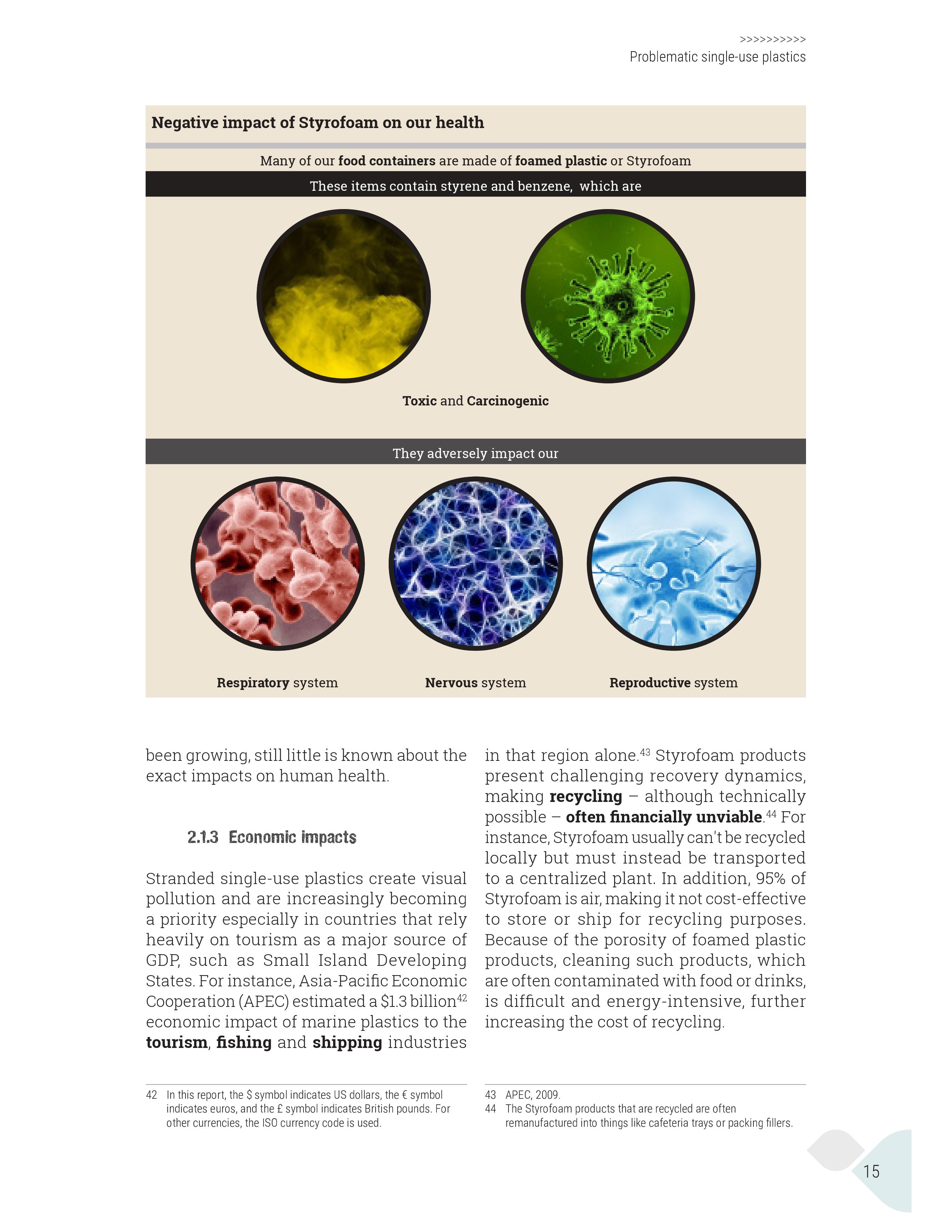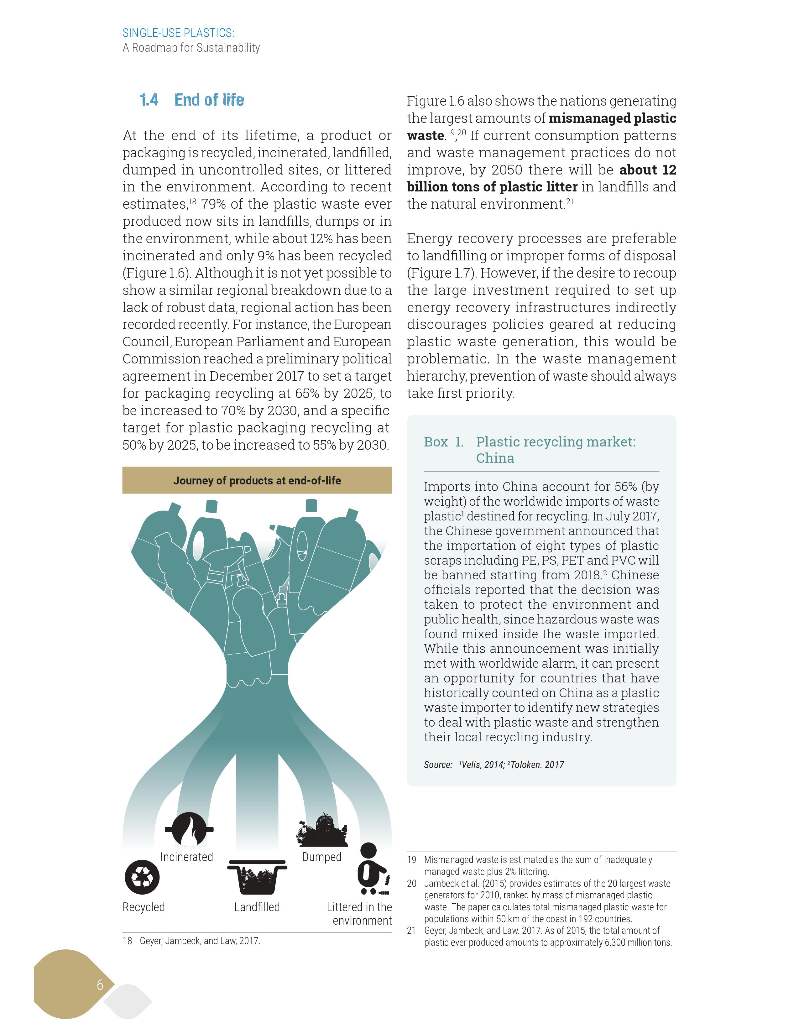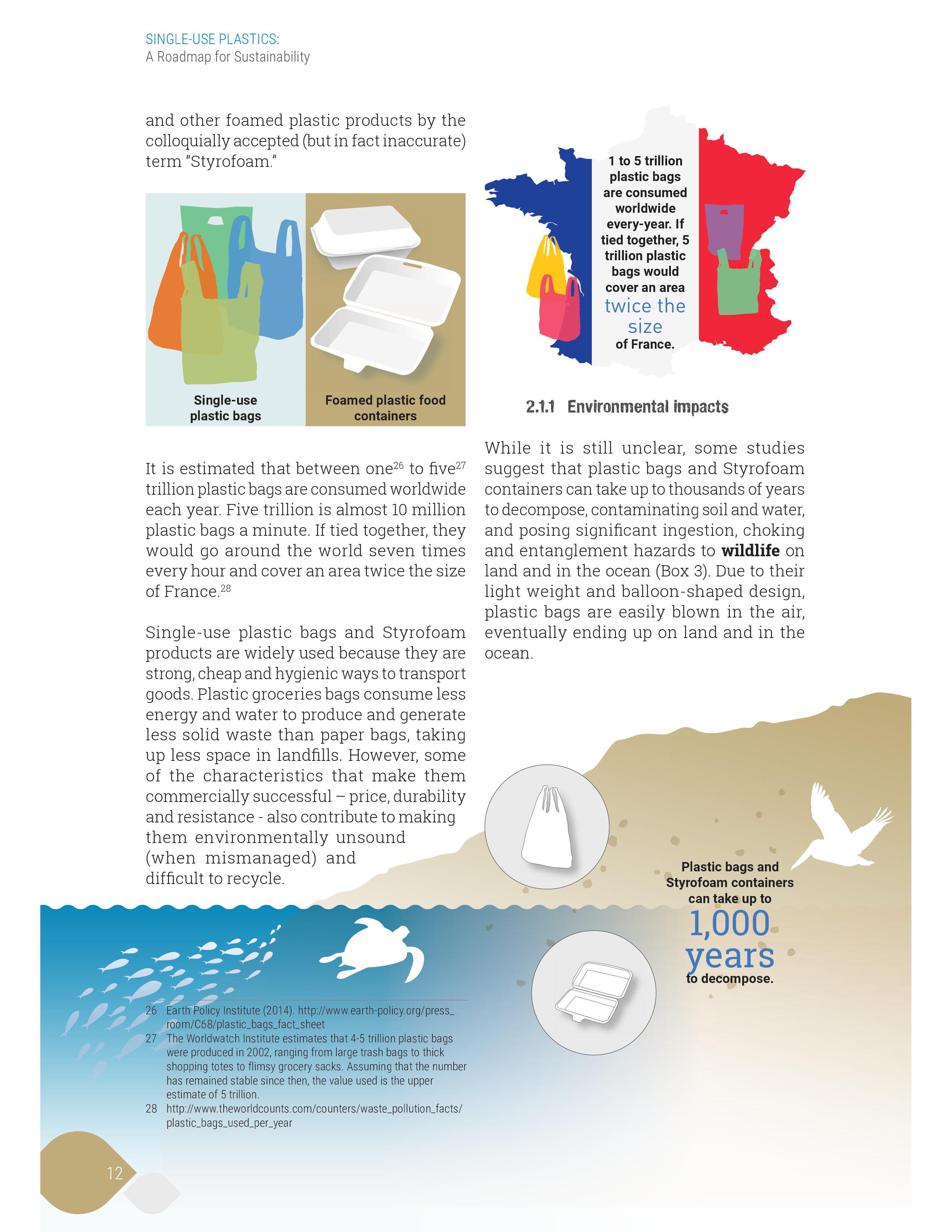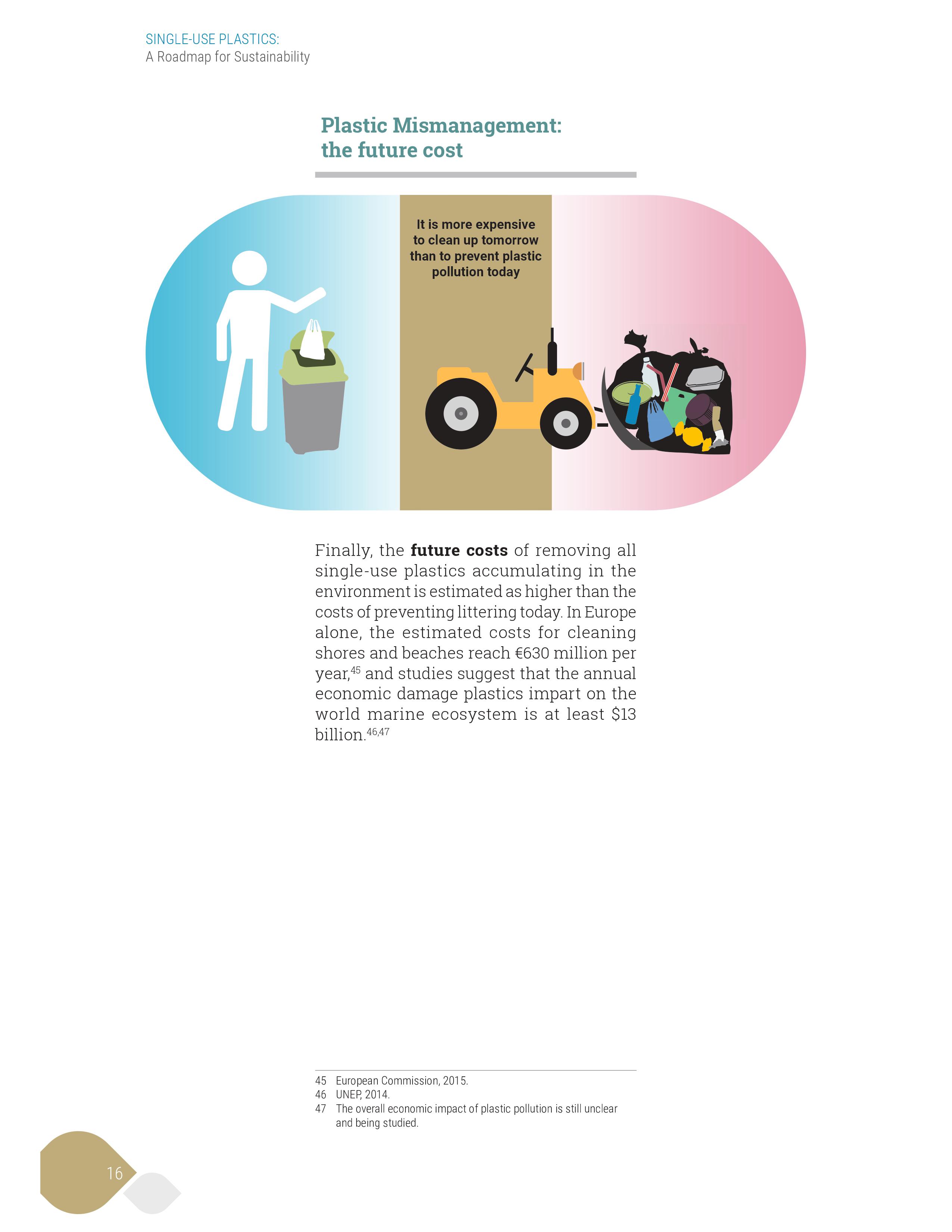 根据联合国的调查,如果按照当前的发展速度,到2050年,塑料行业将占全球石油使用量的20%。其中,超过1/4是一次性塑料产品。而这些产品主要来自中国、中国香港、中国台湾、日本和韩国。这些塑料产品大多不可降解,他们会缓慢变成细小颗粒,即微塑料。这需要上千年才能完全分解,还会污染土壤和海洋。仅在亚太地区,塑料垃圾每年给旅游、渔业和运输业造成13亿美元的损失。在欧洲,清理海边的塑料垃圾每年需要6.3亿欧元。而塑料给全球海洋生态造成的经济危害高达130亿美元/每年。