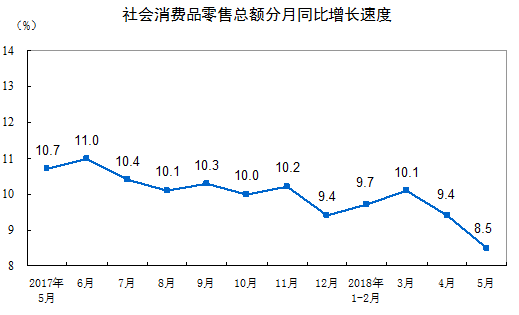 对于5月份社会消费品零售总额增速出现回落,国家统计局表示主要是受短期因素影响,下一步将保持平稳较快的增长。