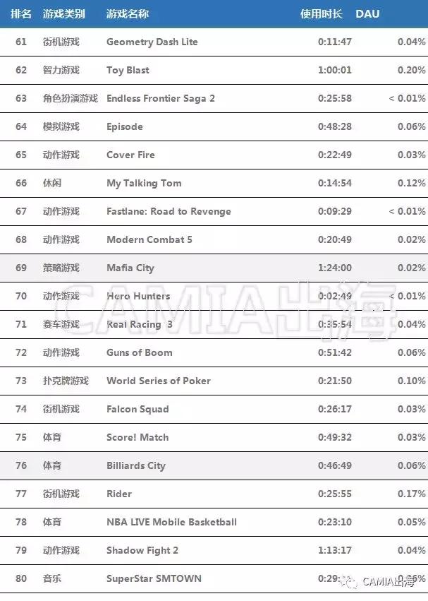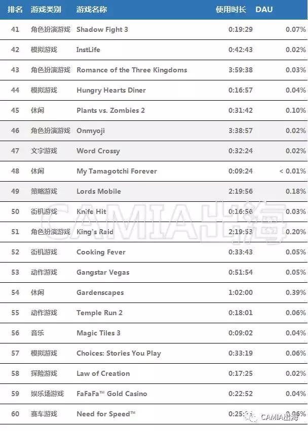 同菲律宾市场一样,休闲游戏在新加坡市场也表现不错,本次榜单中13%的游戏属于街机类游戏。