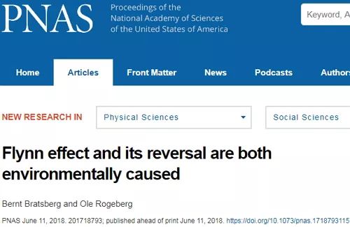 6月11日,《PNAS》期刊以“Flynn effect and its reversal are both environmentally caused”为题发表了这一最新研究,来自于挪威Ragnar Frisch经济研究中心的两位科学家Bernt Bratsberg和Ole Rogeberg发现:人类的IQ值一直在缓慢下降!