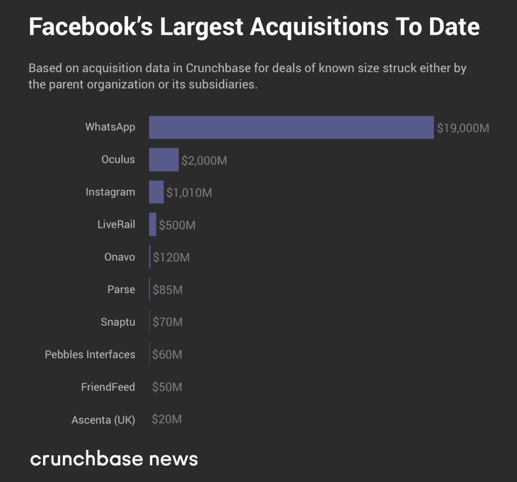 在五大科技巨头中,Facebook的并购模式最具二元性,交易要么很小,要么十分庞大。