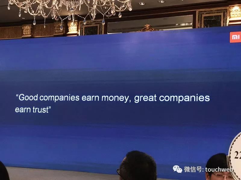 雷军在现场表示,小米的梦想是成为一家伟大的公司,好公司赚的是profit,伟大的公司赚的是人心,需要的是信任。