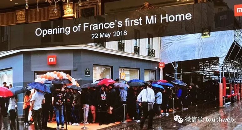 小米也已经进入到欧洲市场,一个月前,法国小米授权店开业的时候,400-500米粉冒着冰雹等开业,没有人离开。