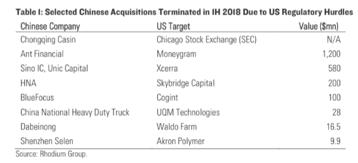 愈演愈烈的中美贸易摩擦升级导致中国企业出海“扫货”遇阻。蚂蚁金服年初收购美国汇款公司速汇金国际的交易就以失败告终。荣鼎称,前5个月,总计有价值20多亿美元的对美收购交易“流产”。