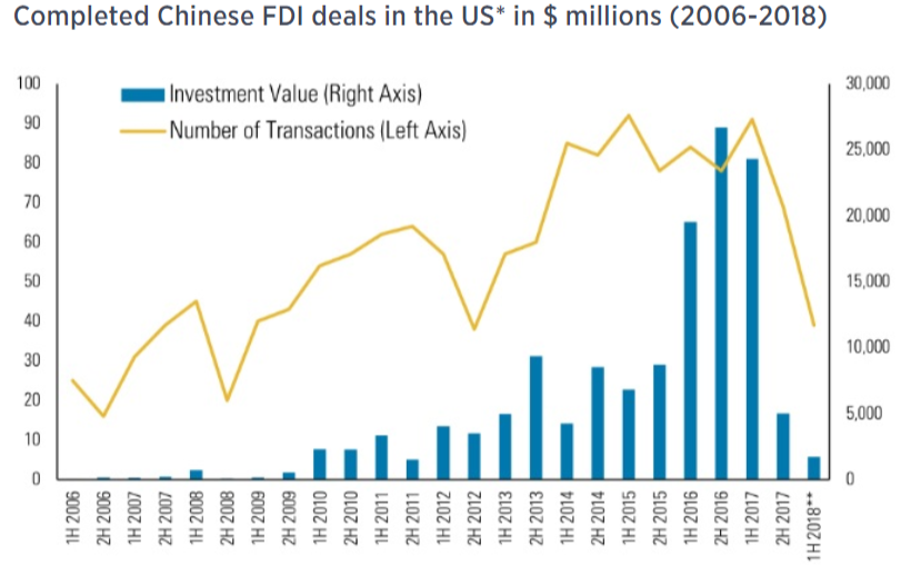 这一切都源起于去年下半年以来中国政府严格管控跨境资本流动,以及国内强力去杠杆、防控金融风险的政策。同时,中美两国经贸关系恶化更是令中国对美投资雪上加霜。