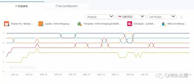 值得注意的是,同样进入TOP 5的购物app中的后三位都为印尼本土电商:《Tokopedia》,《Bukalapak》和《Blibli.com 》。