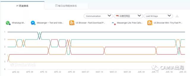 本期CAMIA统计了印尼市场今年3月28日至6月26日(三个月)移动应用程序免费下载榜排行情况并总结各个应用平均排名,得出该阶段内各类别最受欢迎TOP 5 APP,具体如下: