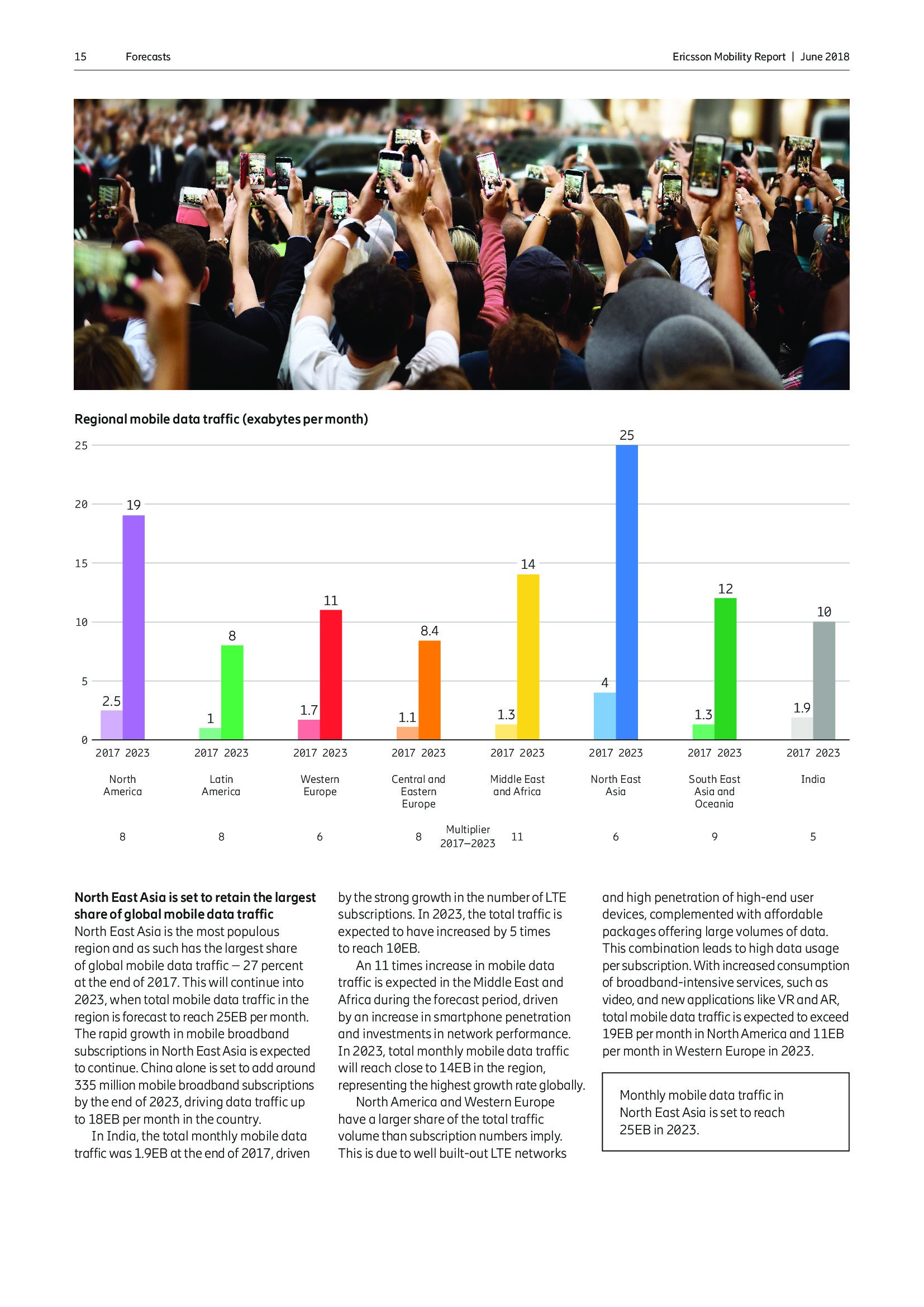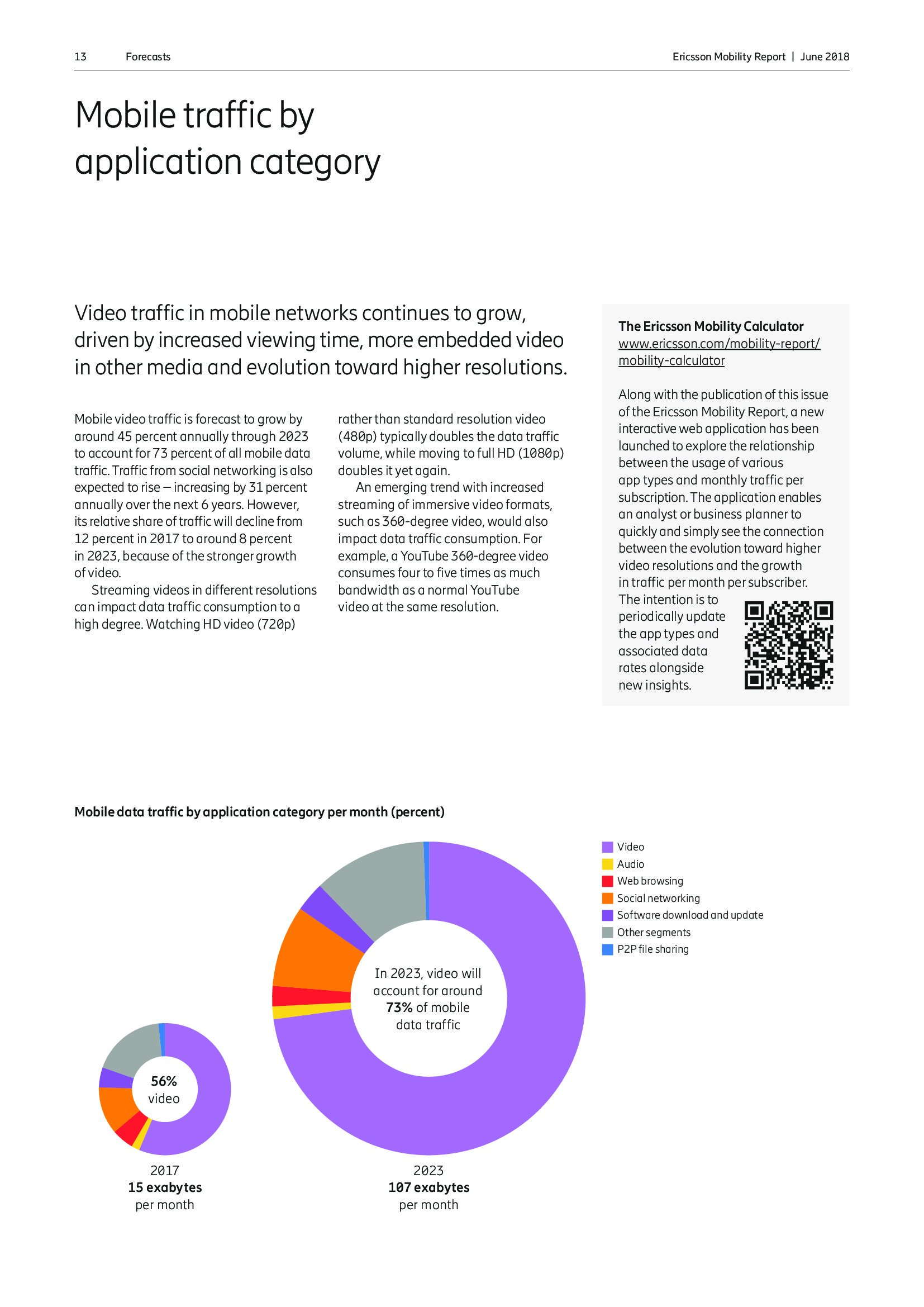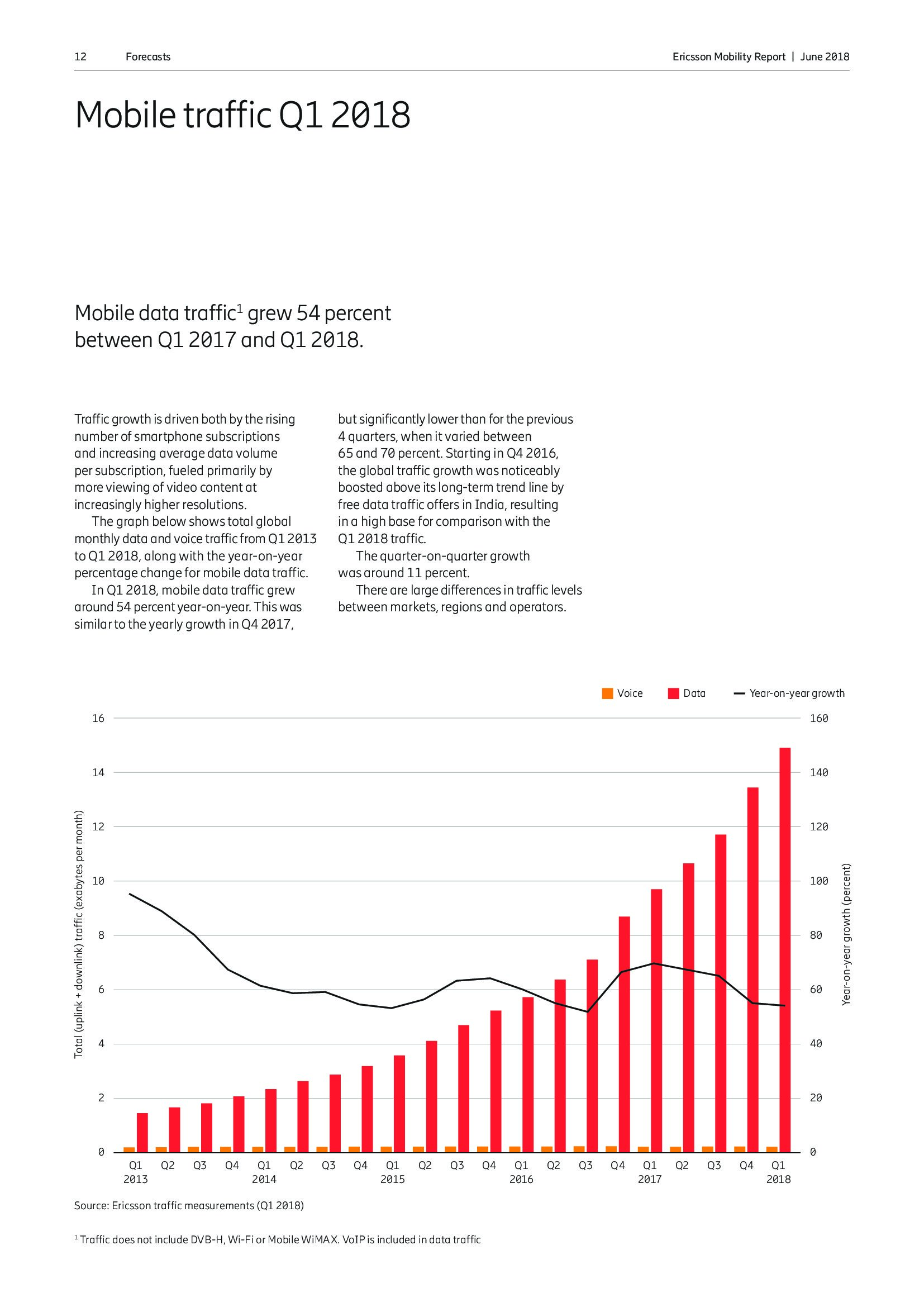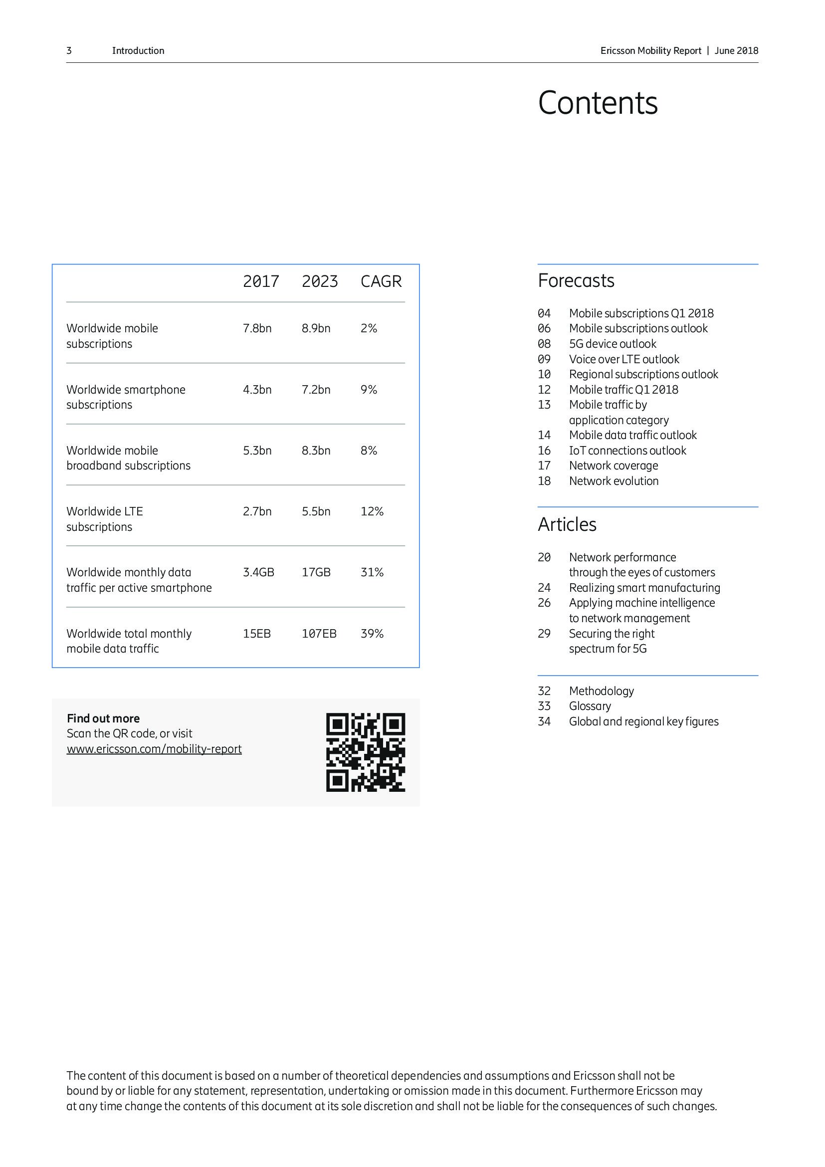 Ericsson发布了最新的“移动报告”。 2018年第一季度全球手机用户总数约为79亿,新增手机用户9800万,移动宽带用户55亿人。
