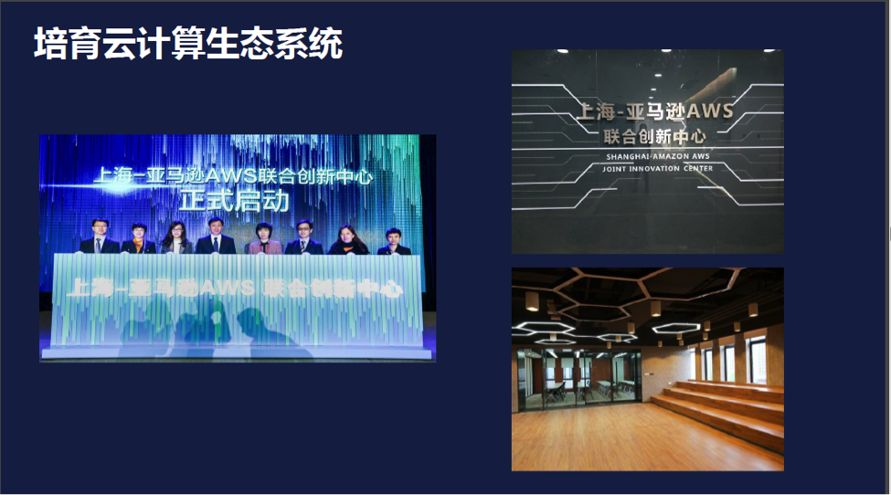 上海-亚马逊AWS联合创新中心位于上海市静安区市北高新园区云立方,内设智慧城市创新实践展示体验中心、云创技术培训中心和国际联动创新孵化器。智慧城市创新实践体验中心将基于云计算、大数据及物联网等高新技术和政府开放数据,推动企业创新,为创新企业提供应用展示平台,直观展示大数据分析、物联网和人工智能等最新技术在智慧城市领域的应用创新。
