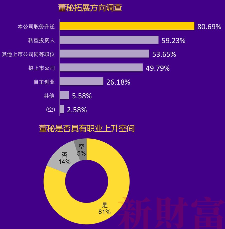 在2018年第十四届新财富董秘调查中,高达80%的董秘认为年龄对他们来说是优势。事实上,因为学历较高、个人技能卓越、具备与资本市场对接的能力,令董秘的职业版图愈发宽广。而多年来在资本市场积累的人脉以及学习能力,也成为董秘转型的优势。