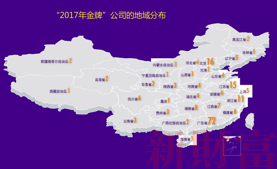 从董秘的地域分布来看,“金牌董秘”所在上市公司覆盖了除港澳台地区的全国31个省市自治区,其中,拥有最多上市公司的广东省以72家“金牌”公司数量位居榜者,成为本届拥有“金牌董秘”最多的省份,北京以16家位列第二,江苏省则以15名金牌董秘紧随其后。