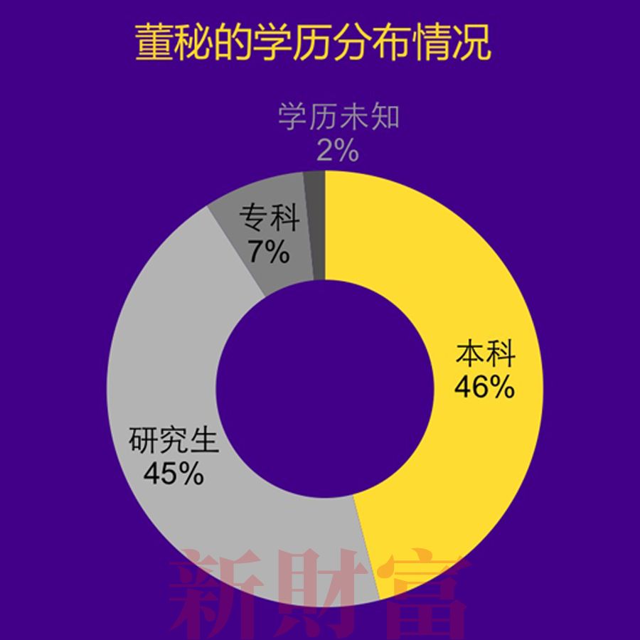 从第十四届新财富金牌董秘的评选结果来看,“金牌董秘”平均年龄为43岁,其中114位为硕士及研究生学历,占比57%;68位为本科学历,占比为34%;另有15位博士及EMBA。