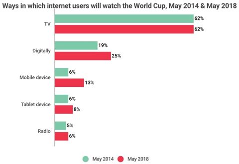 (图一 互联网用户观看世界杯的方式2018vs.2014)