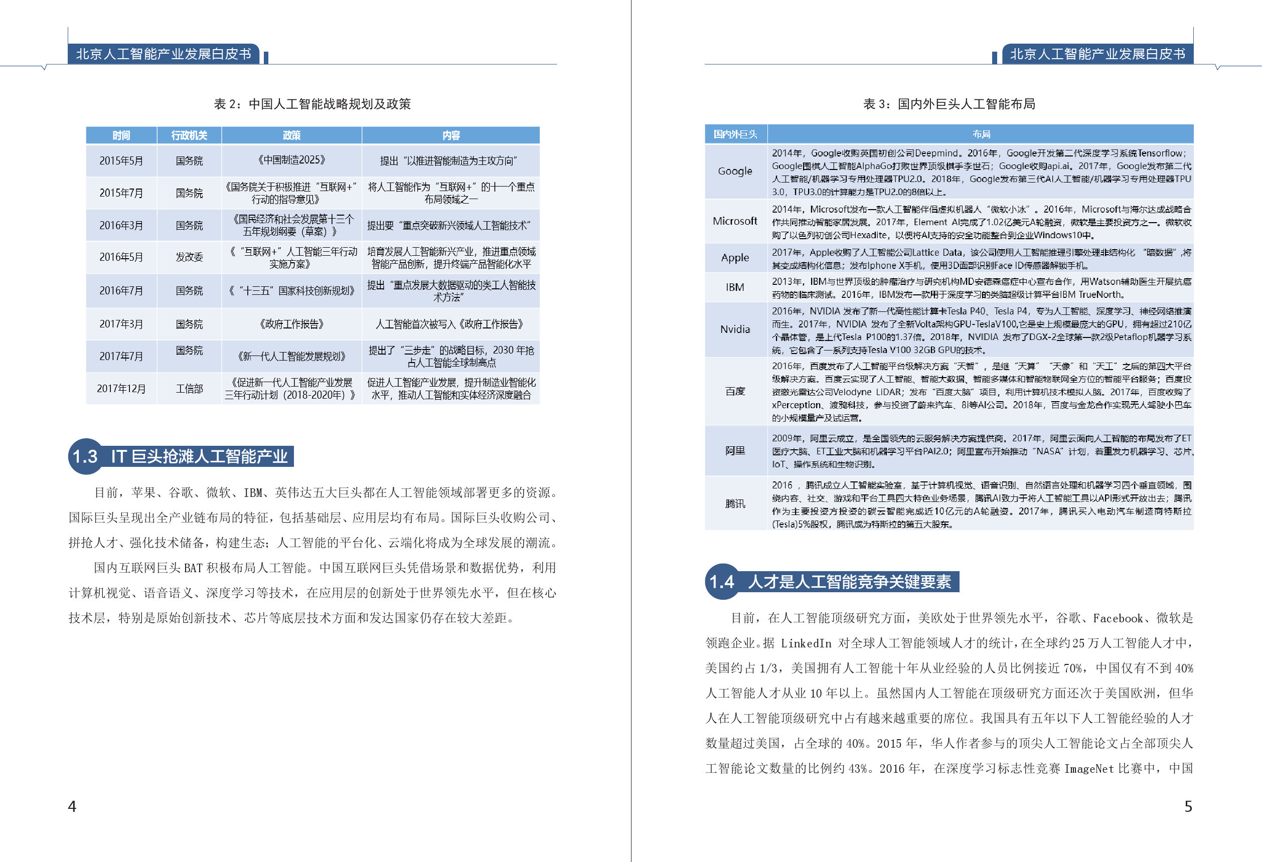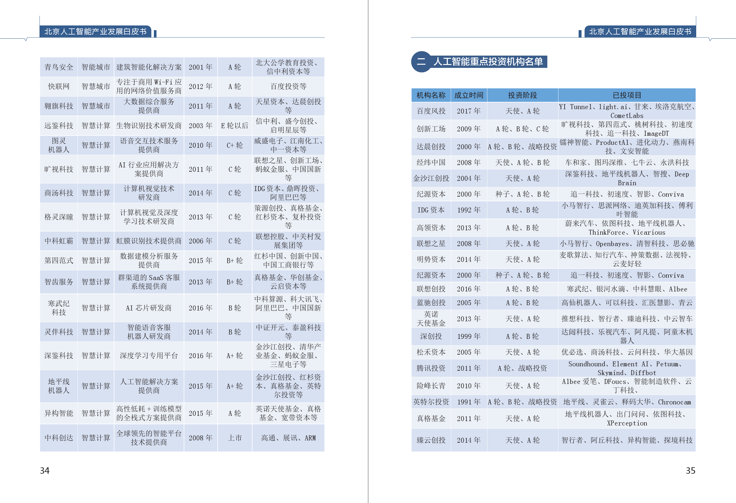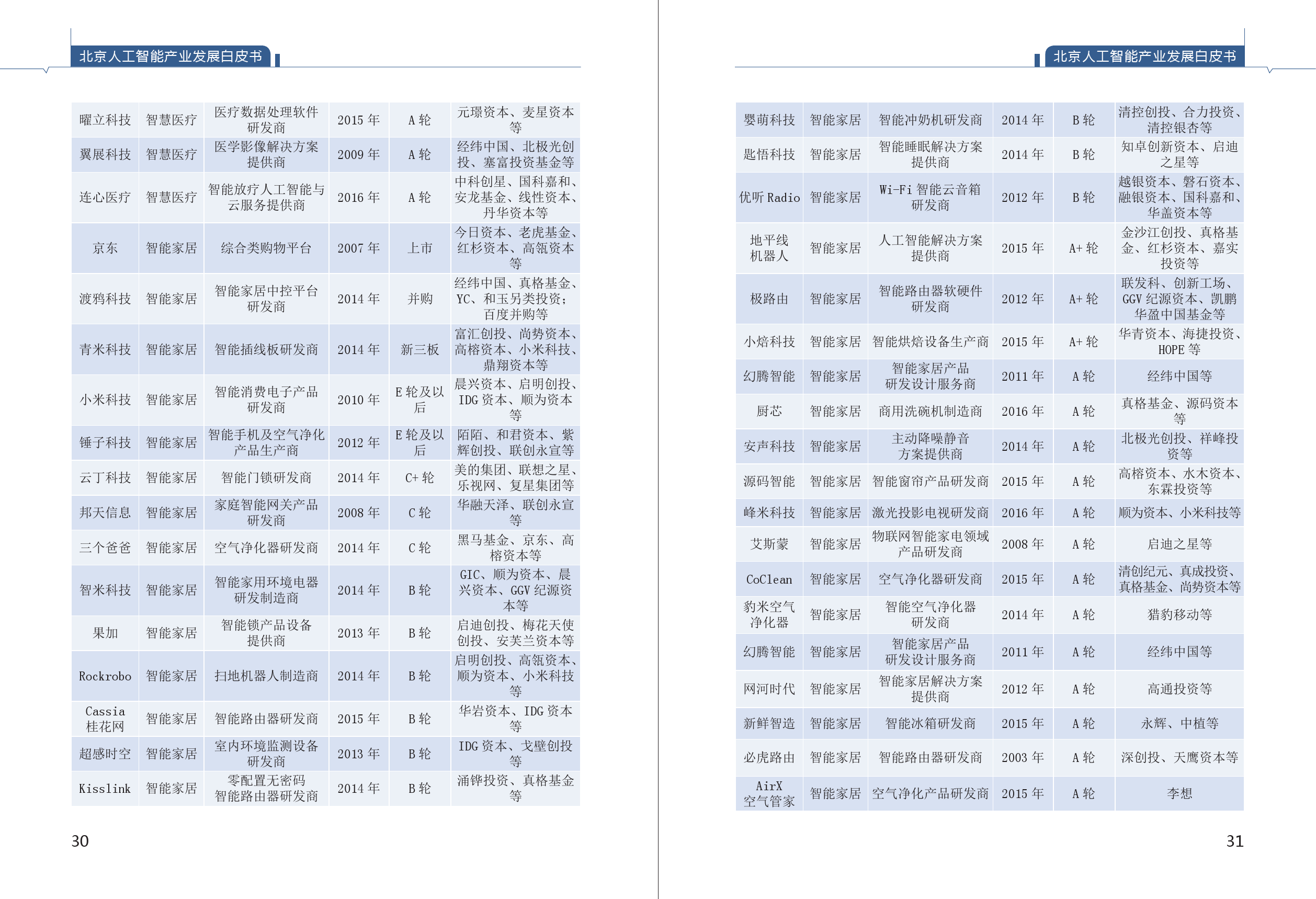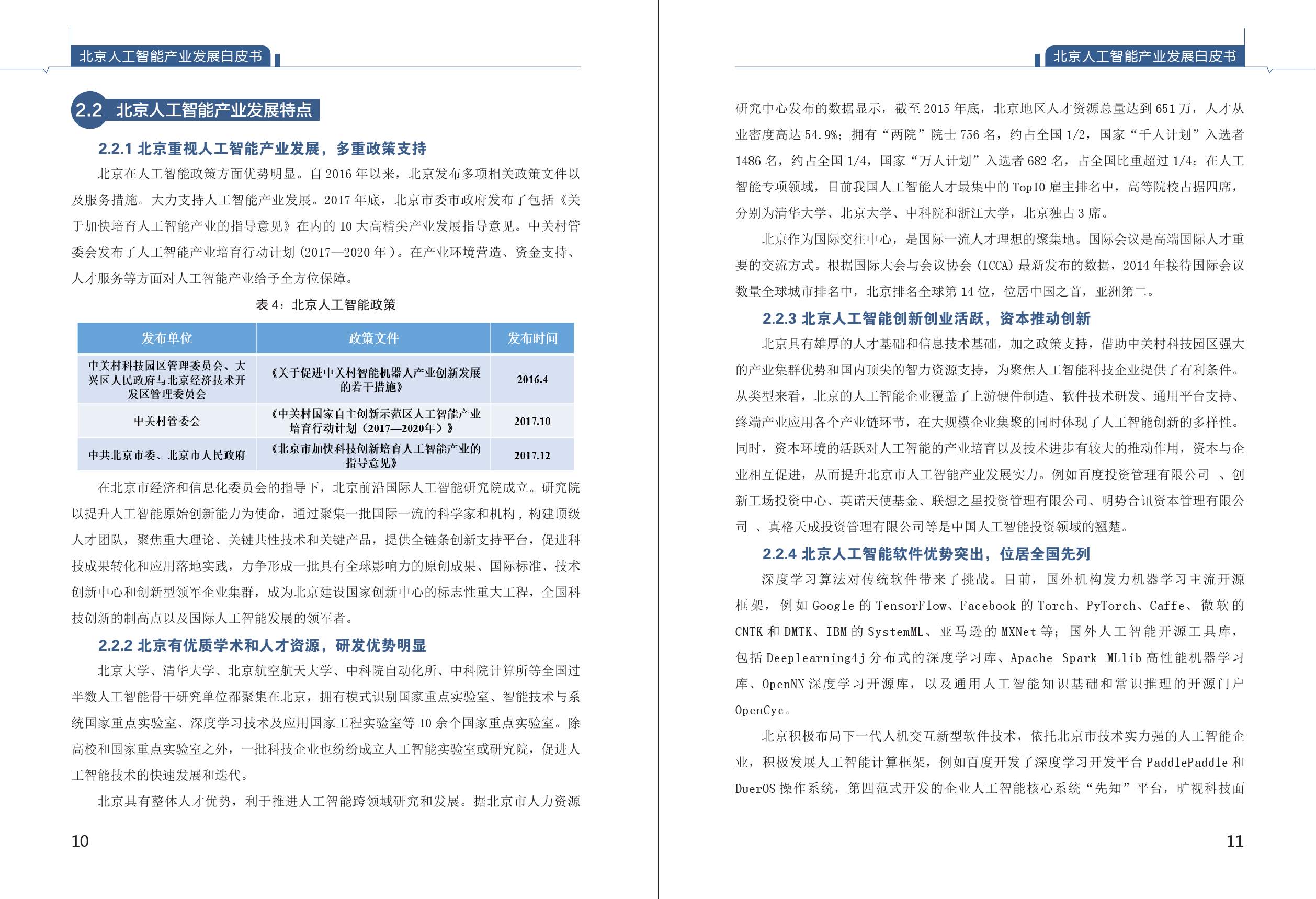 《白皮书》首次摸清了北京人工智能产业底数。综合清科、WIND、IT桔子、蓝海巨浪等公开数据及投资机构定向采集数据,由课题组整理,截至2018年5月8日,全国人工智能企业4040家,北京市人工智能企业1070家,占比26% ;全国拿过风险投资的人工智能公司合计1237家,北京市拿过风险投资的人工智能企业431家,占比35%。从融资阶段看,北京人工智能企业一半以上仍处于初创期,在A轮之前的企业占比达56.97%,具有创新发展潜力。从企业成立时间看,北京人工智能企业2015-2016年呈现出爆发性增长,人工智能快速增长特征明显。从区域看,60.96%的人工智能企业注册在海淀区。中关村成为我国人工智能创新高地。