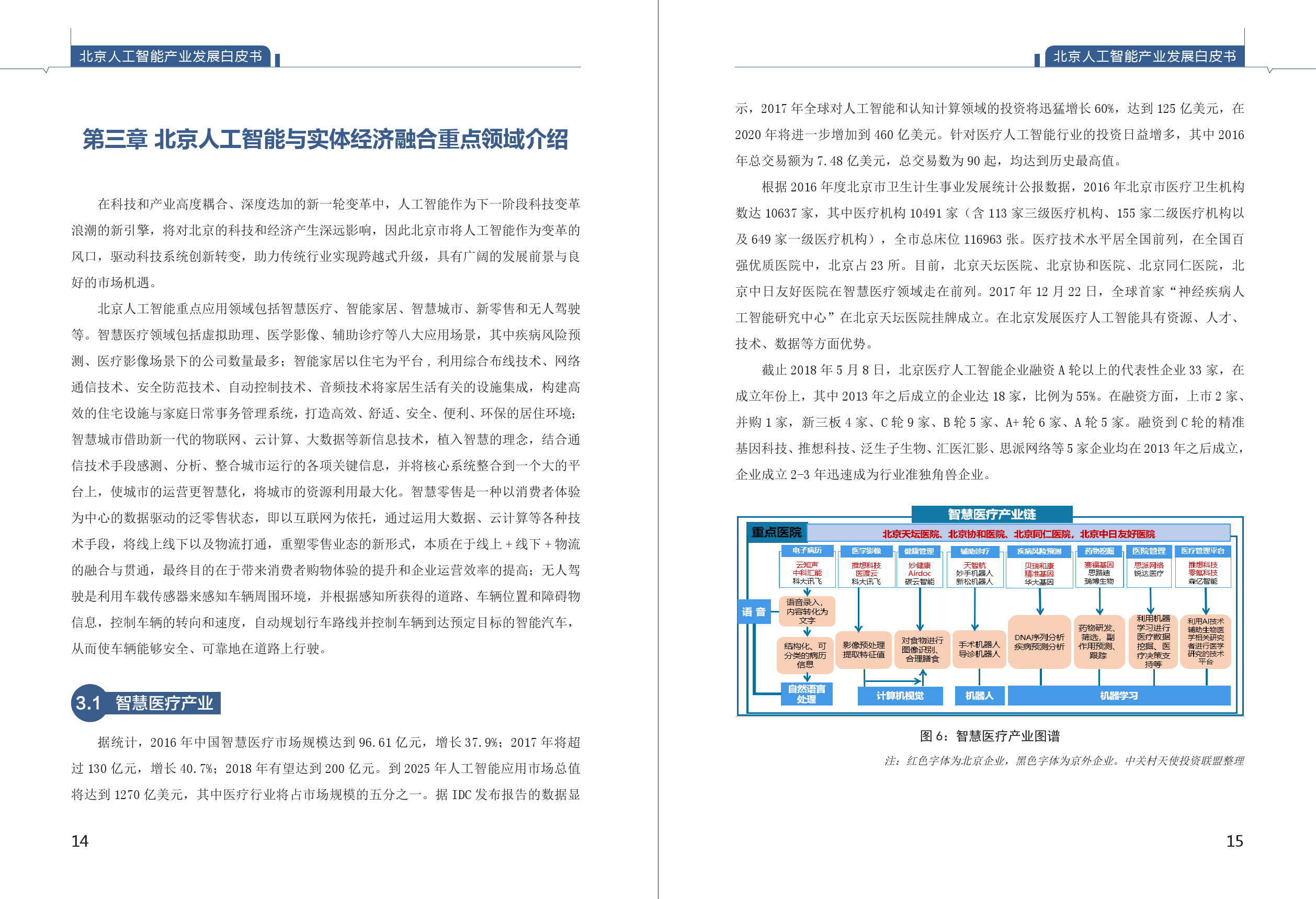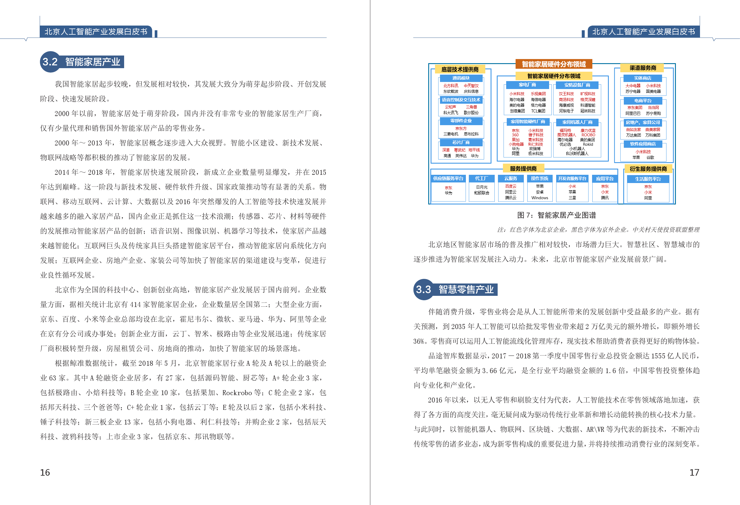 《白皮书》由北京市经信委组织相关单位编制而成,绘制了北京人工智能全产业链图,而且针对智慧医疗、智能家居、智慧城市、智慧零售和无人驾驶等5个特色鲜明的领域绘制了分领域产业链图。数据显示,北京人工智能企业2015-2016年呈现出爆发性增长,人工智能快速增长特征明显,中关村成为我国人工智能创新高地。
