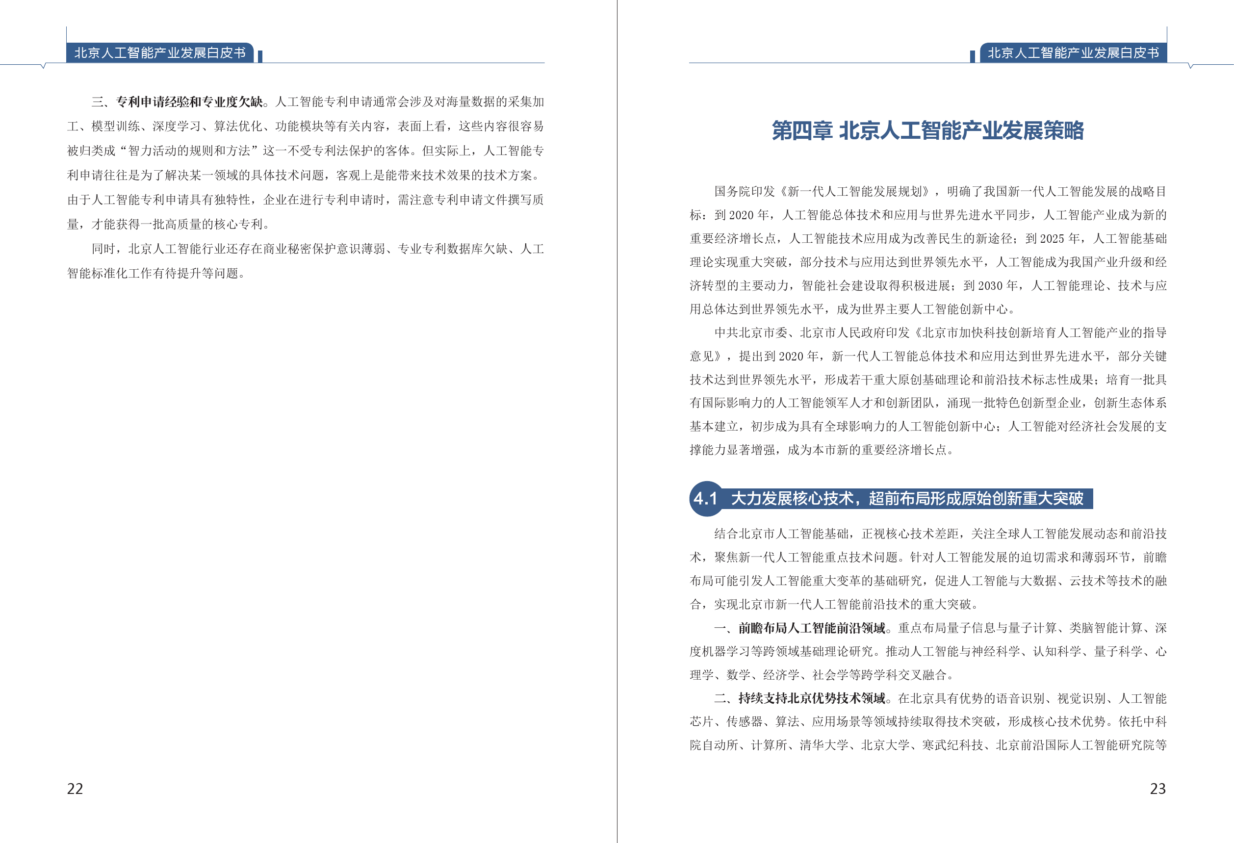 同时,《白皮书》不仅绘制了北京人工智能全产业链图,而且针对智慧医疗、智能家居、智慧城市、智慧零售和无人驾驶等5个特色鲜明的领域绘制了分领域产业链图。《白皮书》总结了北京人工智能产业在政策、人才、创新、软件研发、专利等5个方面的优势,以及在原始创新、高端芯片等4个方面面临的挑战,并给出了大力发展核心技术、超前布局原始创新等6项策略。北京将以建设全国科技创新中心为契机,抓住新机遇,施展新作为,将北京打造成引领全球人工智能产业发展的高地。