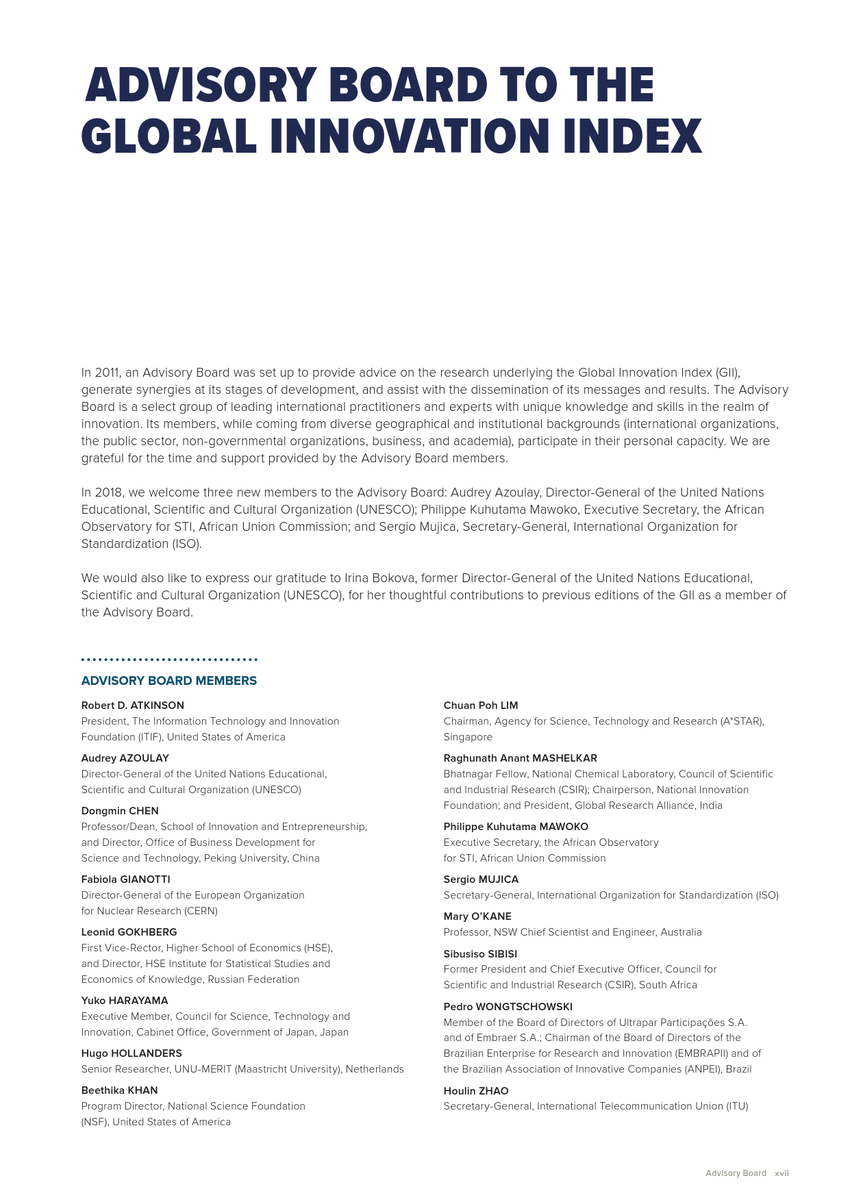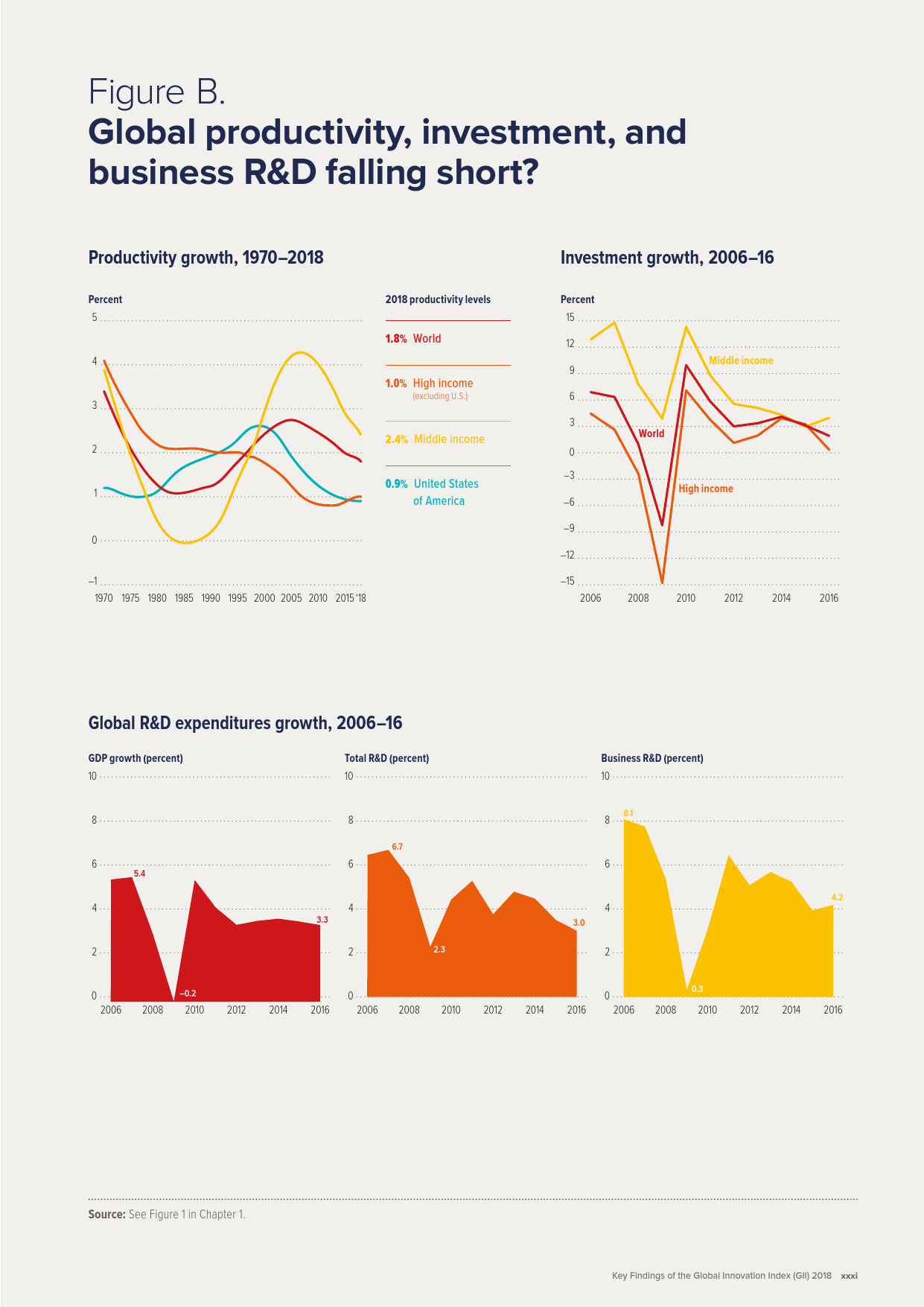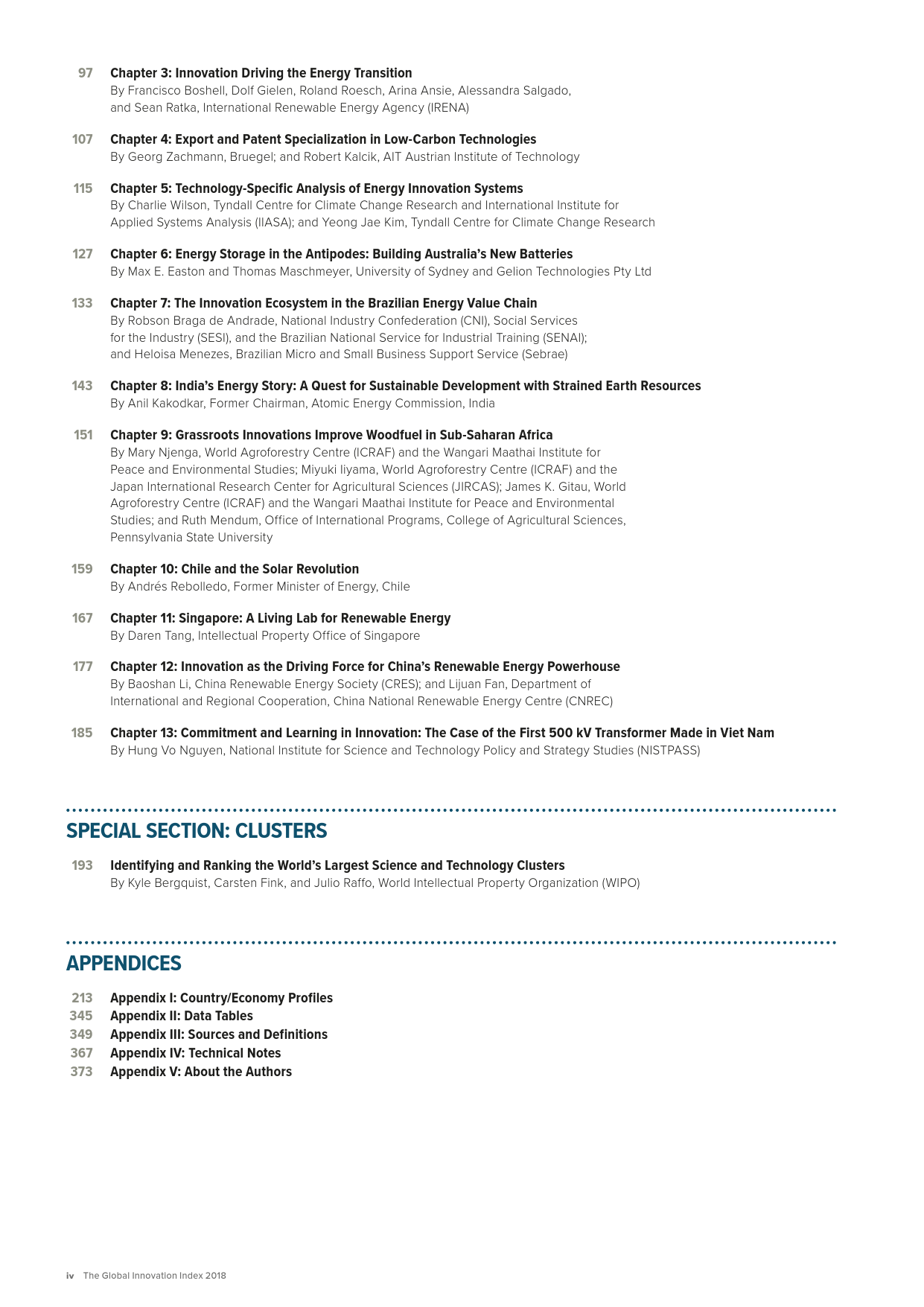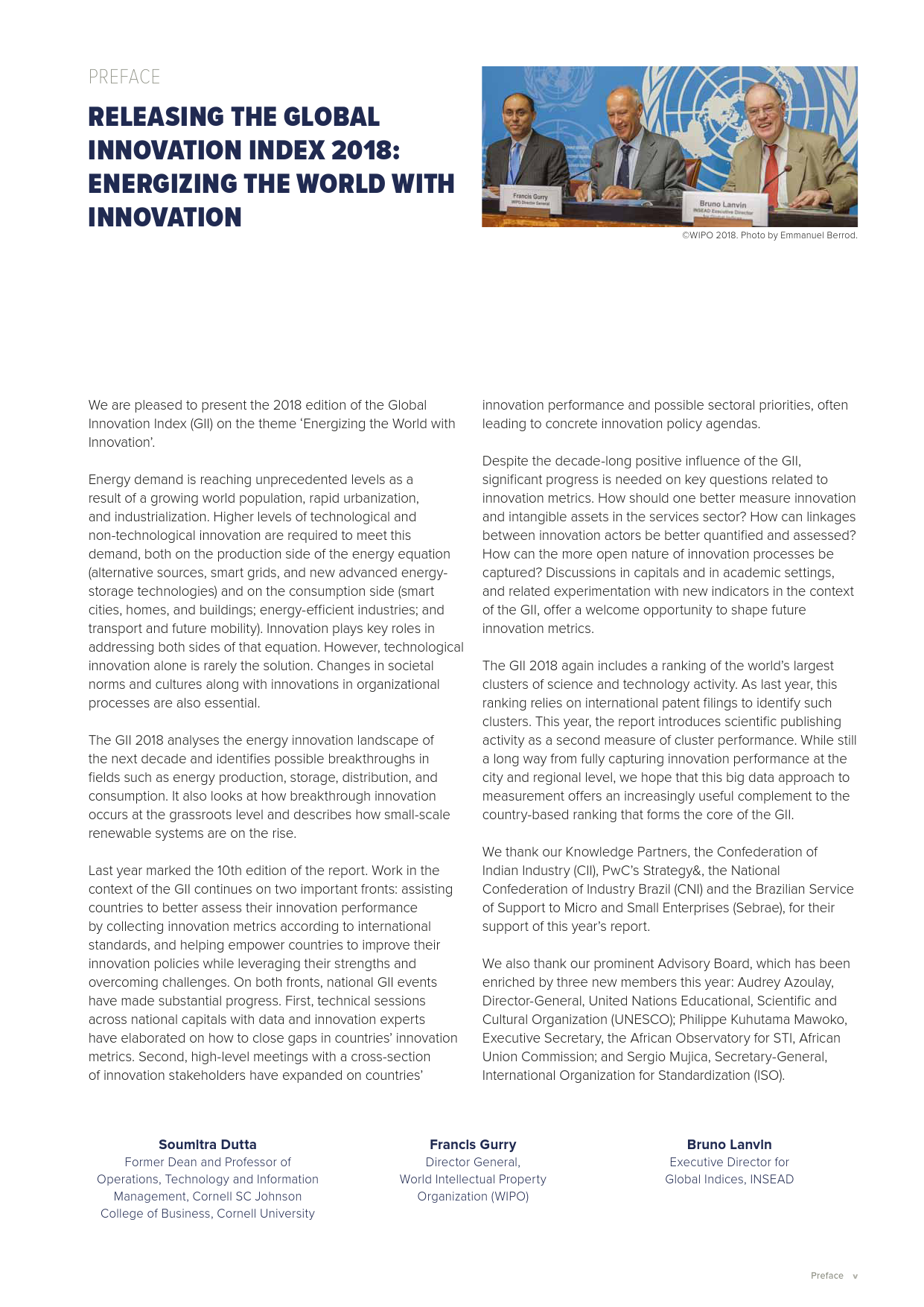 2018年版全球创新指数的主题是“世界能源,创新为要”,研究了在全球能源需求不断上升的情况下,在气候友好型绿色技术方面拓宽创新性工作的必要性。预测表明,到2040年,世界对能源的需求要比现在高出多达30%,而面临气候变化,依靠扩大能源供应的传统做法是不可持续的。