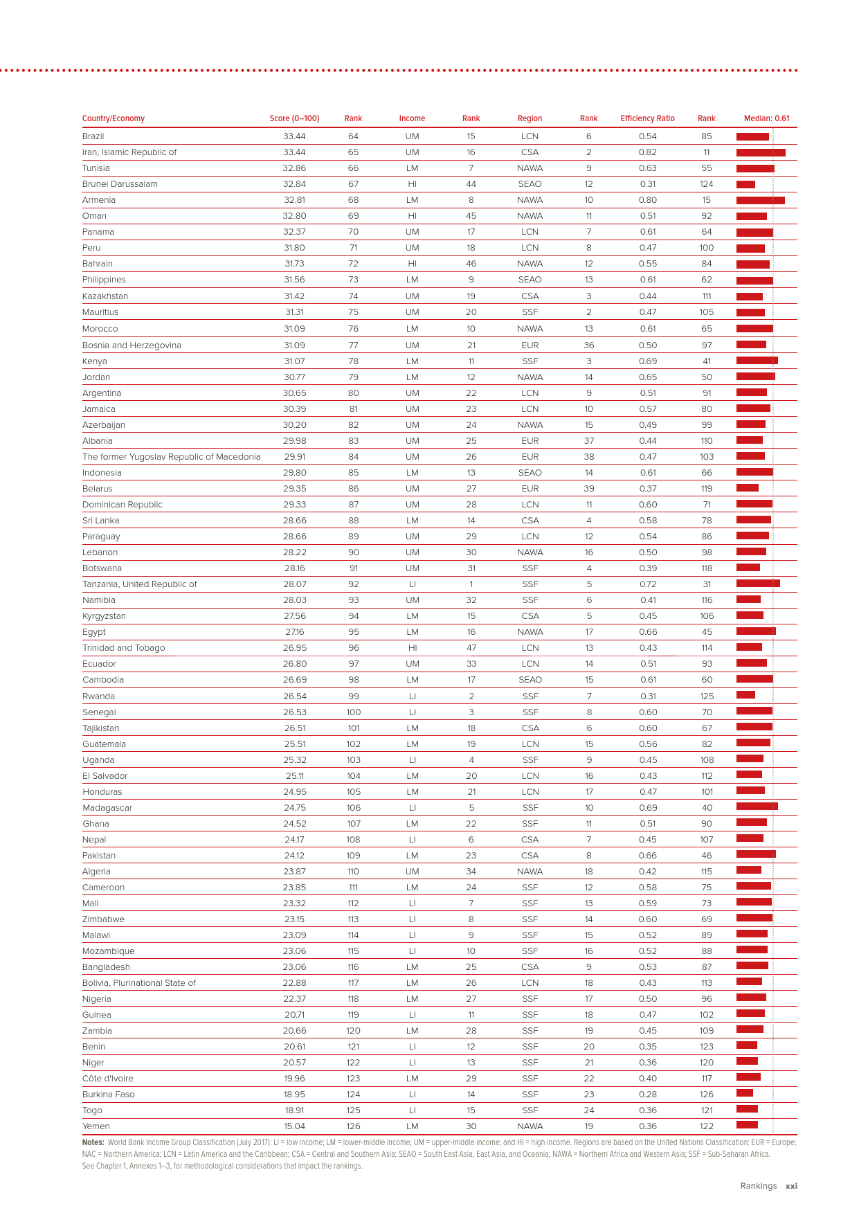 伊朗伊斯兰共和国今年在以下指标中名列前茅:生产力增长、科学和工程专业毕业生。其他具有相对优势的领域包括资本投资、专利、科技出版物、商标和技术制造。