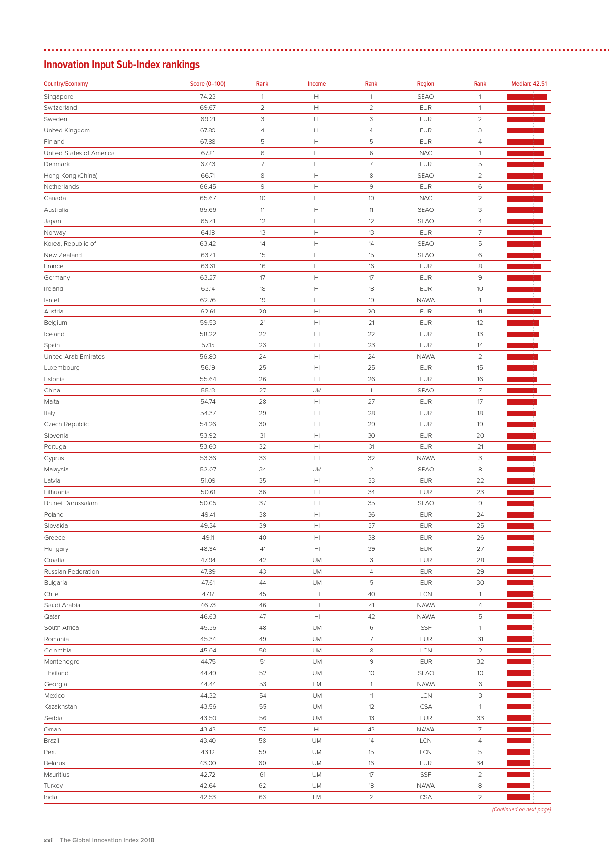 印度继续在中南亚地区保持领先地位,排名上升了三位——从2017年全球创新指数的第60位上升到今年的第57位。伊朗伊斯兰共和国在该地区仍位居第二。哈萨克斯坦是第三。
