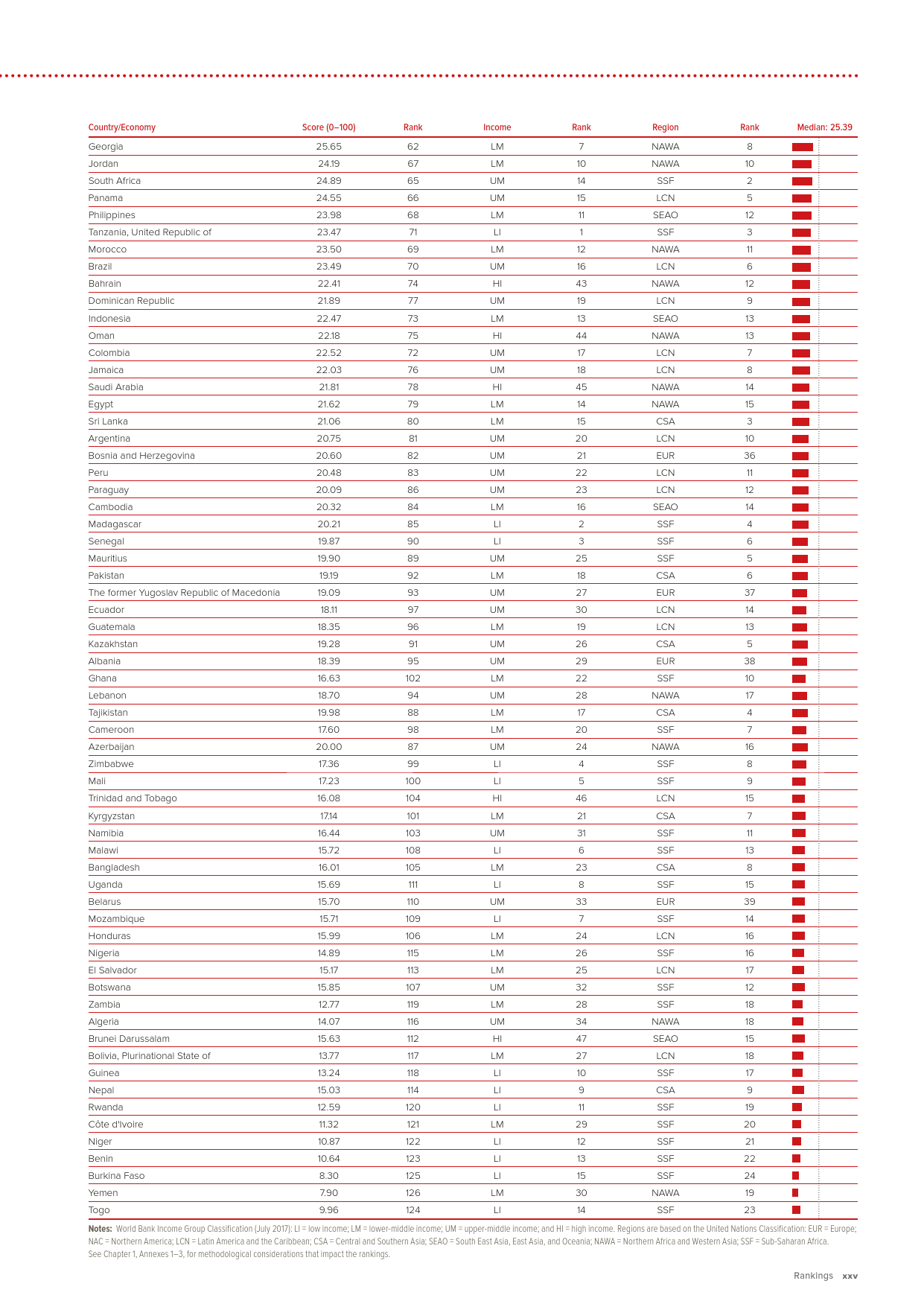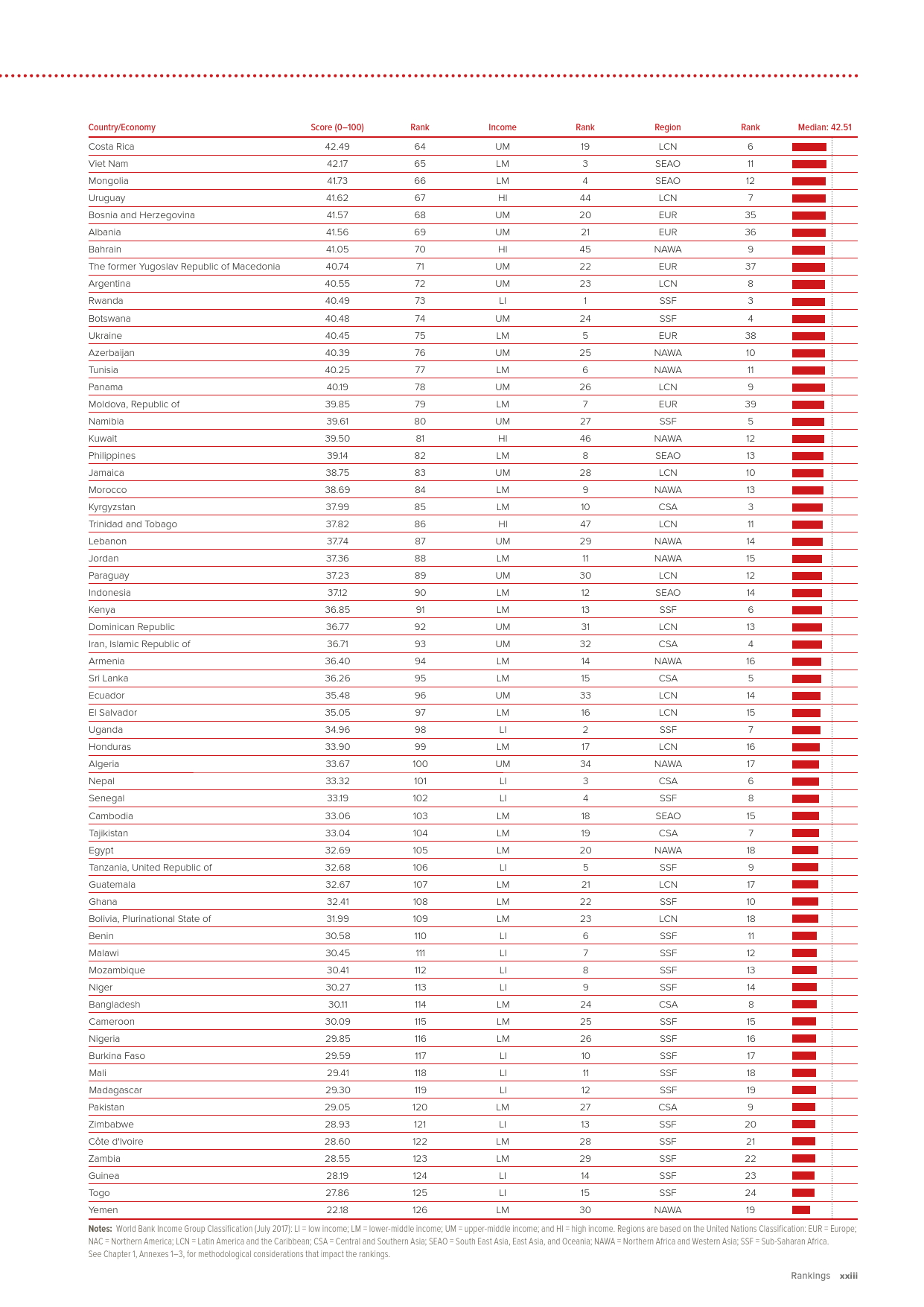 毛里求斯在该地区排名第二,拥有强大的政治、商业和信贷环境。其他特长包括:政治稳定性和安全、中学生政府支出、能耗效率和贸易。
