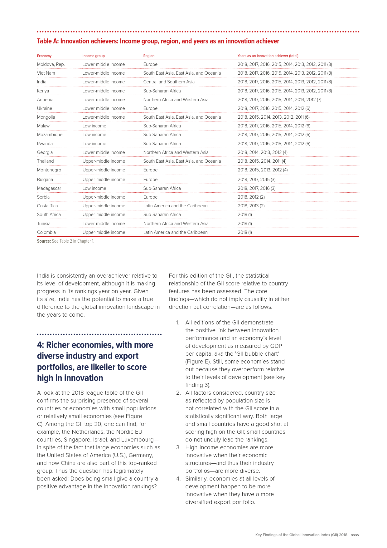 在中低收入经济体中,印度在全球创新指数排名中上升至第五。它已连续第八年在创新方面取得了优于其人均GDP的表现。印度在以下几个重要指标中取得较好排名:生产力增长、信息通信技术服务出口。