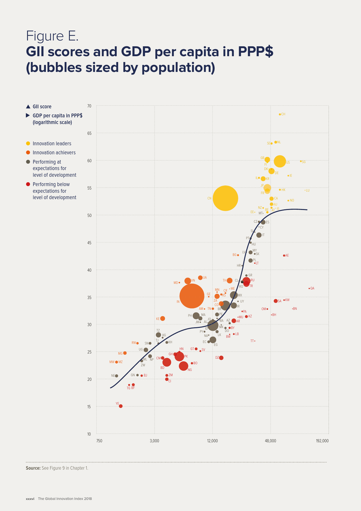在全球创新指数的若干版本中,一些撒哈拉以南非洲经济体的创新表现都相对比各自的经济发展水平要好。