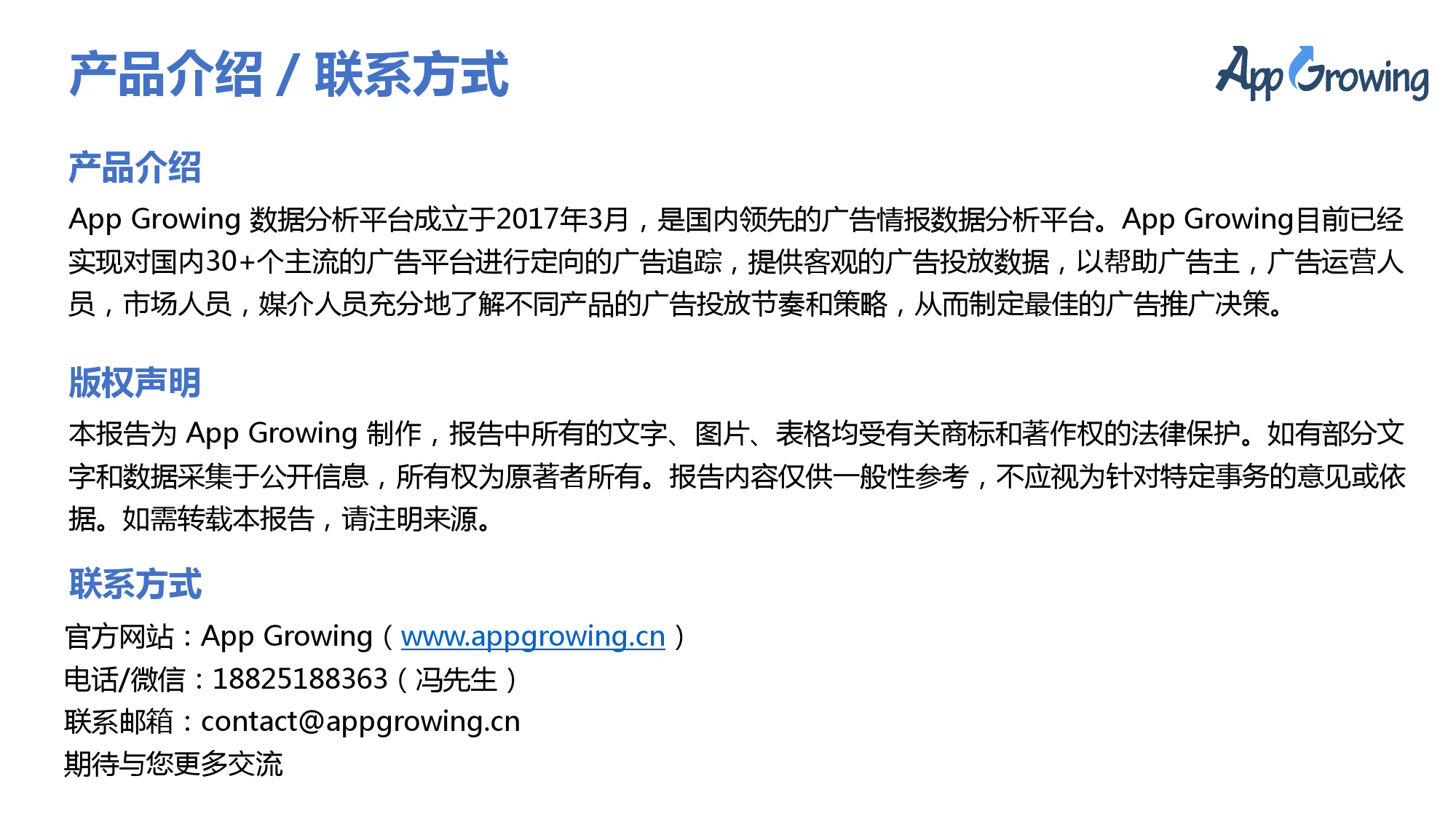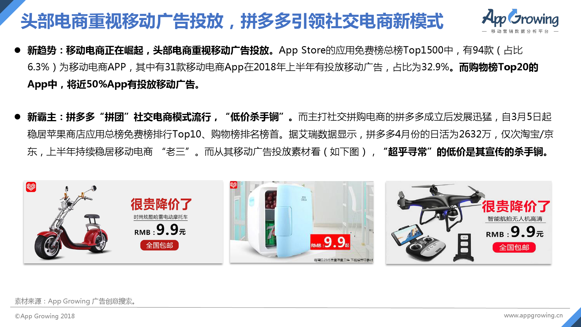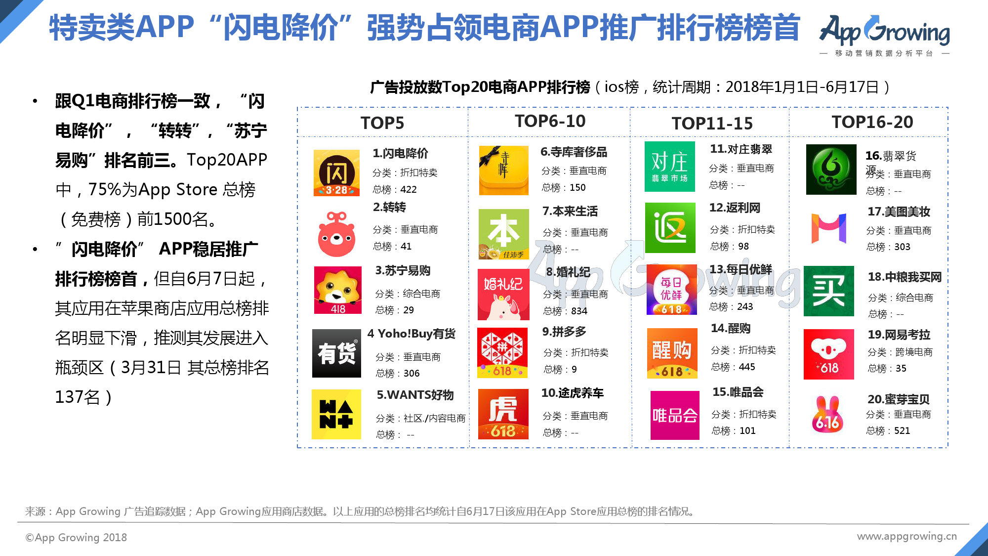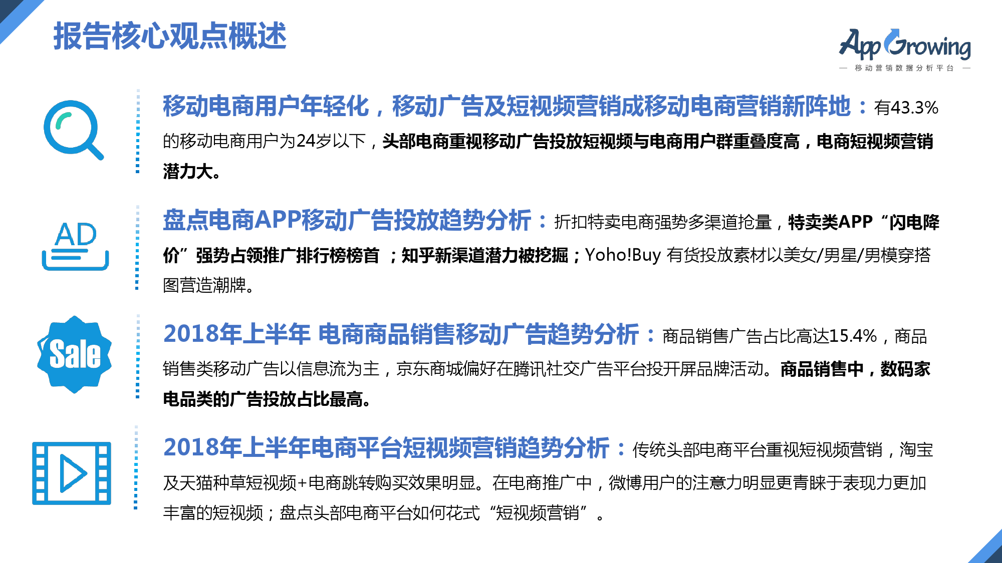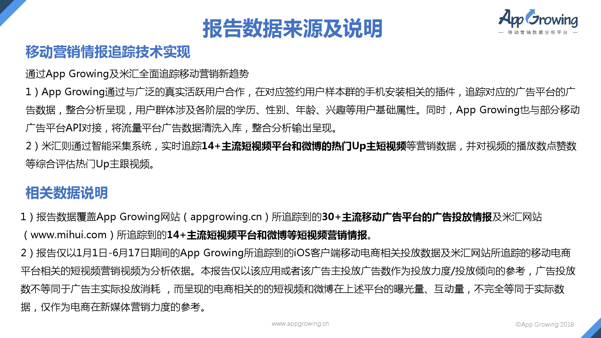 AppGrowing:2018年上半年移动电商营销分析报告 PDF版本将分享到199IT交流群,支持我们发展可加入! 更多阅读:AppGrowing:2018上半年移动电商营销分析报告AppGrowing:2023年Q1移动广告趋势洞察AppGrowing:2022上半年移动广告流量观察白皮书消费者品牌报告:寻找真相AppGrowing:2022年11月应用海外买量特征进行的分析AppGrowing:2023上半年全球手游买量报告AppGrowing、游戏葡萄、点点数据:2023年第一季度海外市场中重度手游买量观察AppGrowing:2022年Q1移动广告投放分析有米云AppGrowing&亿邦研究院:2021年上半年抖品牌营销白皮书AppGrowing:2019春节假期移动广告投放洞察Dr Augustine Fou:2014年网络广告虚假成份量化分析报告AppGrowing:2023年5月应用月报AppGrowing:2023年2月App买量洞察AppGrowing:2022年10月手游广告量前期呈下降趋势AppGrowing:2022年Q3移动广告趋势洞察