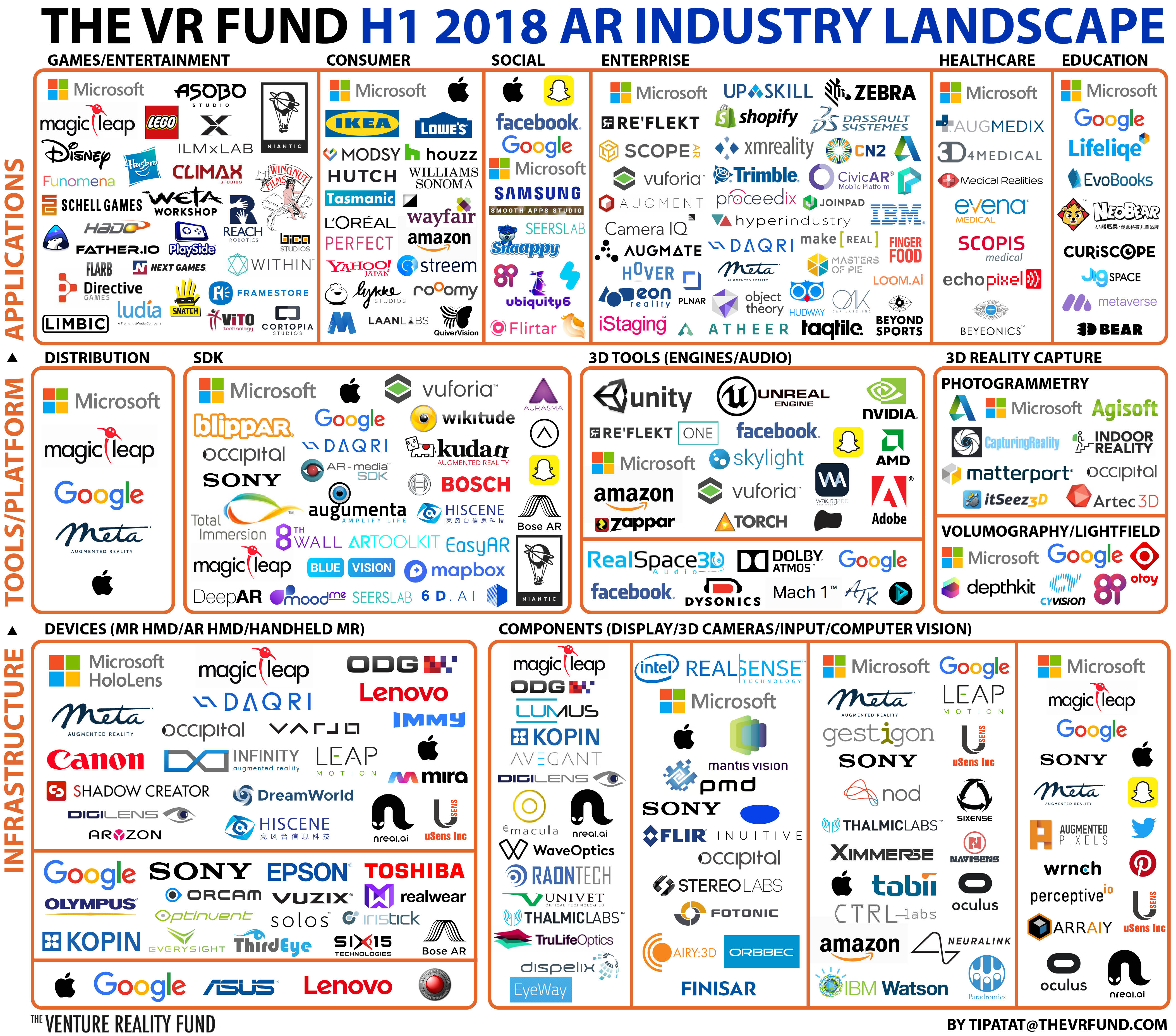 The Venture Reality Fund专注于VR、AR和MR领域的投资,该公司今日发布报告称,今年上半年全球AR生态系统继续快速发展,AR公司的数量增长了50%达到290家。