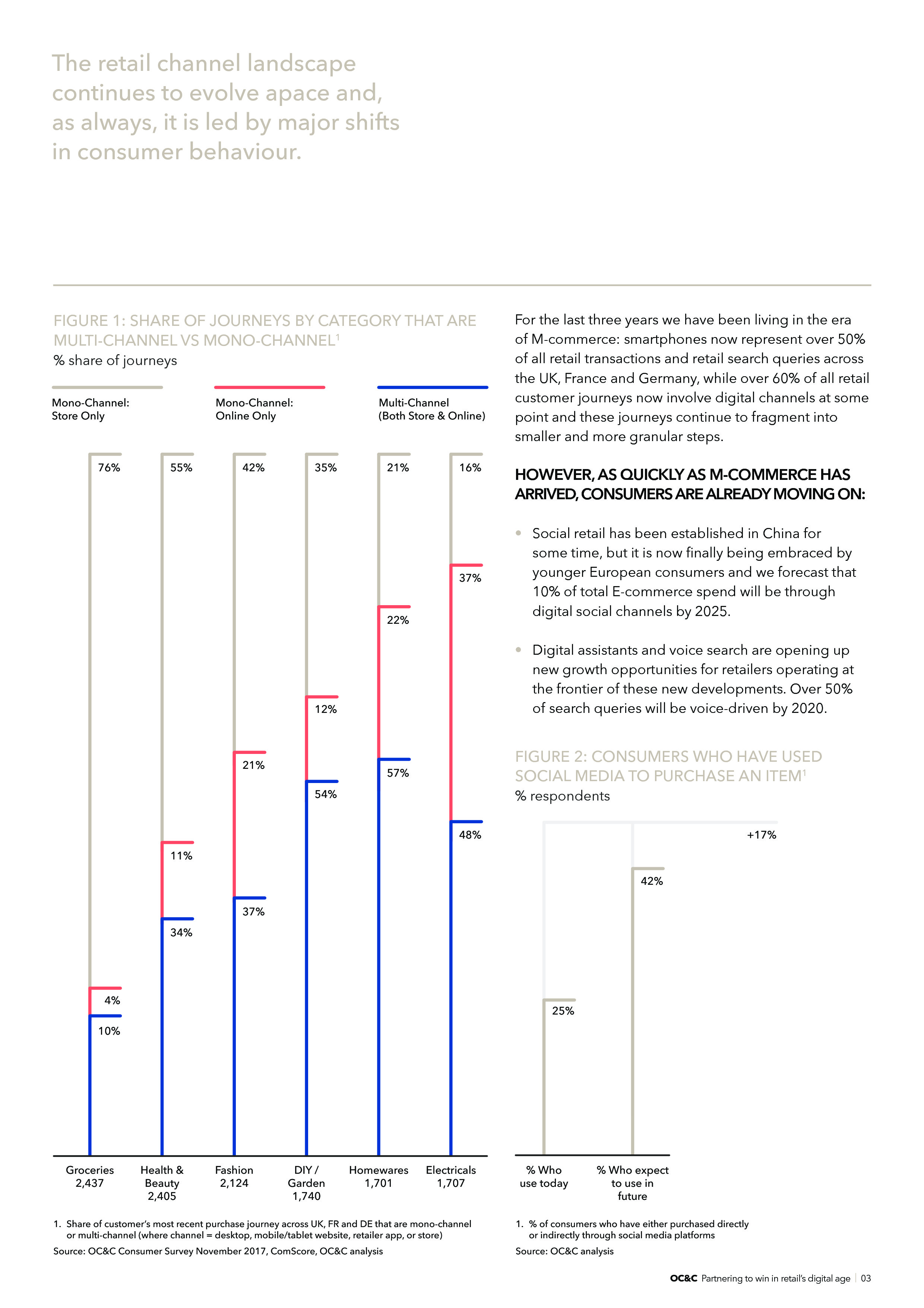 超过50%的零售搜索是在智能手机上完成的。目前,智能手机占英国、法国和德国零售交易和零售搜索的50%以上,超过60%的零售购物旅程涉及网络渠道。