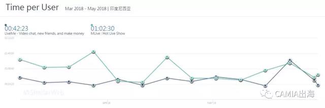 与《LINE PLAY 》比较相似的是,《MLive 》在使用时长方面也具有较为突出的优势,其用户使用时长也超过了一个小时。榜首霸主《BIGO LIVE》与《LiveMe 》在这一方面的指数也相对较高。