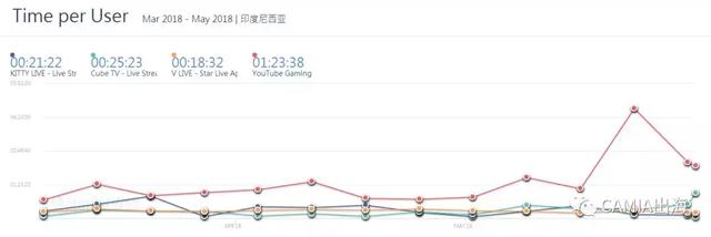 《YouTube Gaming》《Twatch》《Nimo TV 》属性为游戏直播平台,遗憾的是在Similarweb内没有搜索到后两者相关数据。不过从《YouTube Gaming》的用户使用时长数据来看,或许游戏直播app的用户使用时长相对于其他类型的直播app会有更明显的优势?