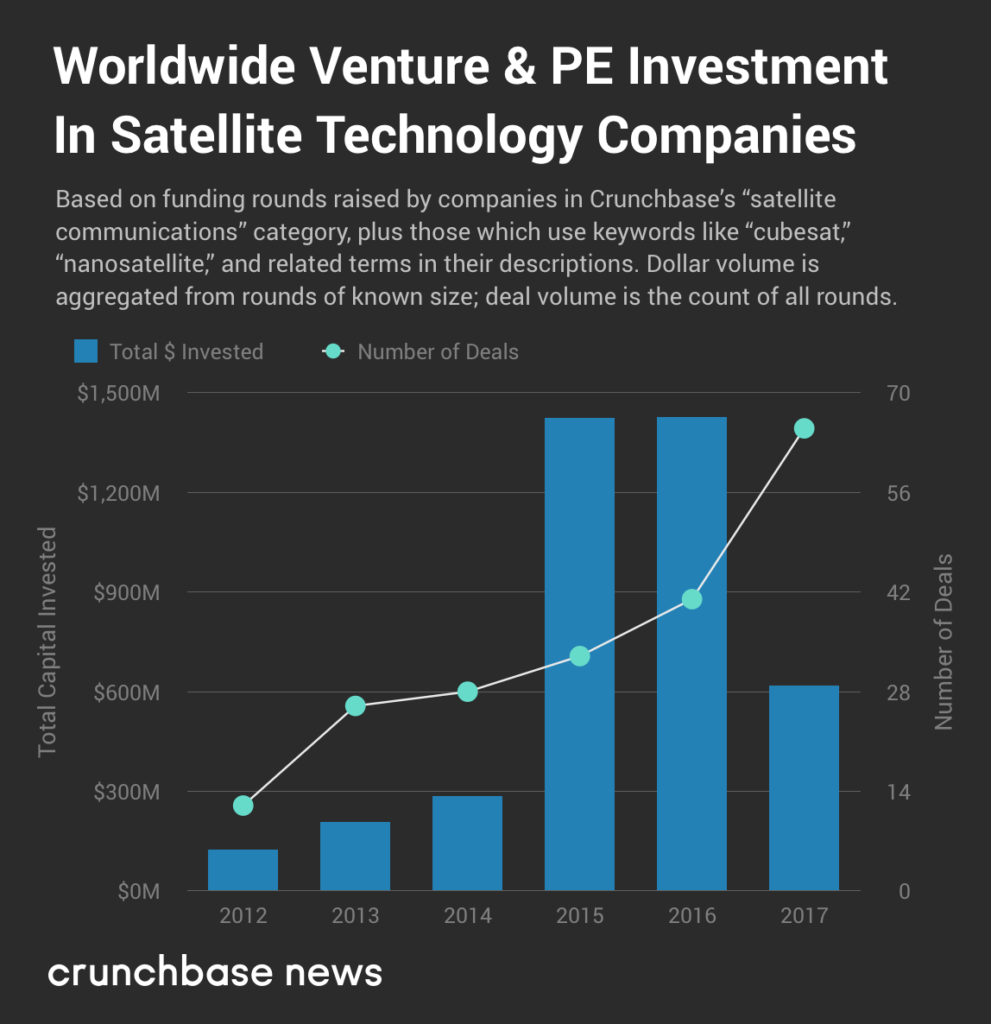 经过长期的休耕期后,自2012年以来,对卫星技术的风险投资一直处于飞速发展的状态。