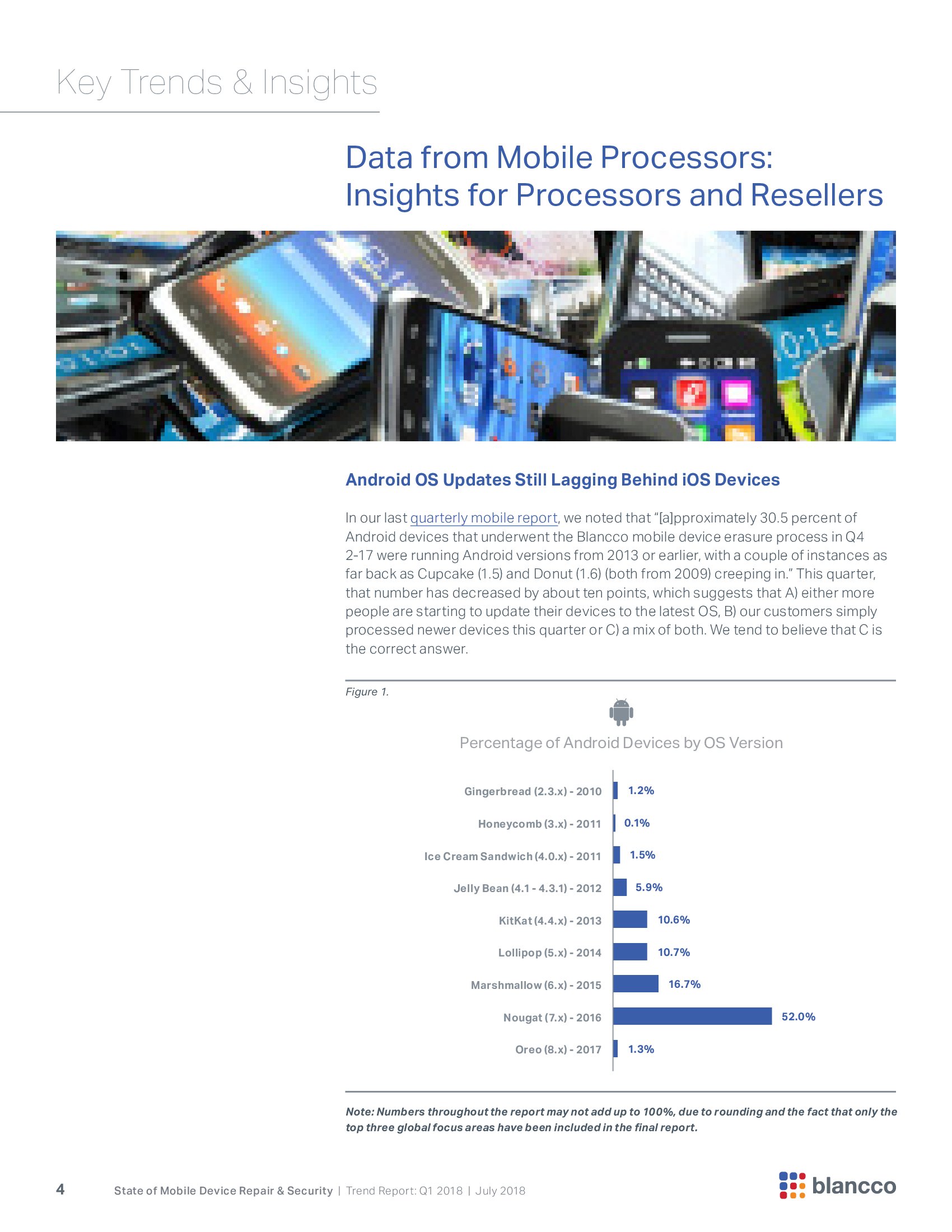 2017年翻新智能手机市场接近1.4亿部,那些负责确保这些设备高效和安全的手机处理器面临着时间和成本限制。Blancco重点关注运行Android和iOS的设备,占翻新机市场100%的份额。