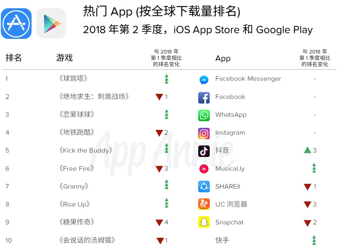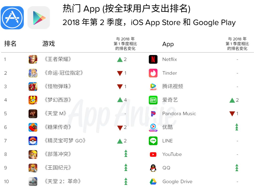 2018 年第 2 季度热门 App 和游戏 (按下载量和用户支出排名)