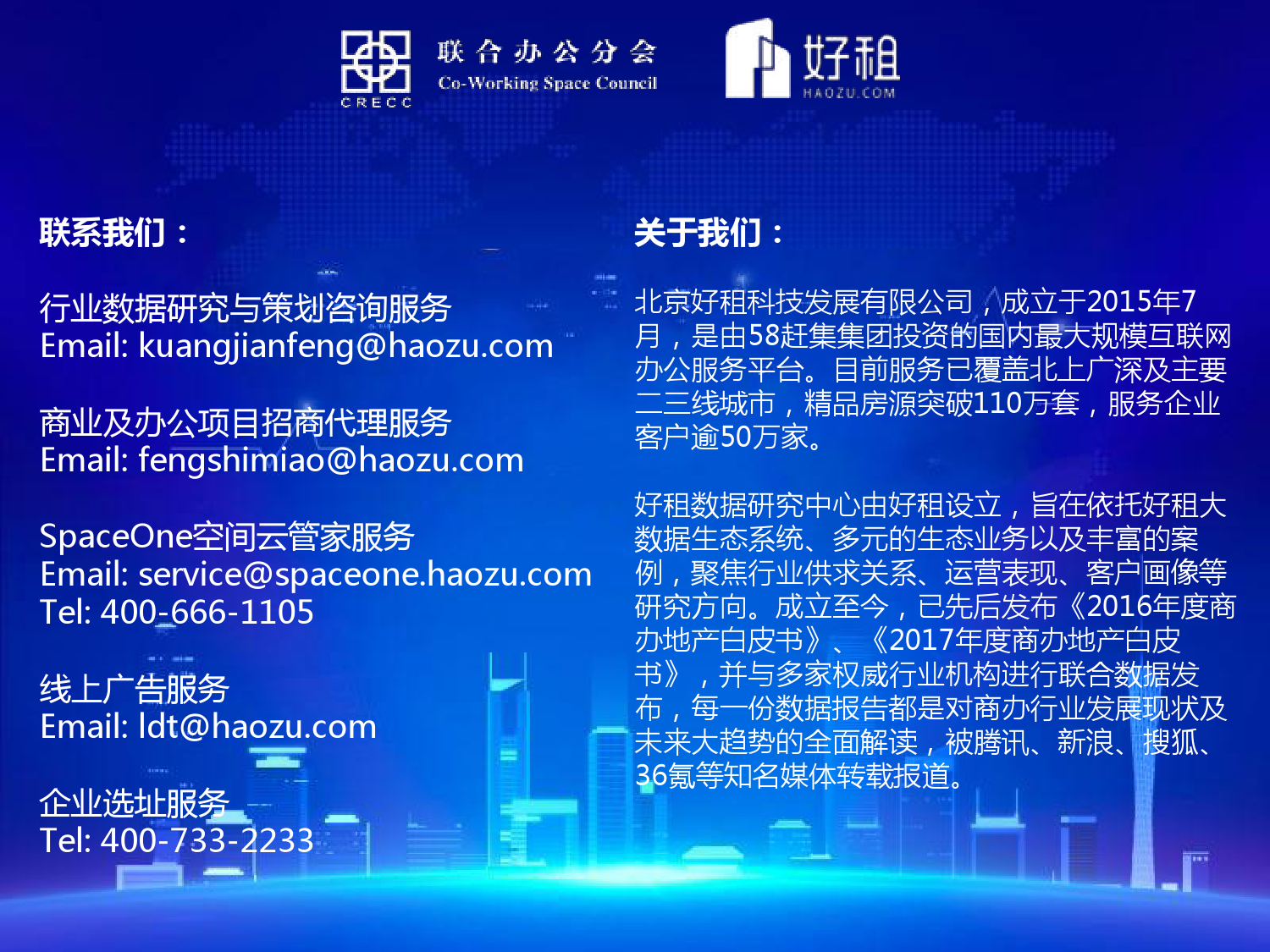 好租:2018年2季度商办市场报告 PDF版本将分享到199IT交流群,支持我们发展可加入! 更多阅读:好租:2018联合办公发展大数据报告好租:2017年Q3写字楼市场分析报告睿和智库|6月商办声音榜:疫情可控下,行业开始悄然复苏好租&铅笔道:硬核创业青年图鉴“商办∞|好租晓楼产品升级发布会”在京圆满举办TEFAF:2018全球艺术市场报告北京师范大学:2014中国劳动力市场报告Newzoo:2020全球游戏市场报告爱立信:2019年6月移动市场报告FreeWheel:2018年第4季度视频市场报告MobData: 2018年Q3中国智能手机市场报告MobData:2018年Q2智能手机市场报告Omdia:2025年Q3全球可穿戴腕带出货量5460万台,同比增长3%Counterpoint:2025年9-10月iPhone 17/小米17首月销量同比增超20%洛图科技:2025年Q3中国笔记本销量363万台,同比增长9.5%