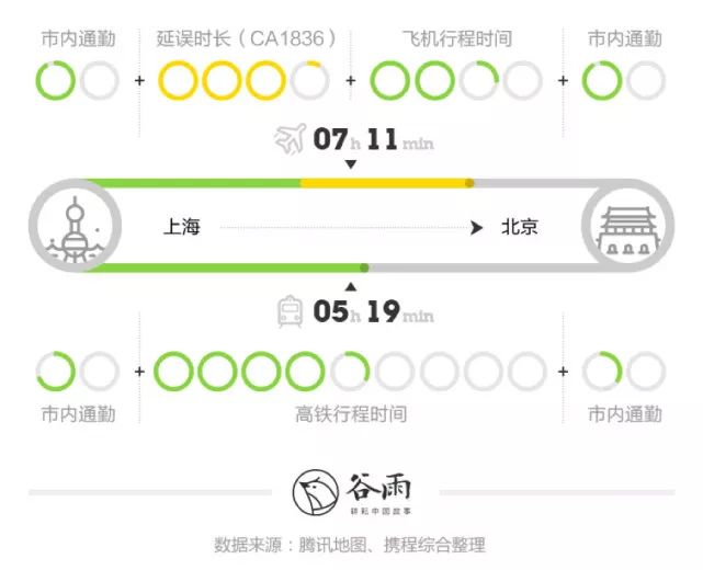 尤其是时速350公里的“复兴号”的开行使得该线路的高铁运输时间降低到最低4小时18分钟,仅比飞机的飞行时间长了2小时左右。再考虑到市内交通用时,高铁的优势就愈发明显了。