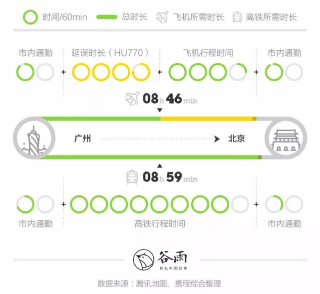 特殊情况下,例如珠三角的广州、深圳等地去往北京方向,多条航线的夏季平均延误时间可以达到近4个小时,高铁和飞机的行程用时差异已经不明显,综合舒适度等因素,高铁可能表现更为得优秀。