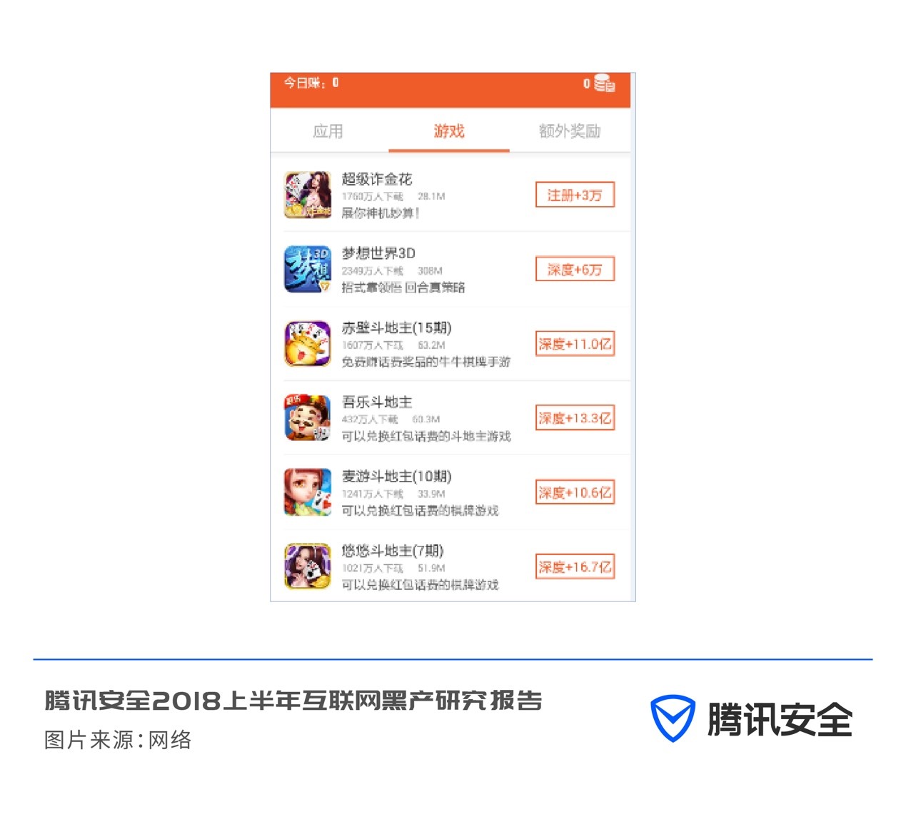 通过手机恶意软件后台下载推广应用,是手机黑产的重要变现途径。腾讯安全反诈骗实验室的研究数据表明,手机恶意推广的病毒变种每天新增超过2200个,每天受影响的网民超过1000万。