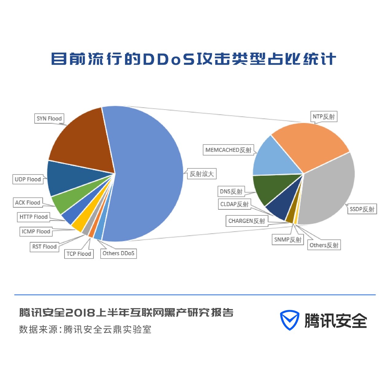 SYN Flood做为早期的攻击类型,占比近20%,主要原因是其攻击效果有良好的穿透力,无论是在攻击服务器,还是中间的基础网络设施上,都能在到良好的效果。