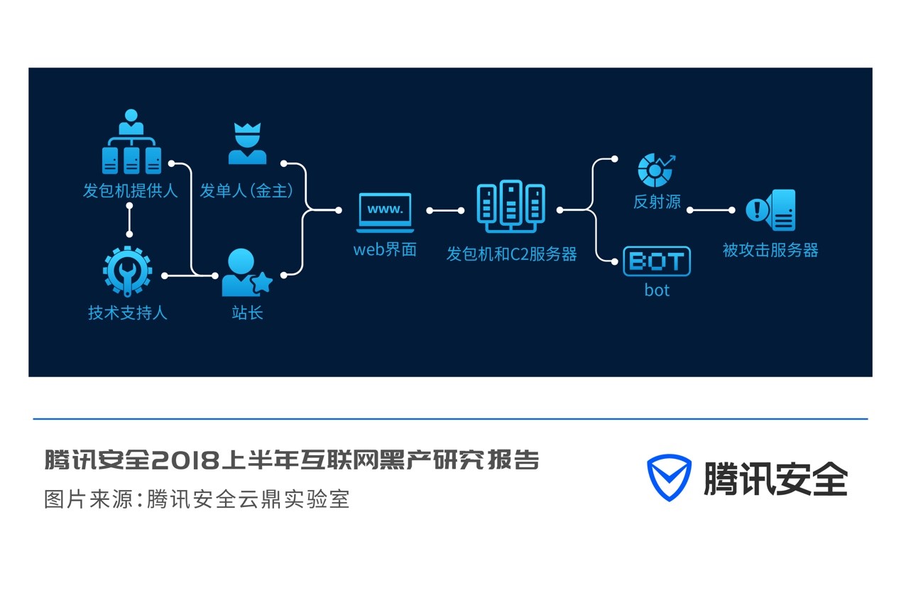 因为攻击手法的增多,DDoS攻击效果立竿见影,利用DDoS进行勒索、攻击竞争对手的情况越来越普及;催生了DDoS黑色产业链越来越细化,除发单人、担保商、黑客软件作者外,又增加了肉鸡商、接单人、资源提供者、接发单平台几个维度。