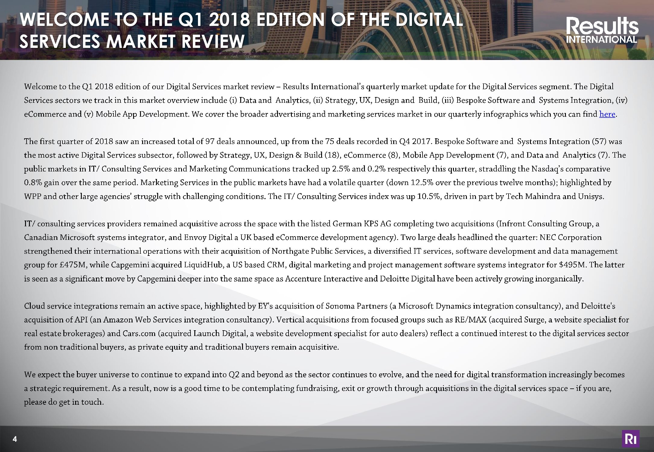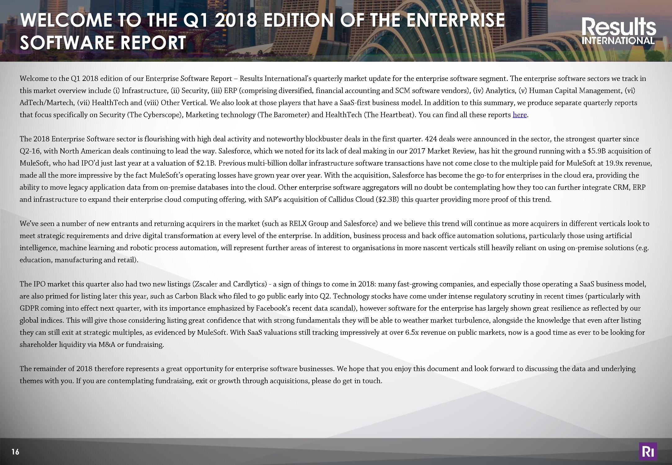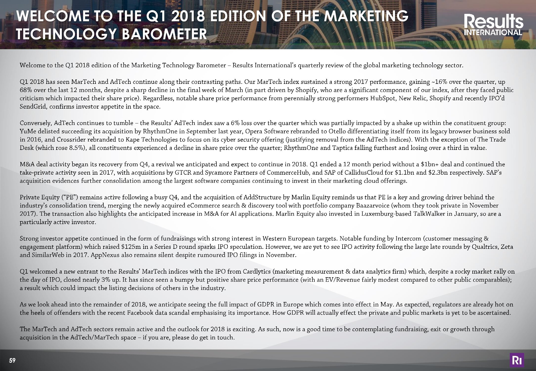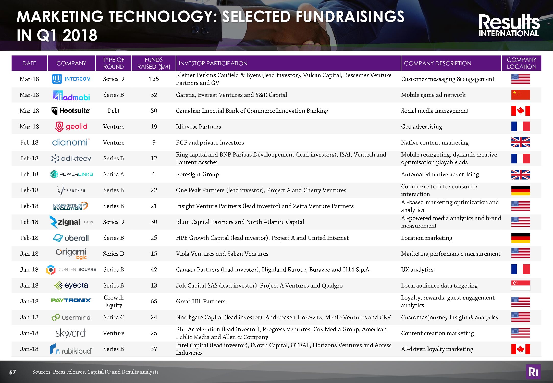 Results International发布了“科技报告——2018年第一季度市场概览”。