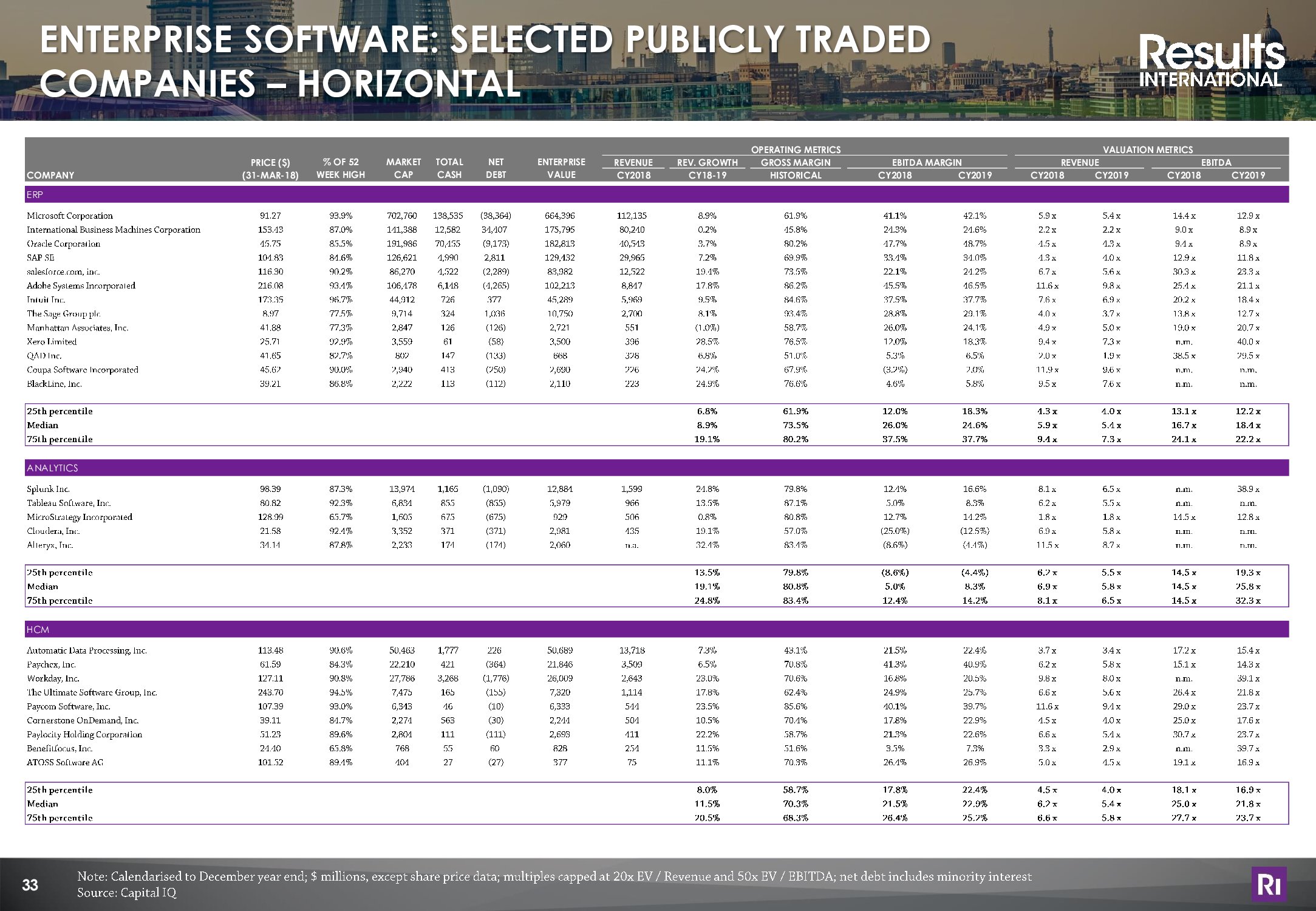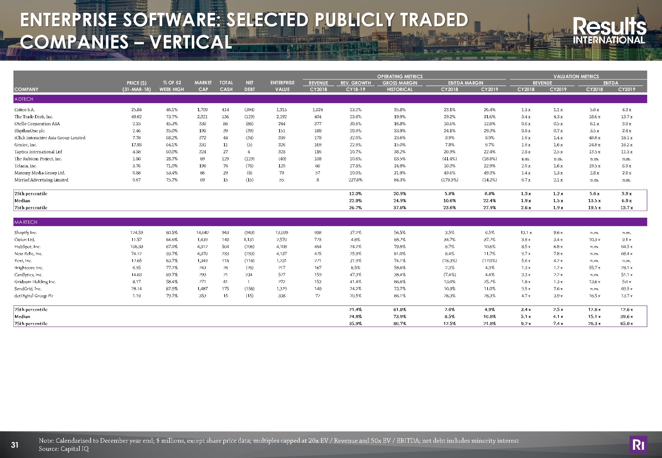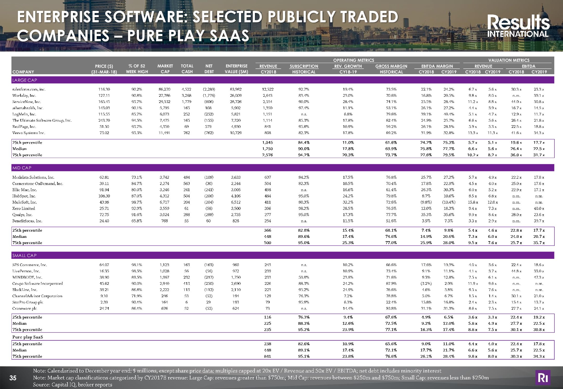 此外,Results International还在报告中发布了Pure play SaaS和上市公司的相关数据。