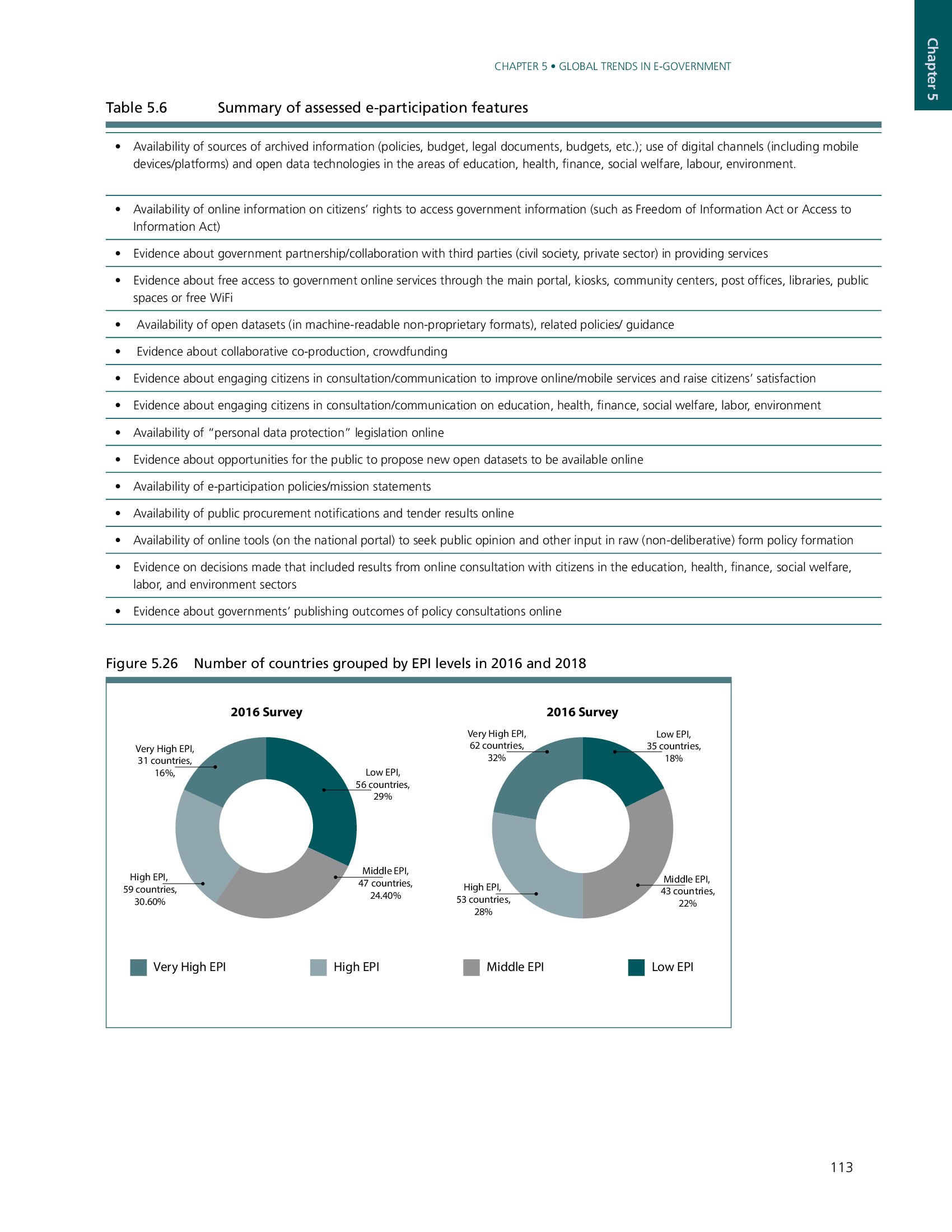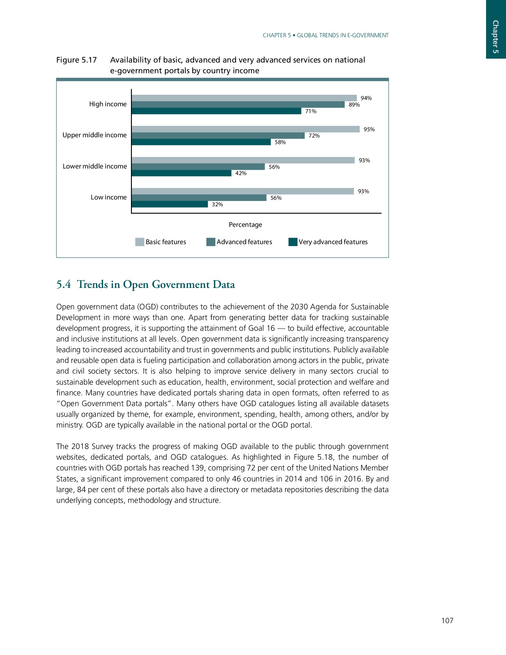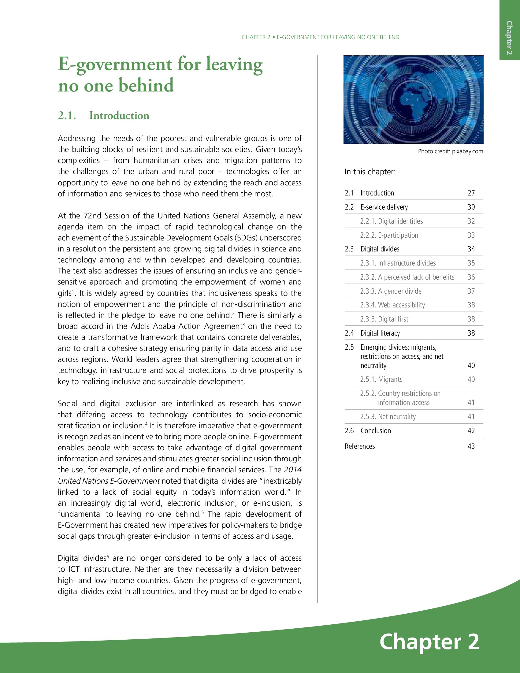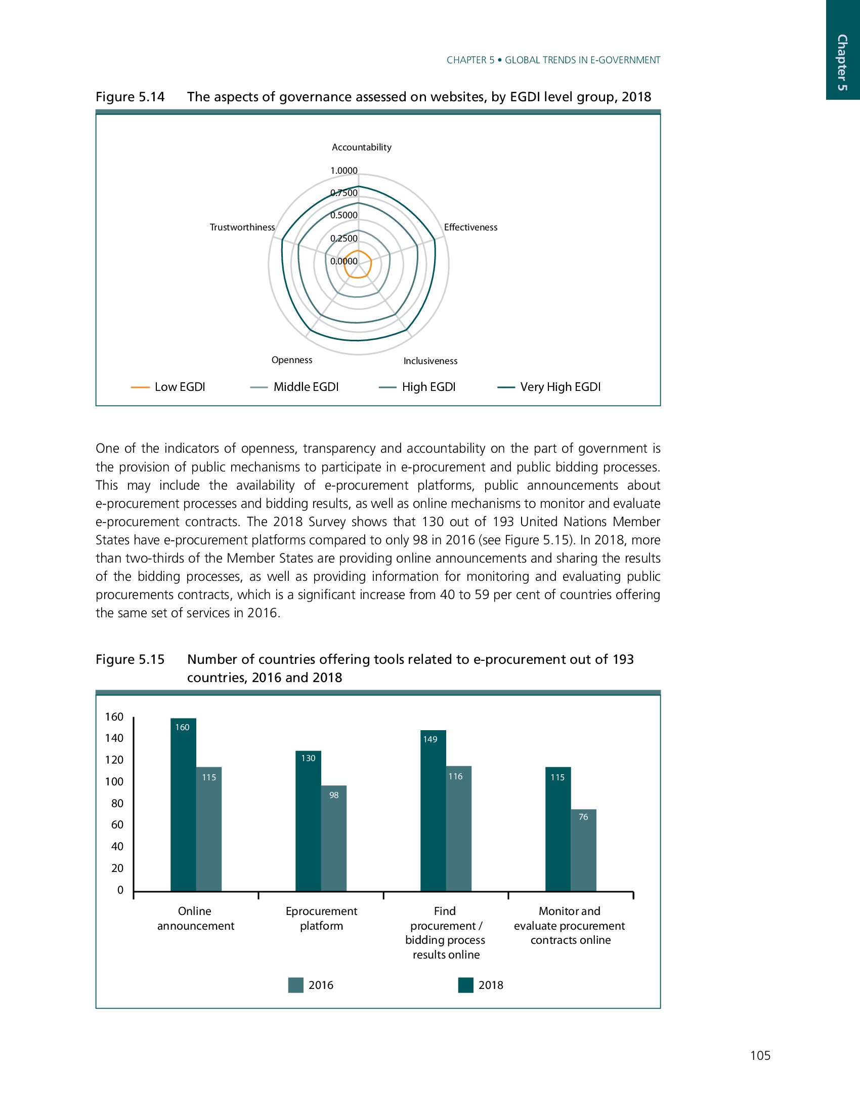 联合国所有193个会员国都拥有政府门户网站和后端系统,以实现核心管理任务的自动化,140个国家的政府网至少提供一项交易服务。最常用的服务是公用事业的支付(140个国家),提交所得税(139),以及注册新业务(126)。