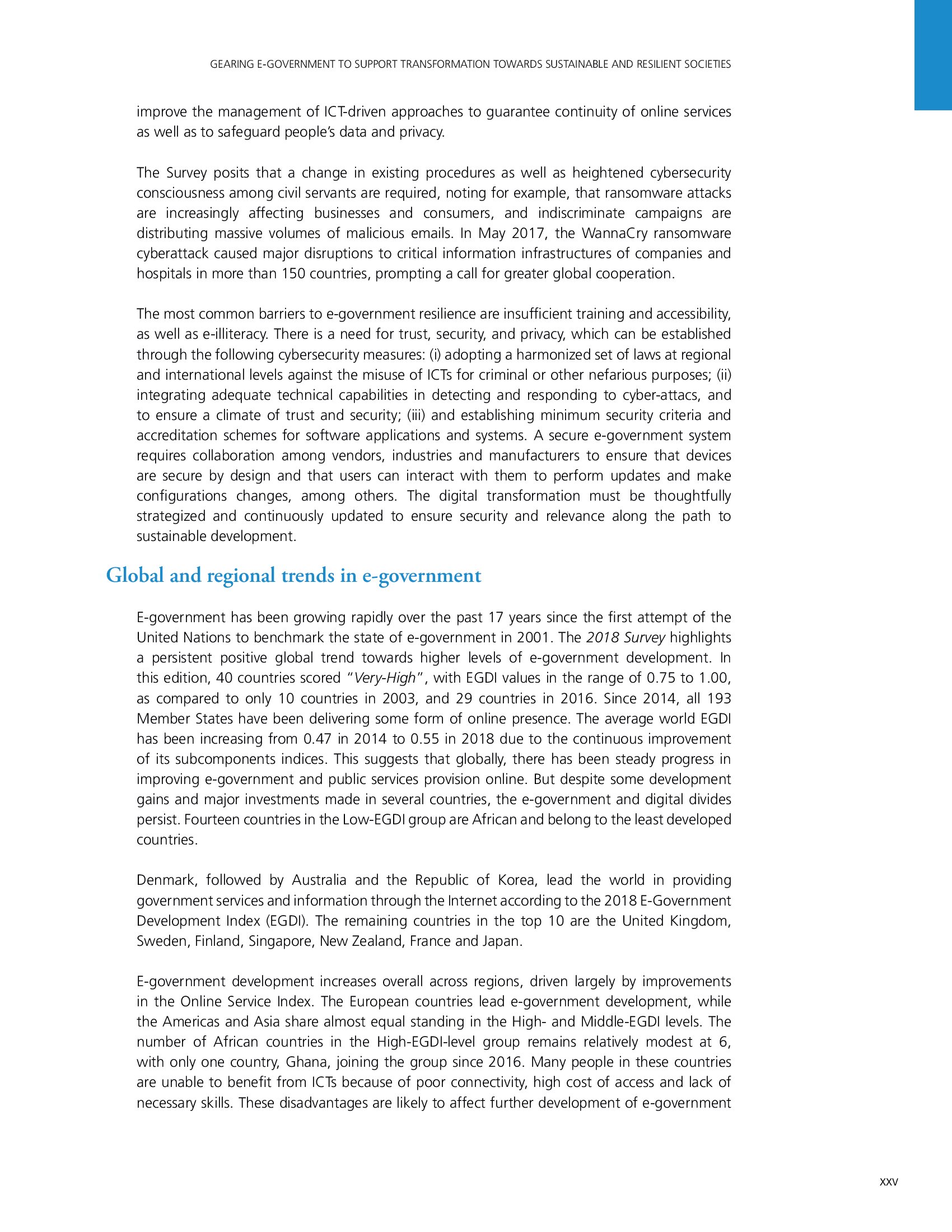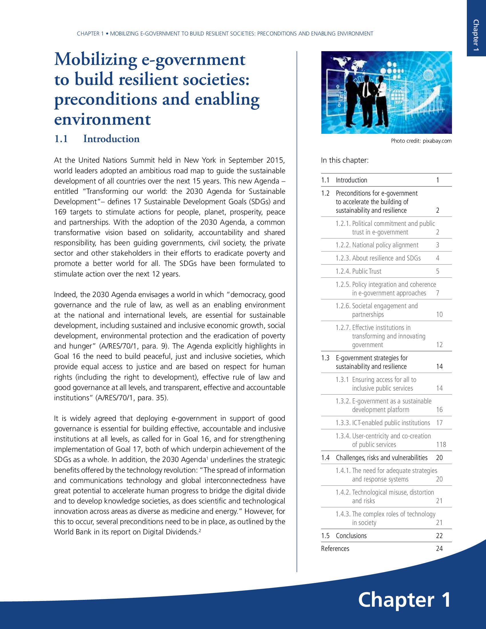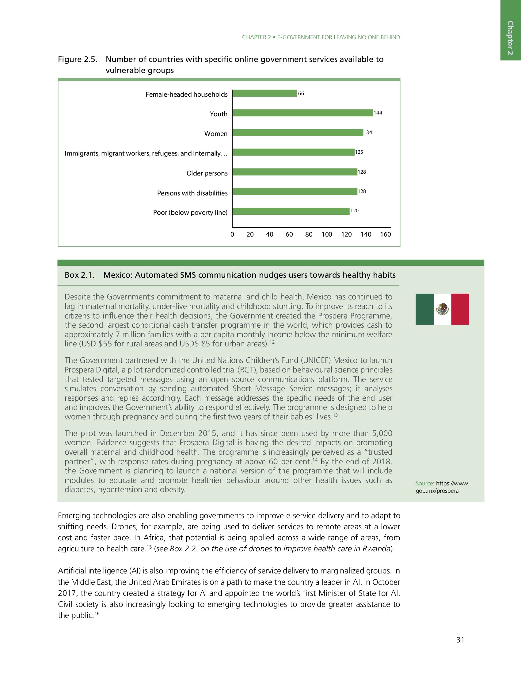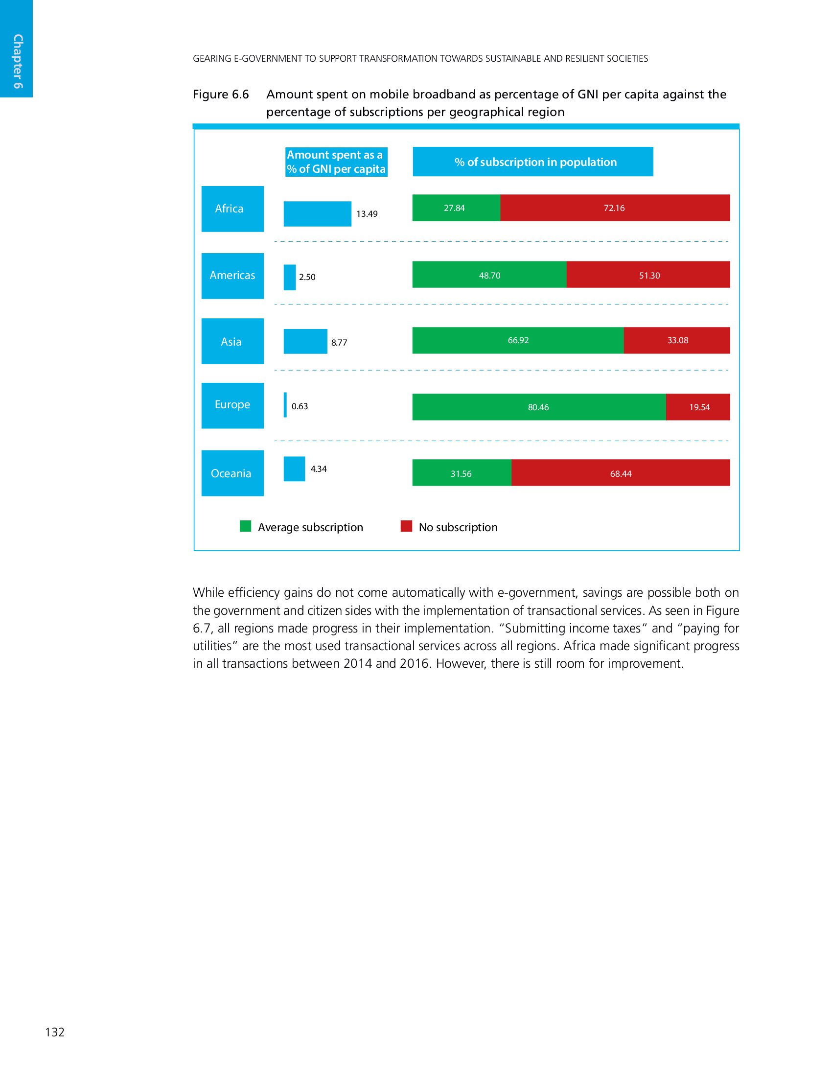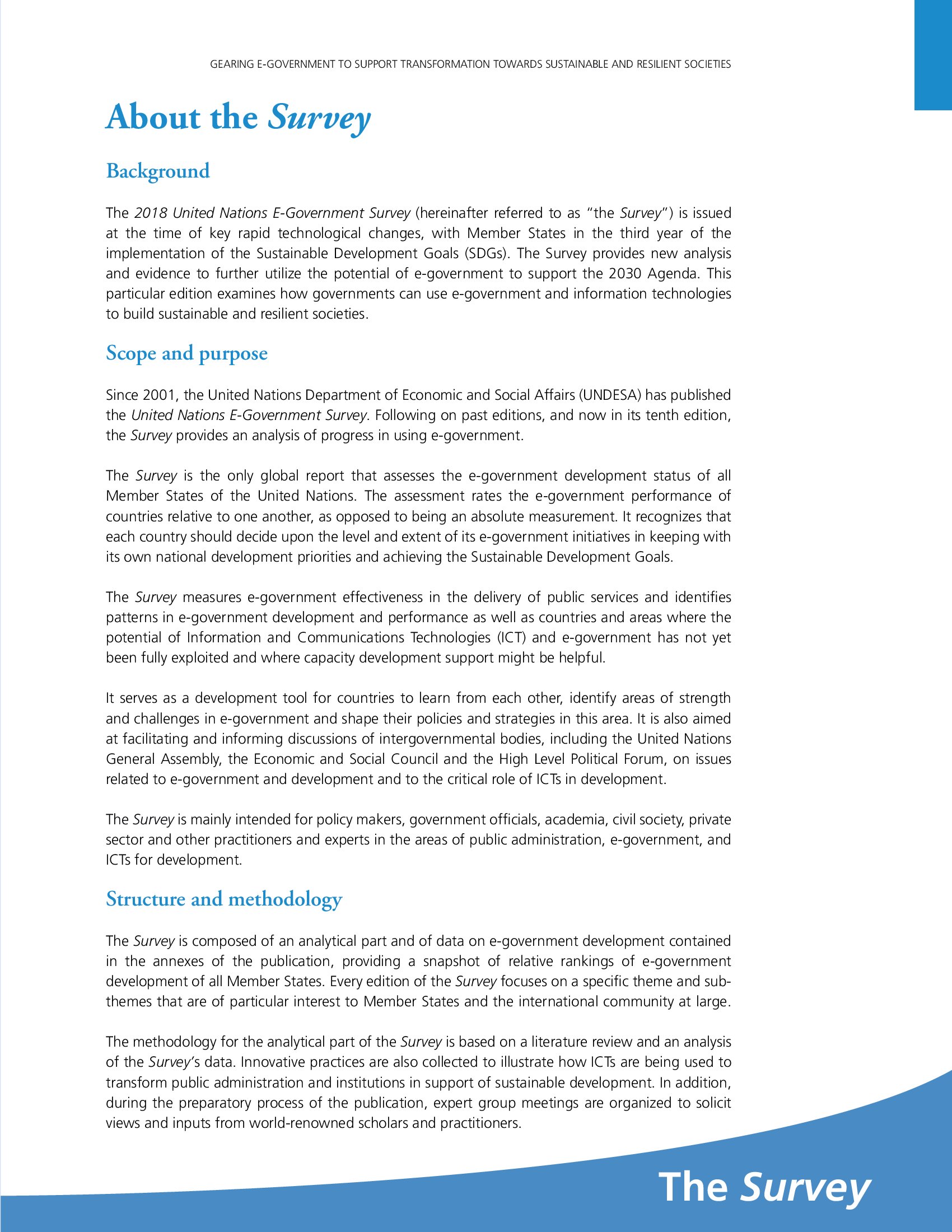 联合国所有193个会员国都拥有政府门户网站和后端系统,以实现核心管理任务的自动化,140个国家的政府网至少提供一项交易服务。最常用的服务是公用事业的支付(140个国家),提交所得税(139),以及注册新业务(126)。