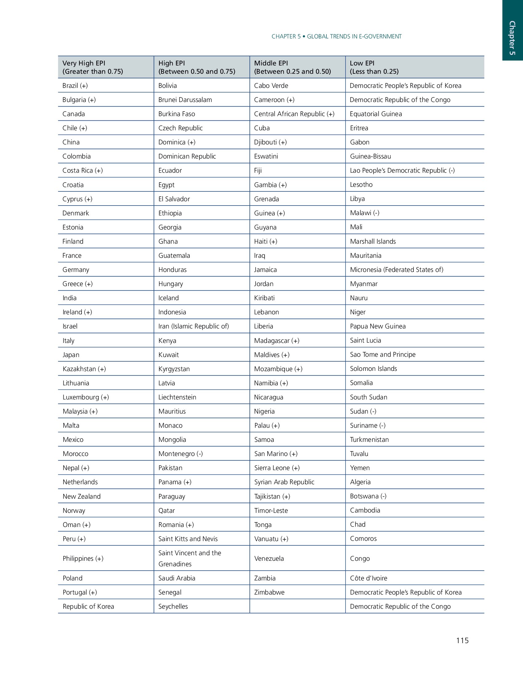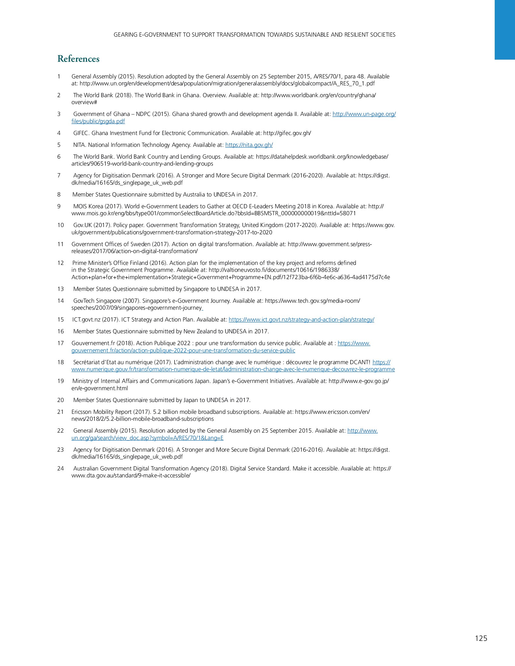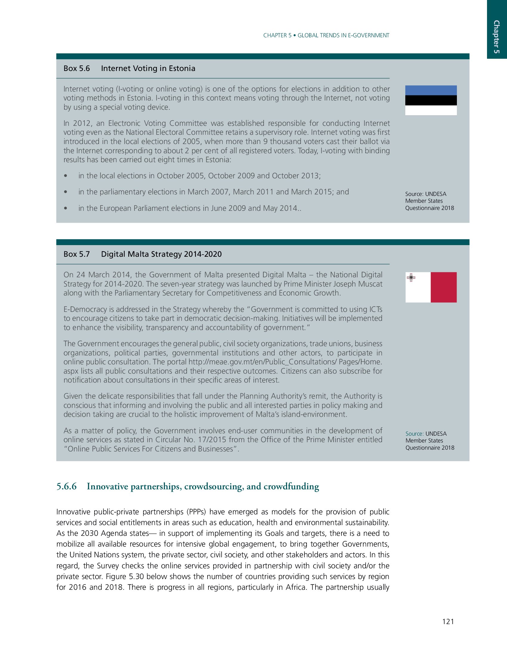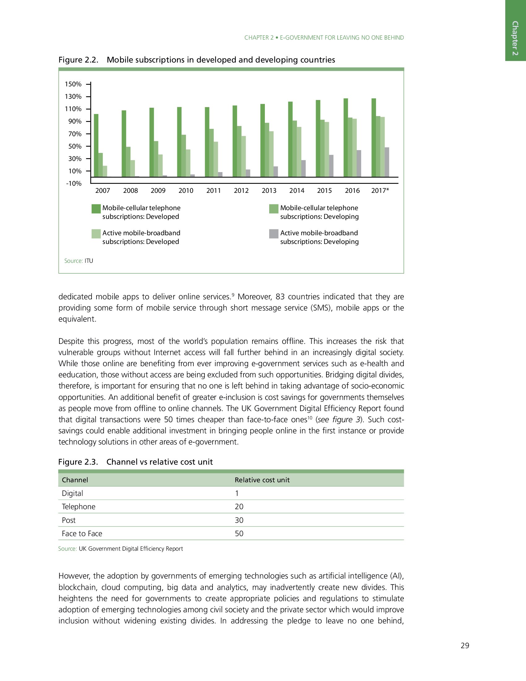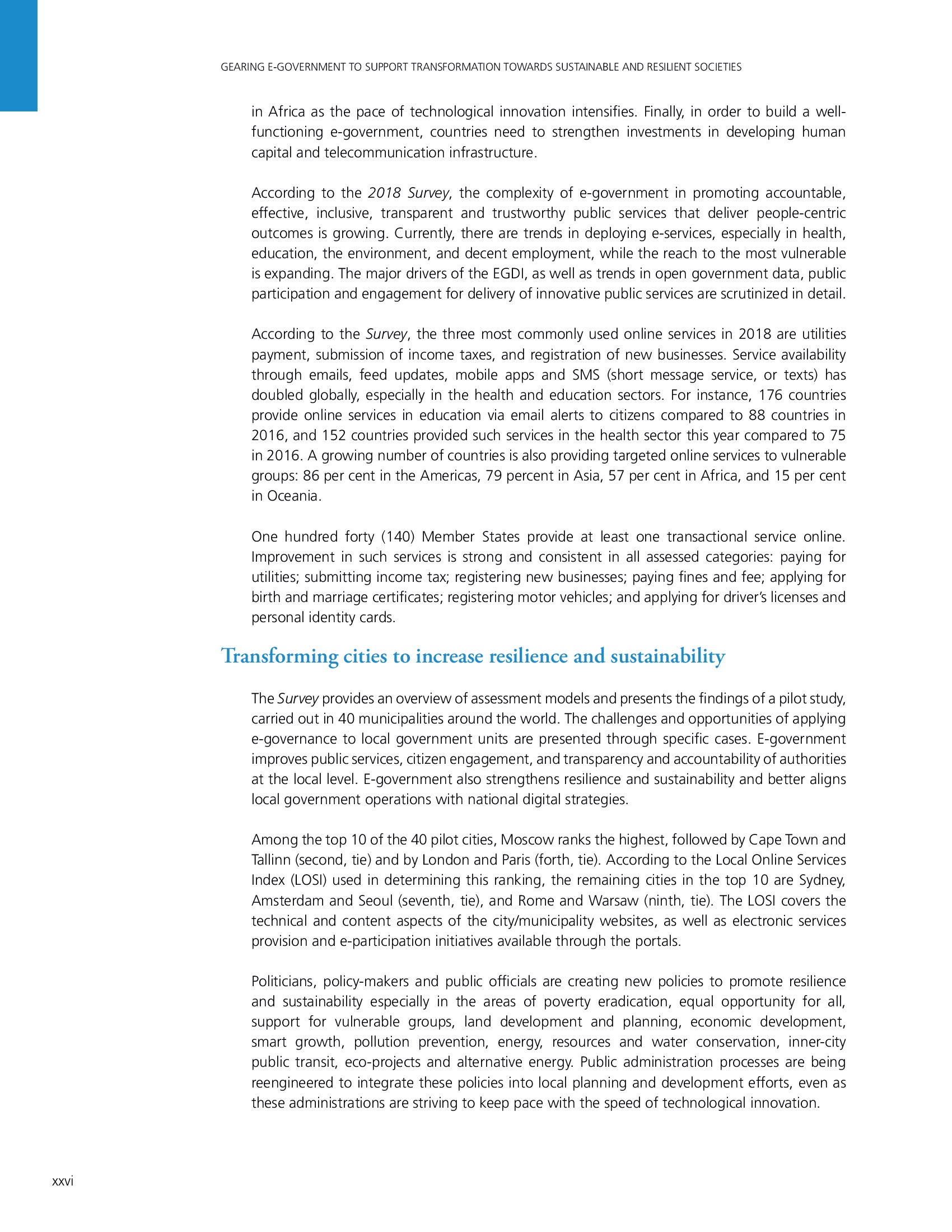 联合国所有193个会员国都拥有政府门户网站和后端系统,以实现核心管理任务的自动化,140个国家的政府网至少提供一项交易服务。最常用的服务是公用事业的支付(140个国家),提交所得税(139),以及注册新业务(126)。