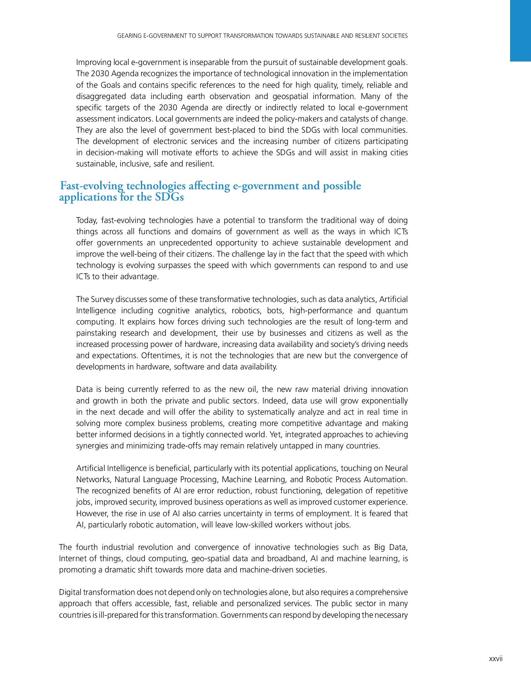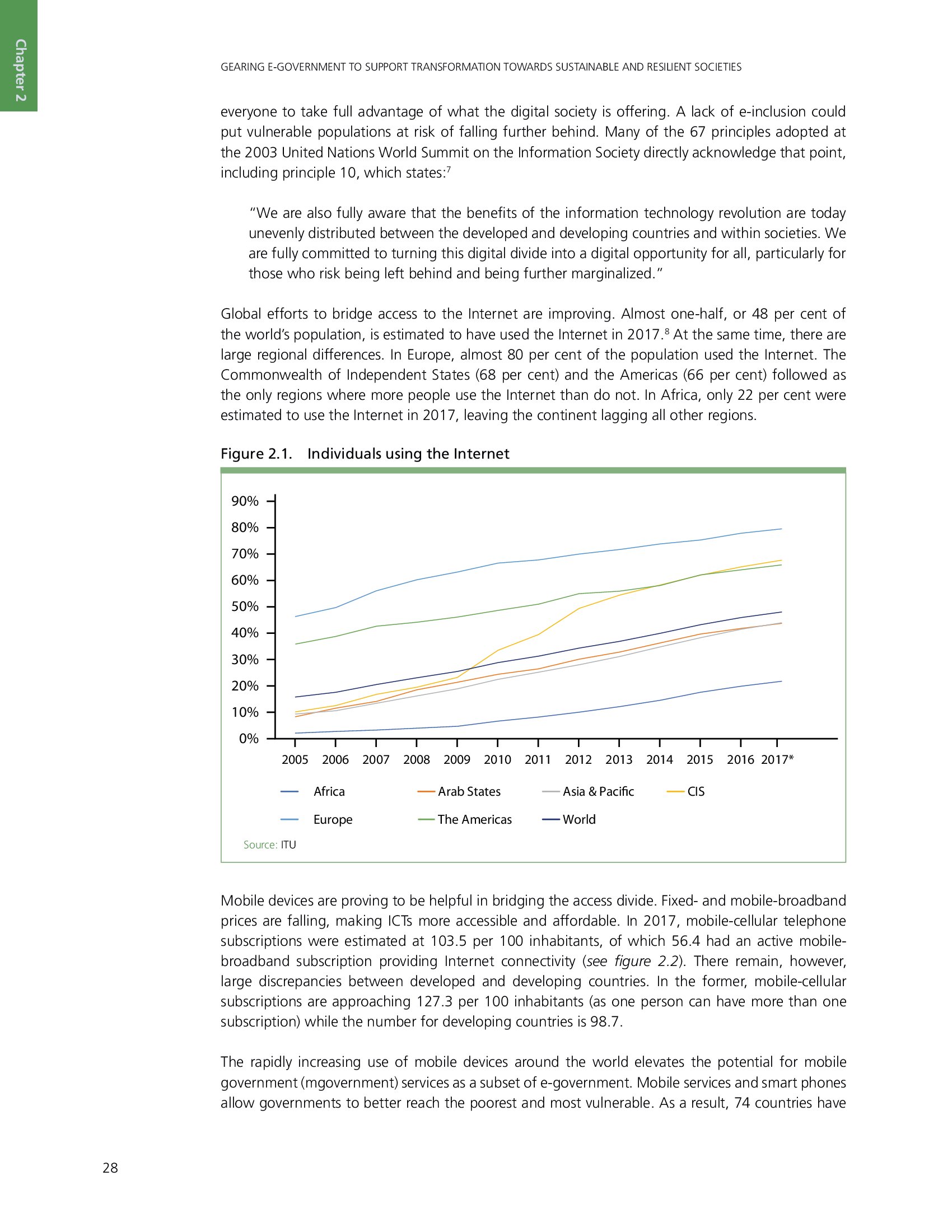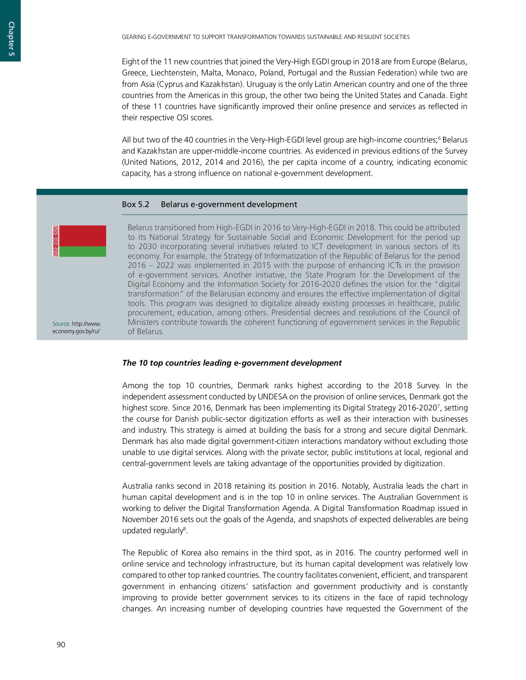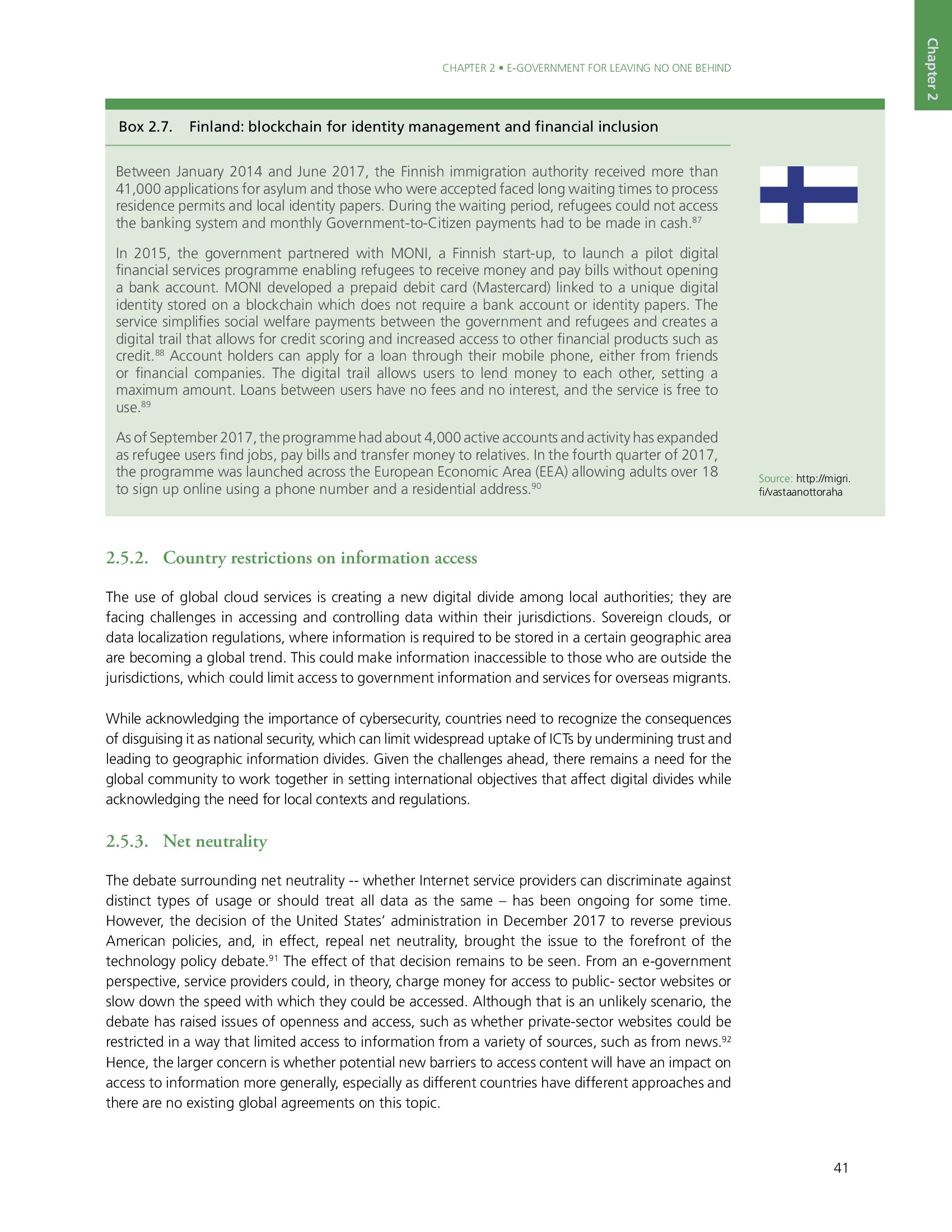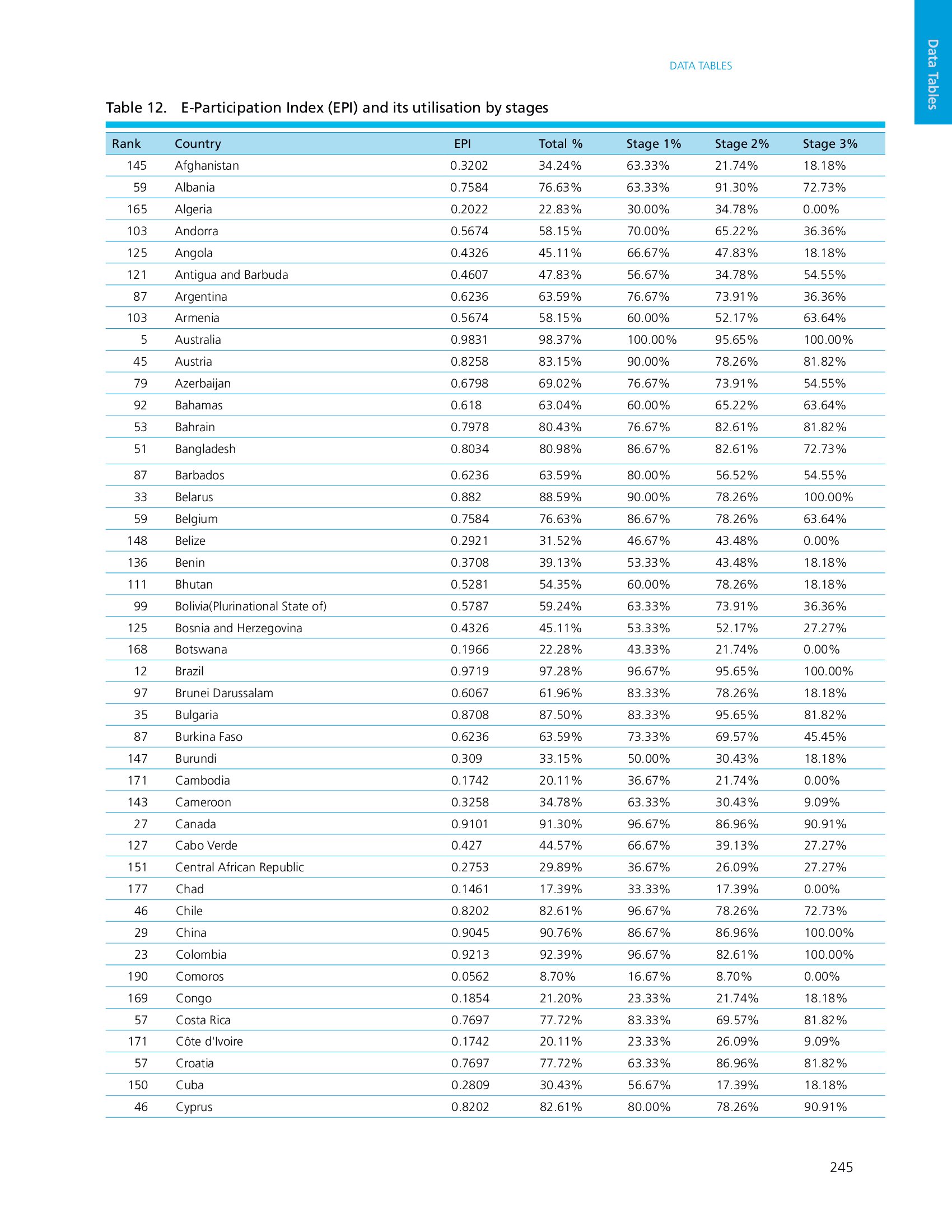 联合国所有193个会员国都拥有政府门户网站和后端系统,以实现核心管理任务的自动化,140个国家的政府网至少提供一项交易服务。最常用的服务是公用事业的支付(140个国家),提交所得税(139),以及注册新业务(126)。