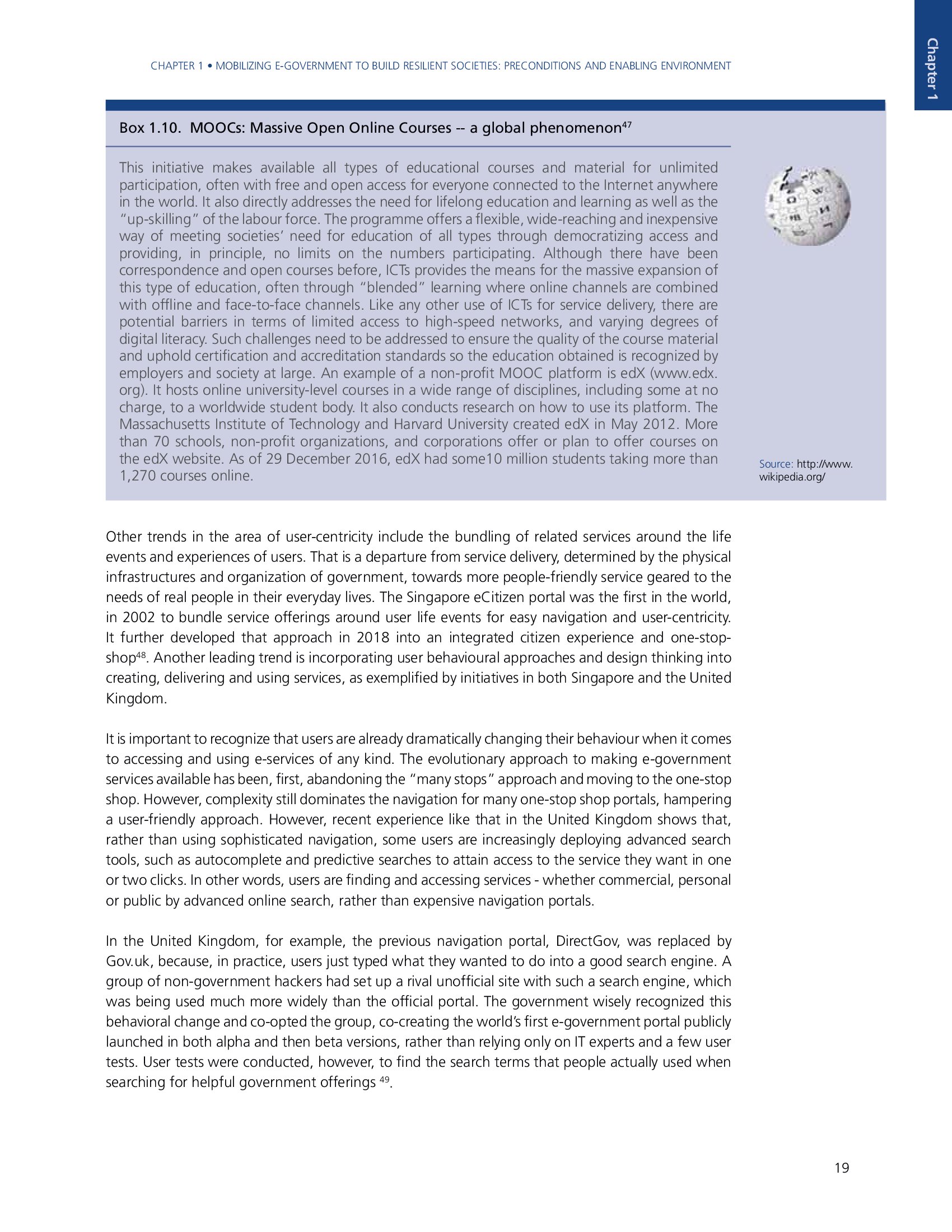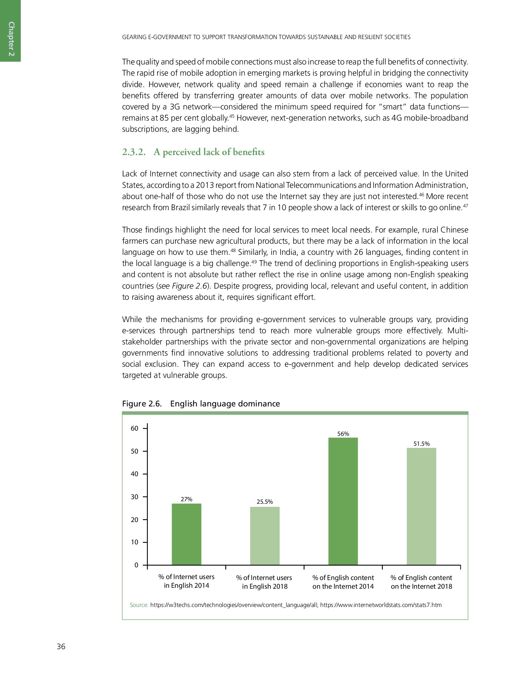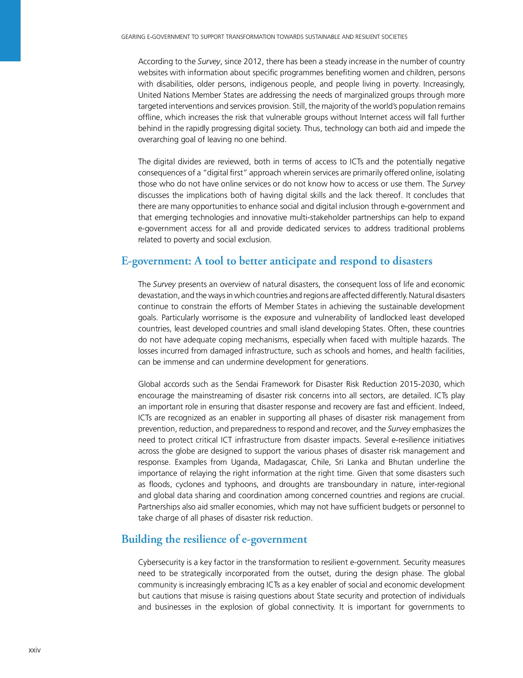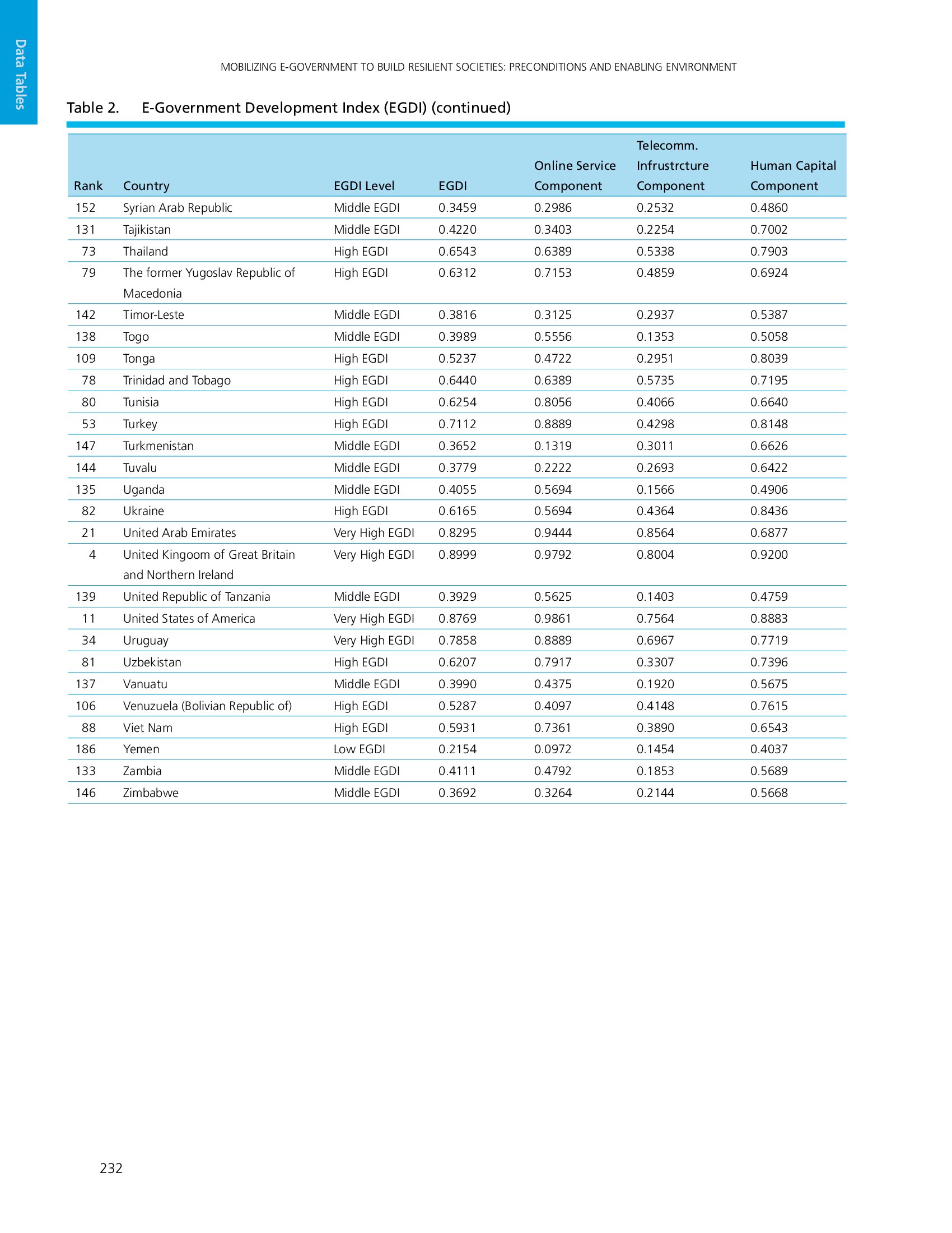 联合国所有193个会员国都拥有政府门户网站和后端系统,以实现核心管理任务的自动化,140个国家的政府网至少提供一项交易服务。最常用的服务是公用事业的支付(140个国家),提交所得税(139),以及注册新业务(126)。