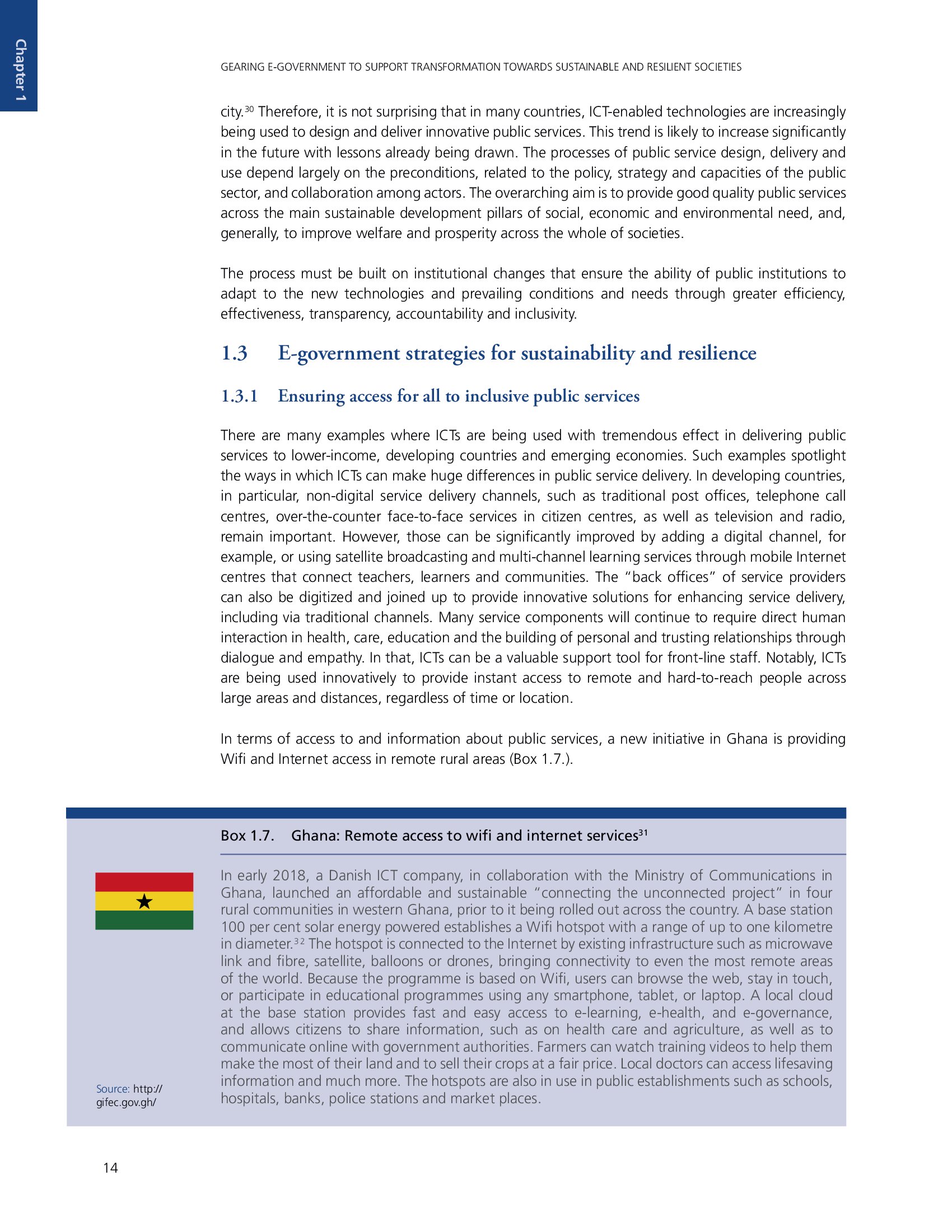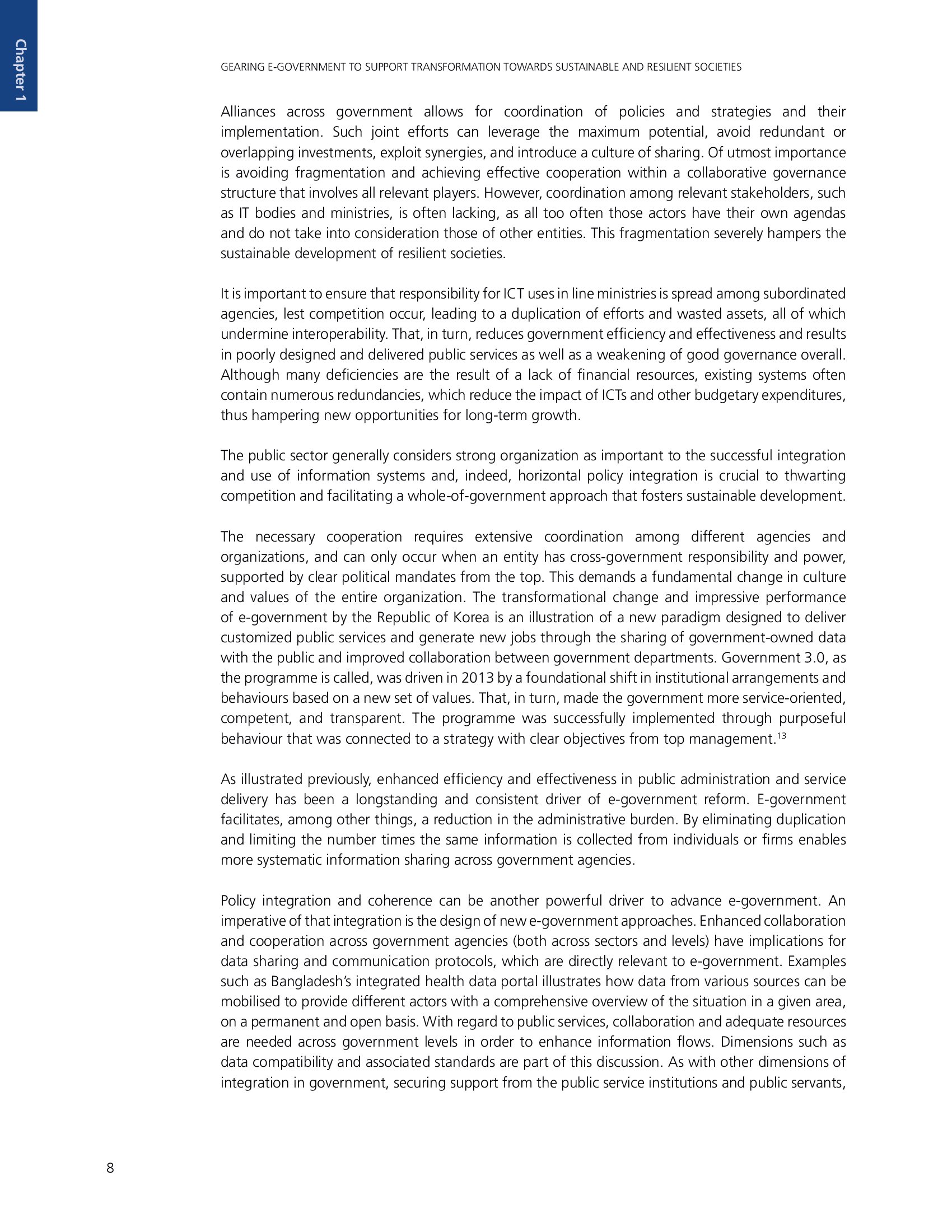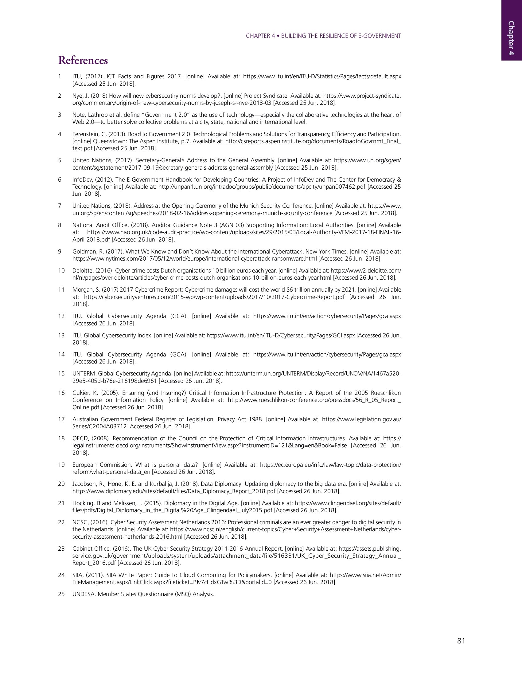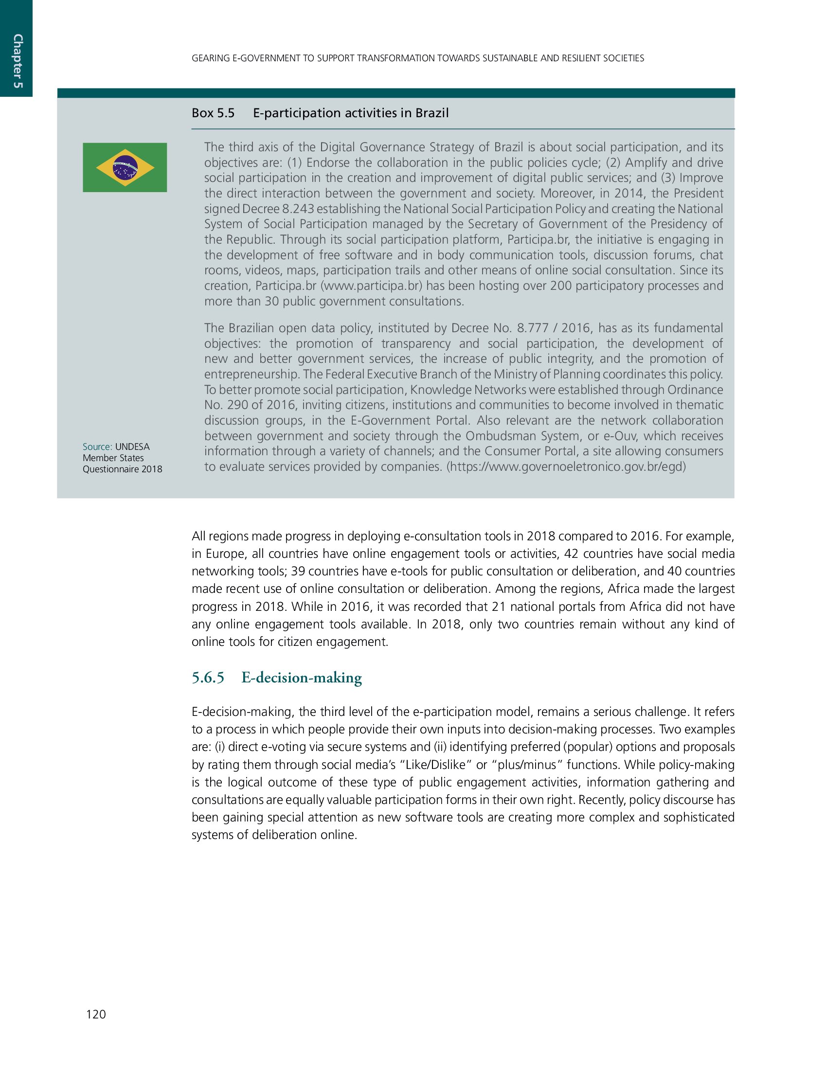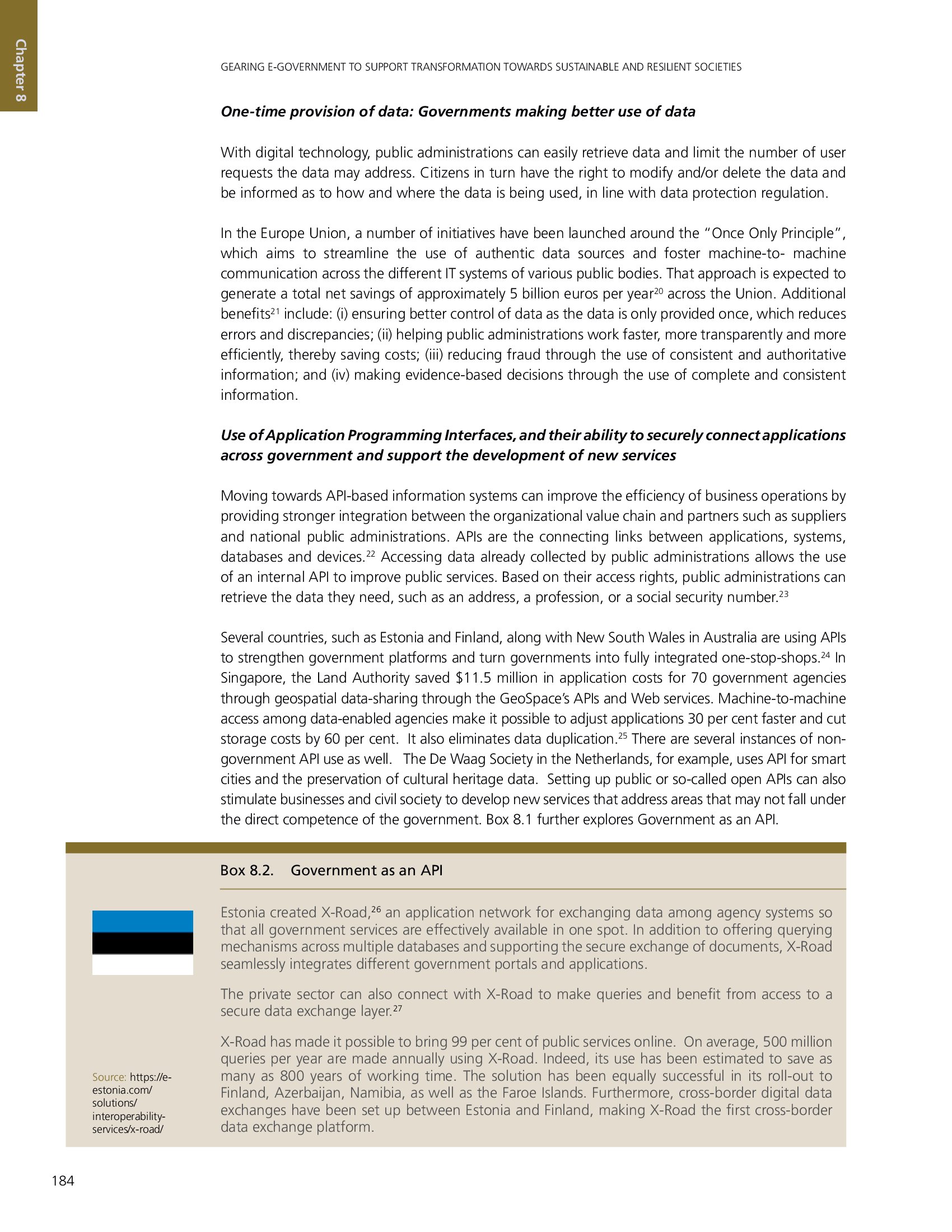 联合国所有193个会员国都拥有政府门户网站和后端系统,以实现核心管理任务的自动化,140个国家的政府网至少提供一项交易服务。最常用的服务是公用事业的支付(140个国家),提交所得税(139),以及注册新业务(126)。