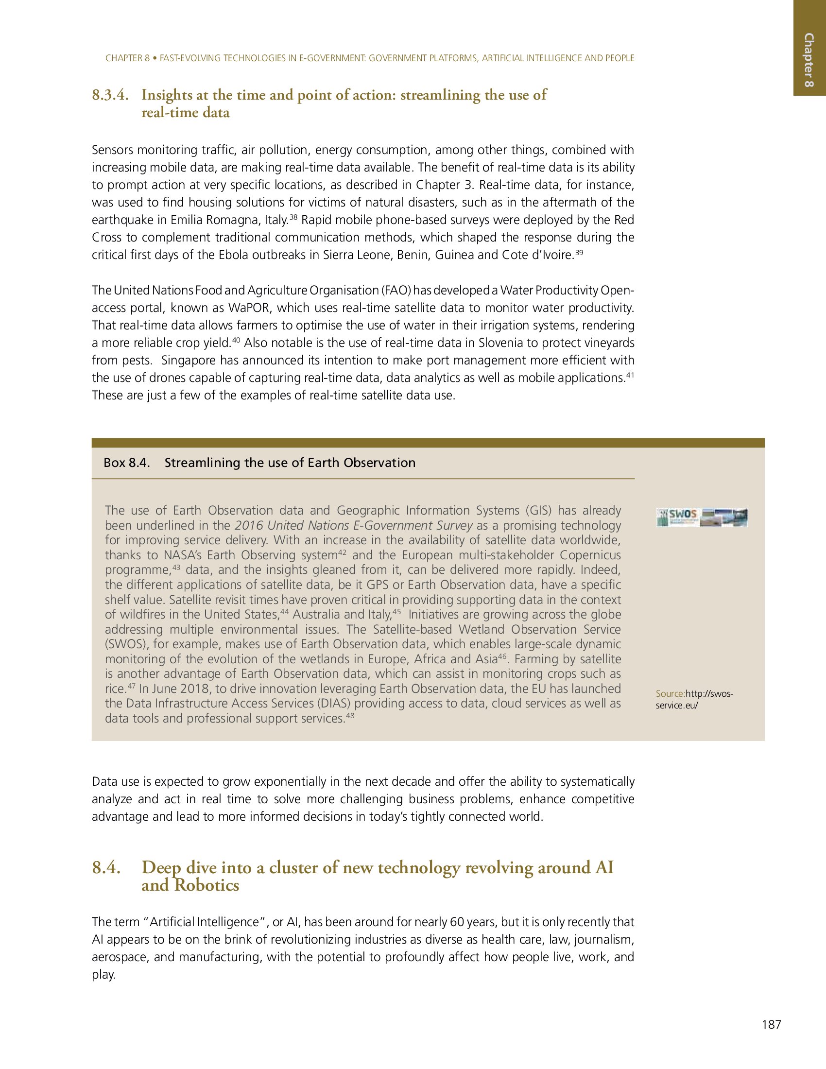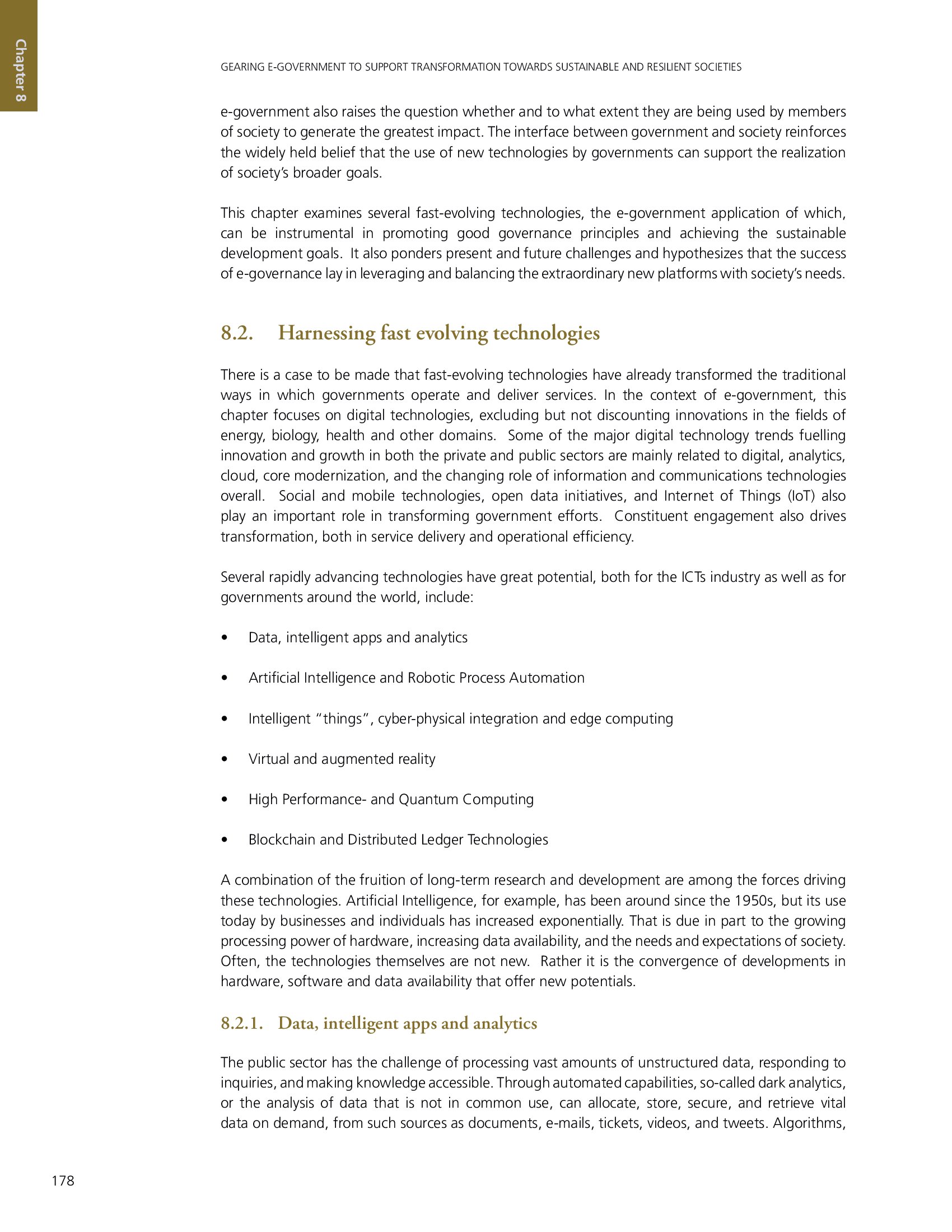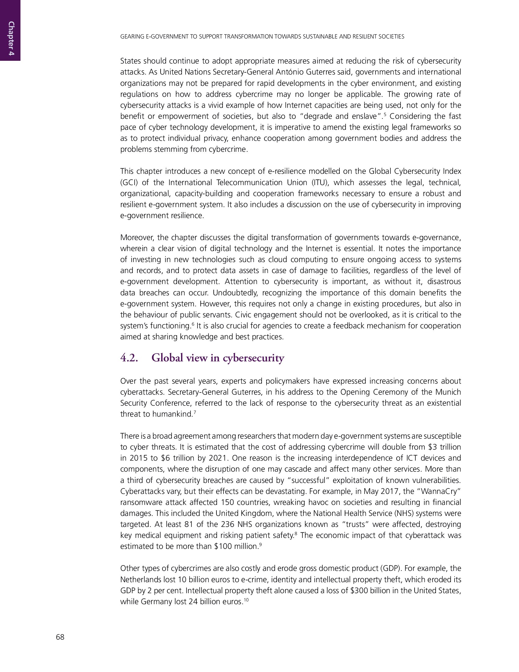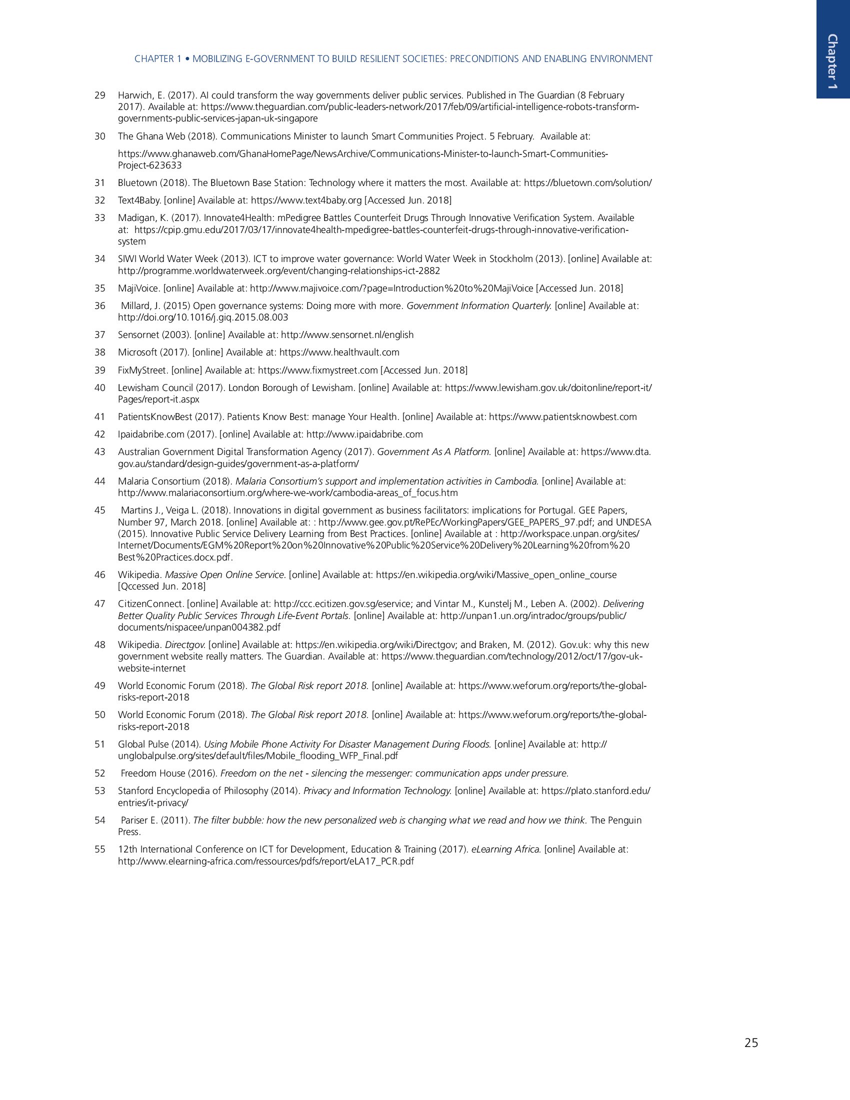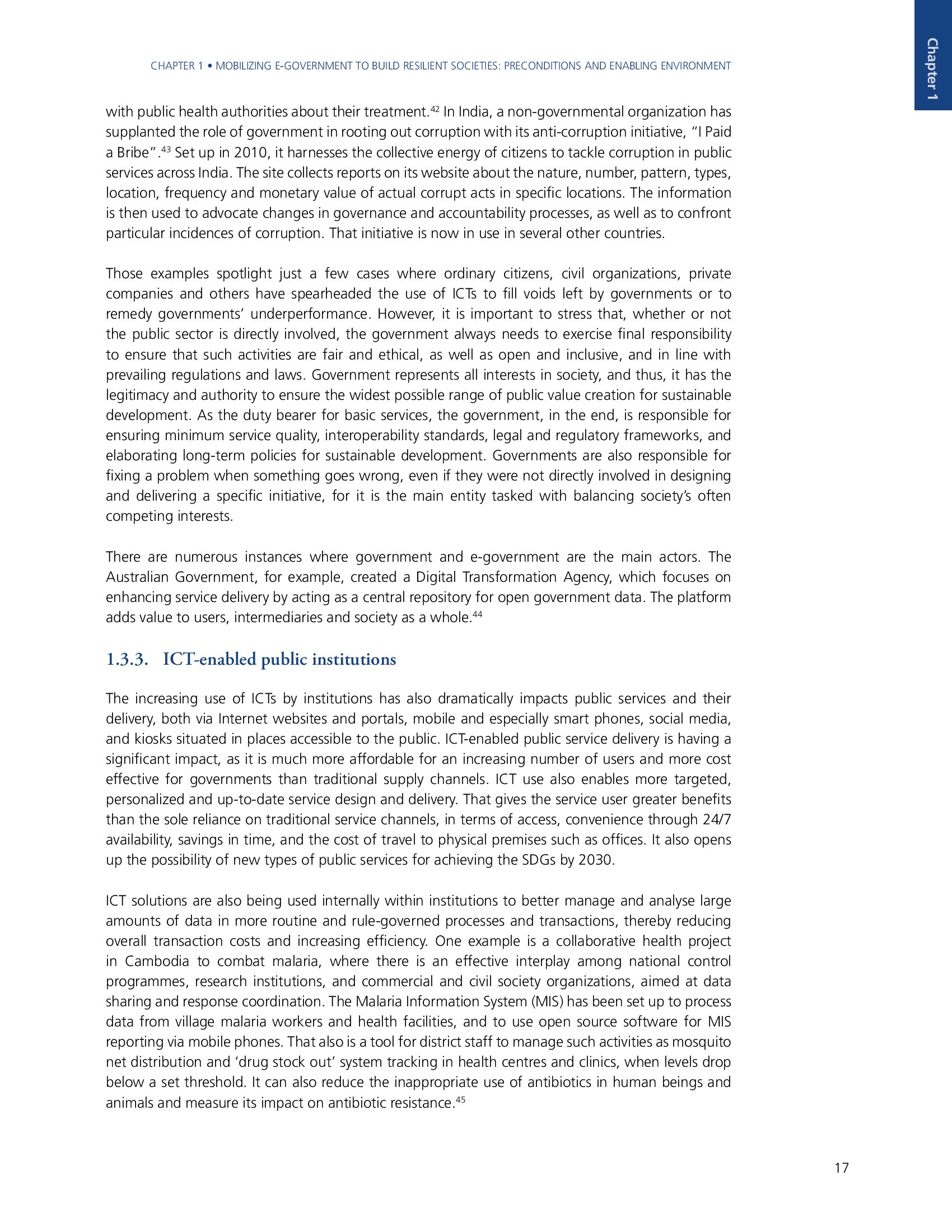 联合国所有193个会员国都拥有政府门户网站和后端系统,以实现核心管理任务的自动化,140个国家的政府网至少提供一项交易服务。最常用的服务是公用事业的支付(140个国家),提交所得税(139),以及注册新业务(126)。