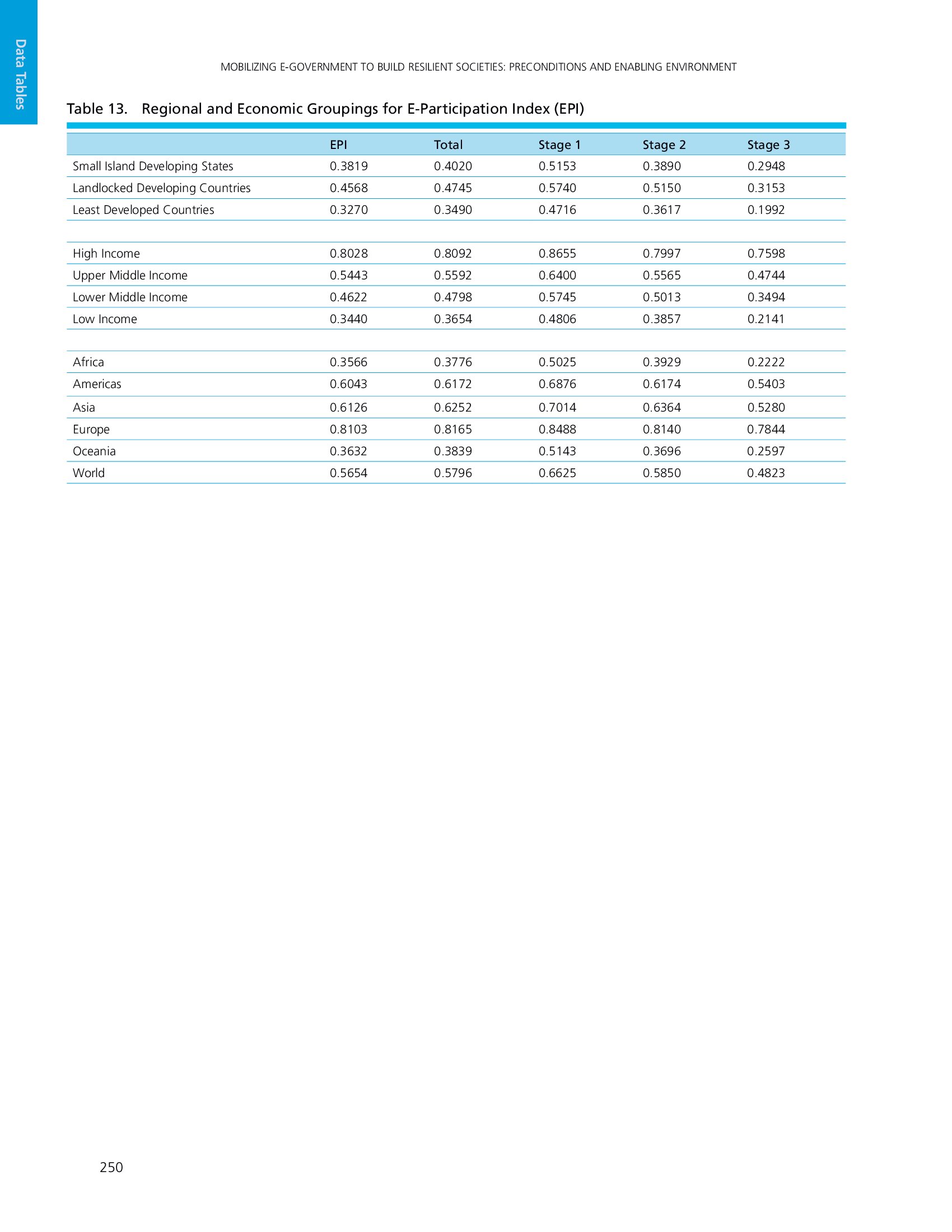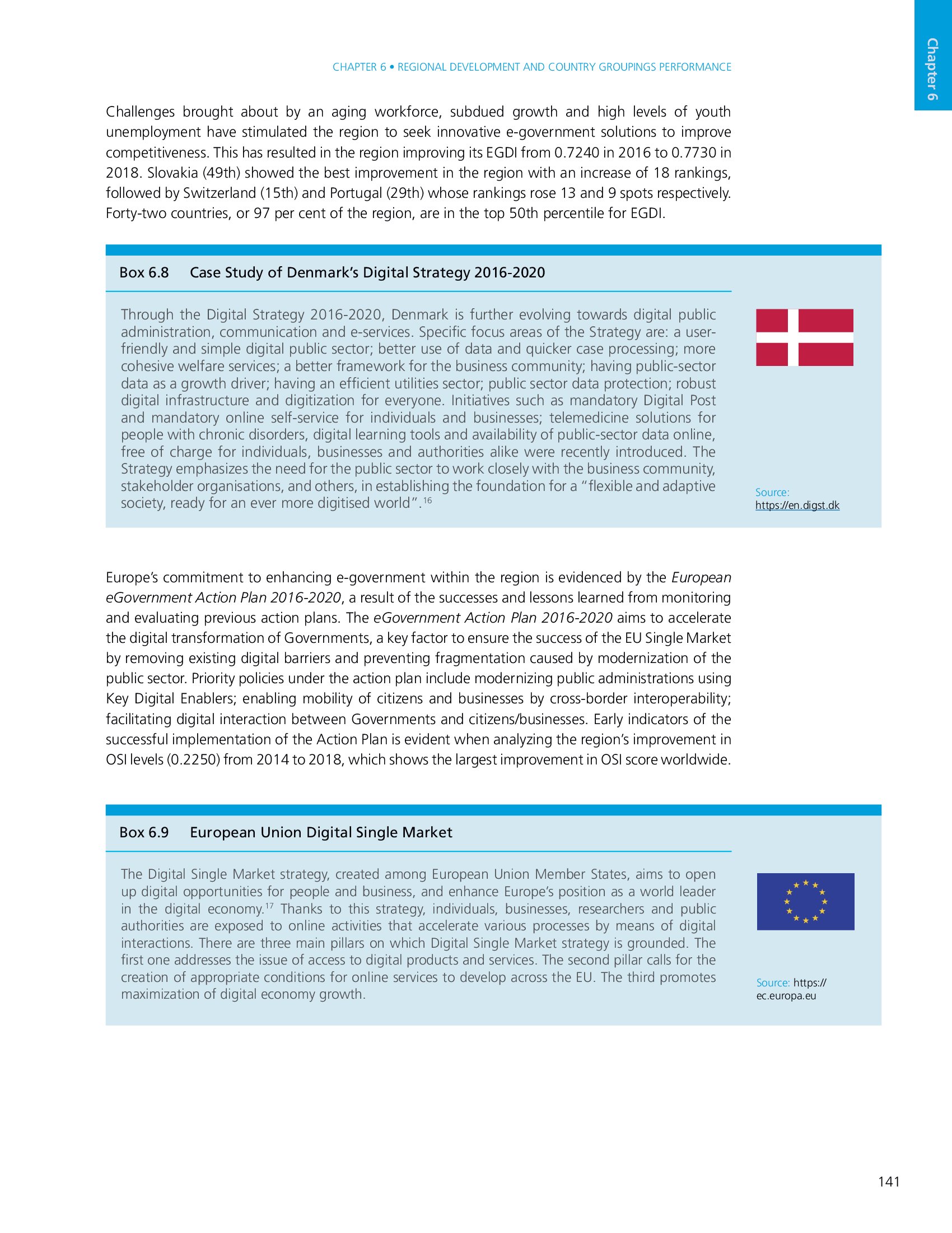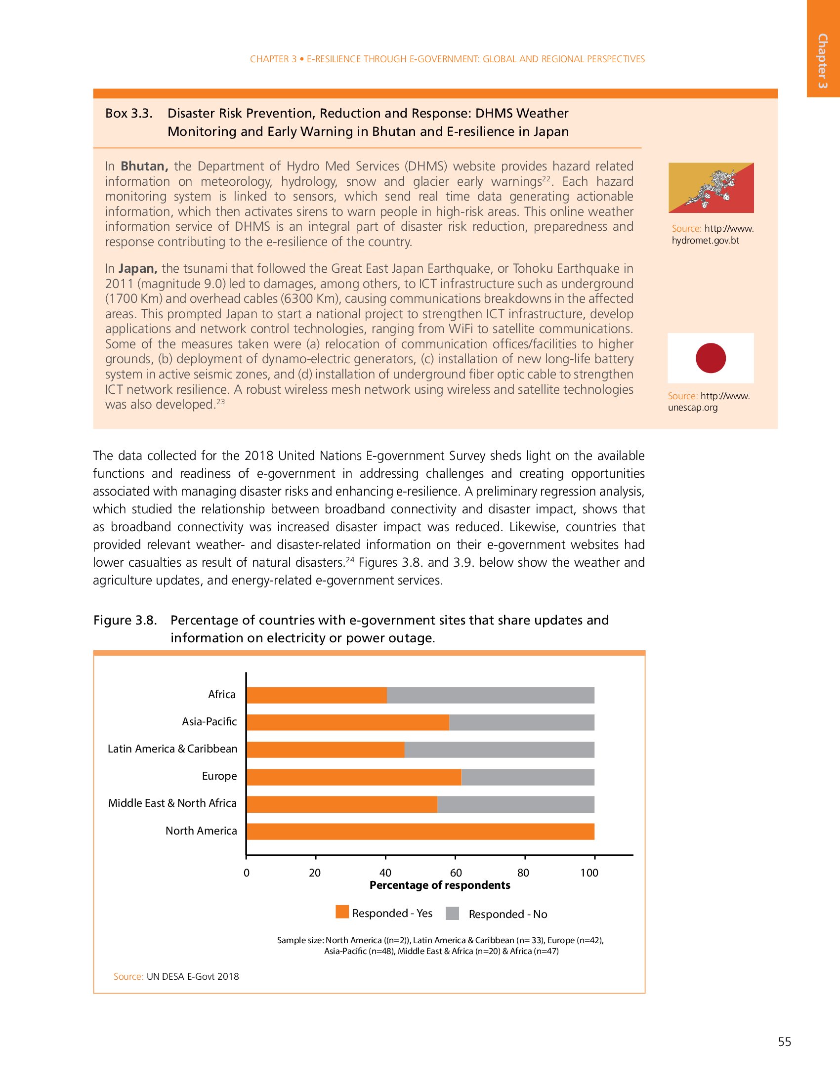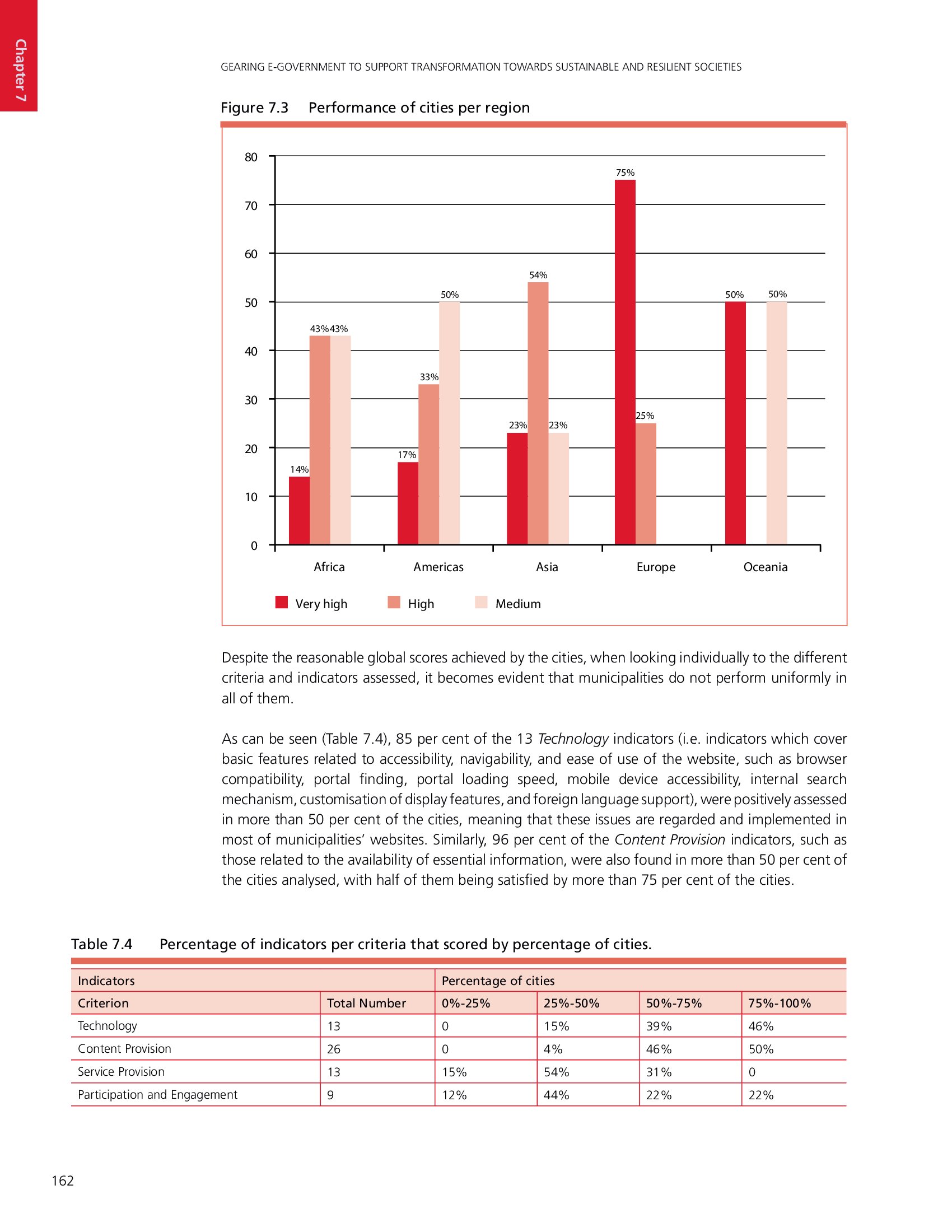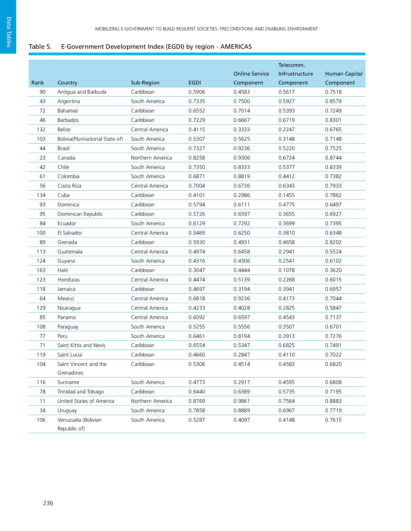 美洲和亚洲的政府发展缓慢。2/3的亚洲国家(47个中的31个)和美洲近一半的国家(35个中的15个)高于世界平均EGDI得分(0.55)。
